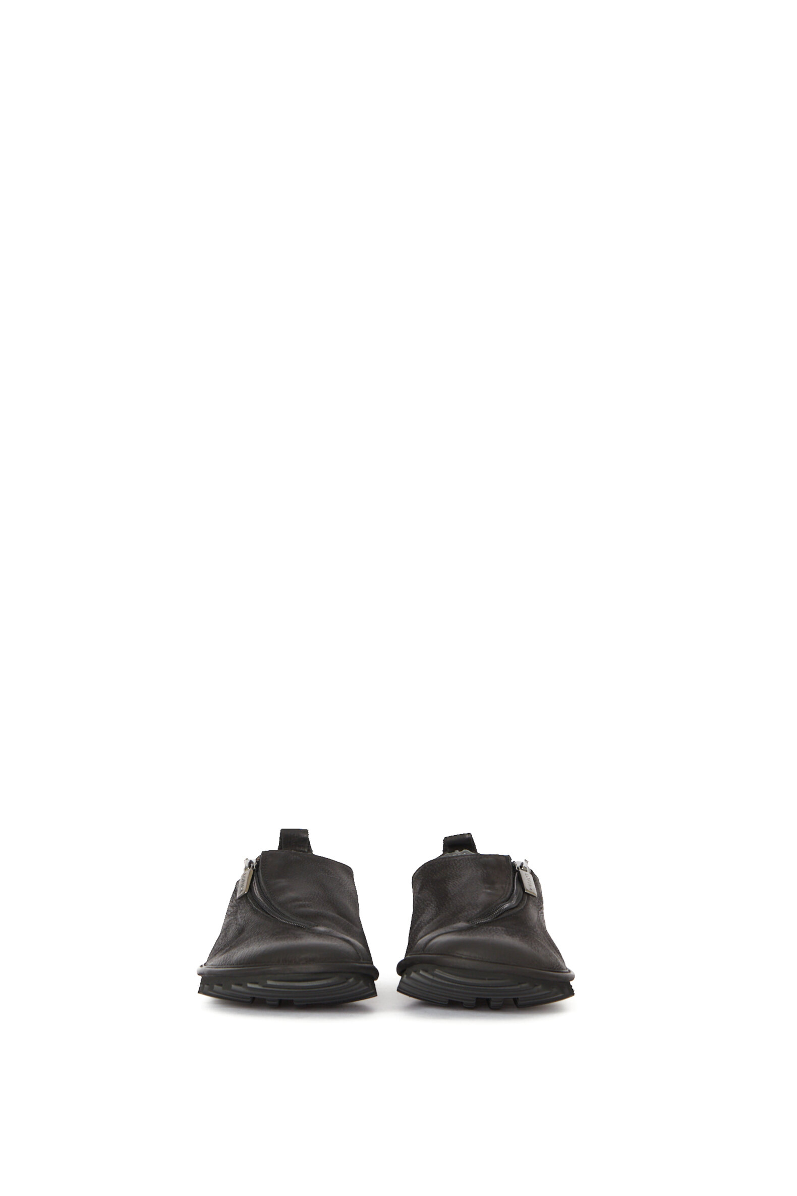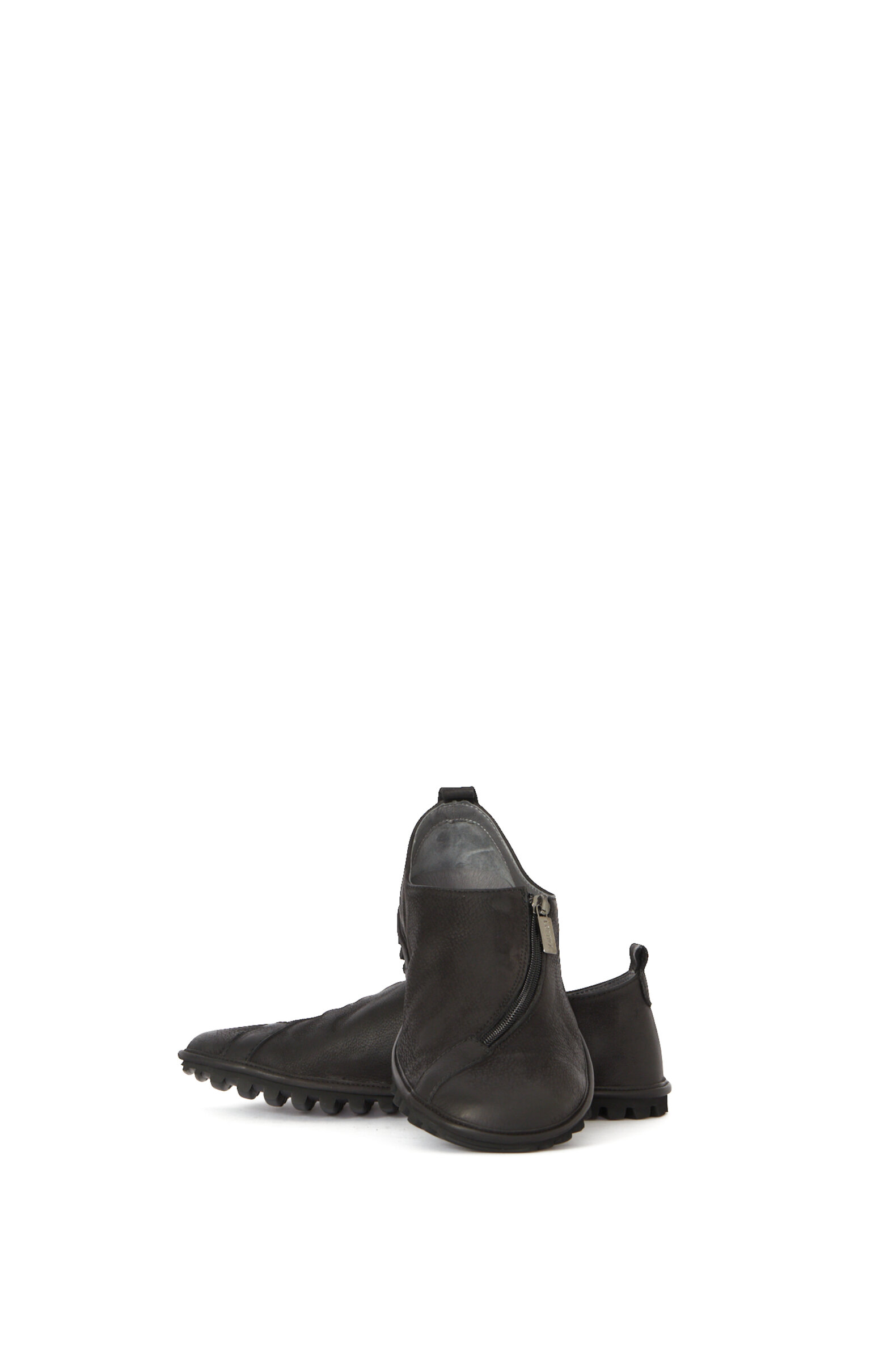 Håndlavet sko i blødt, naturligt kalveskind. Skoen er foret med svineskind for god åndbarhed og komfort. En elegant, tidløs sko, der let kan styles både afslappet og mere sofistikeret. Skoen er designet med en snoet lynlås henover vristen, både for at opnå et raffineret udtryk og samtidig gøre den nem at tage af og på. Den lette og fleksible sål med markante, men elegante riller sikrer optimal komfort og greb.