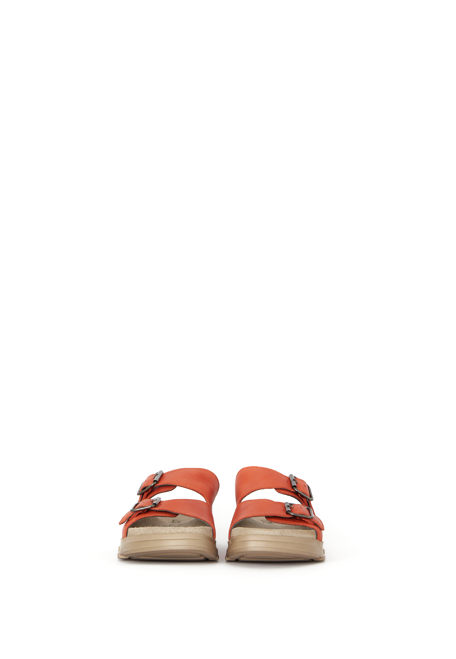 Lofina sandal i orange kalveskind, som er foret med svineskind for god åndbarhed og komfort. Lækker og behagelig sandal i et cool look. Sandalen har to justerbare spænder og kommer med en yderst komfortabel fodsengssål. Vores absolutte bestseller sandal, både til hjemlig hygge, på arbejde, ved stranden.