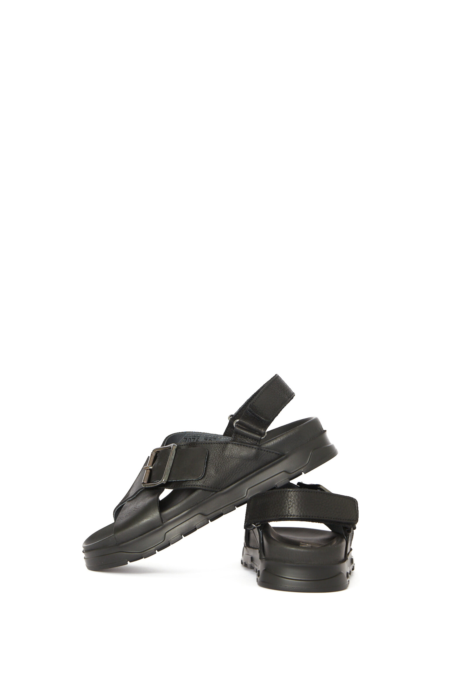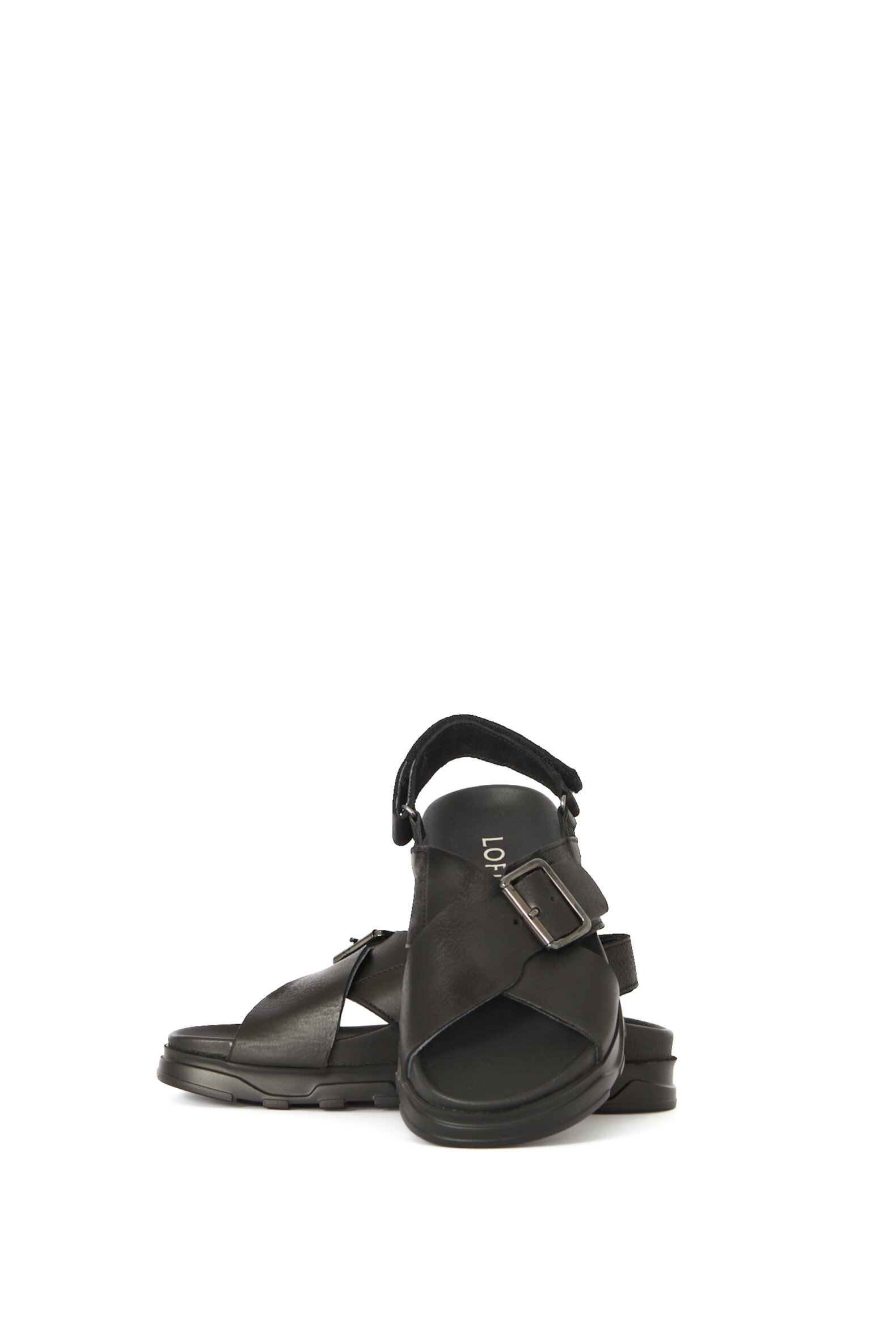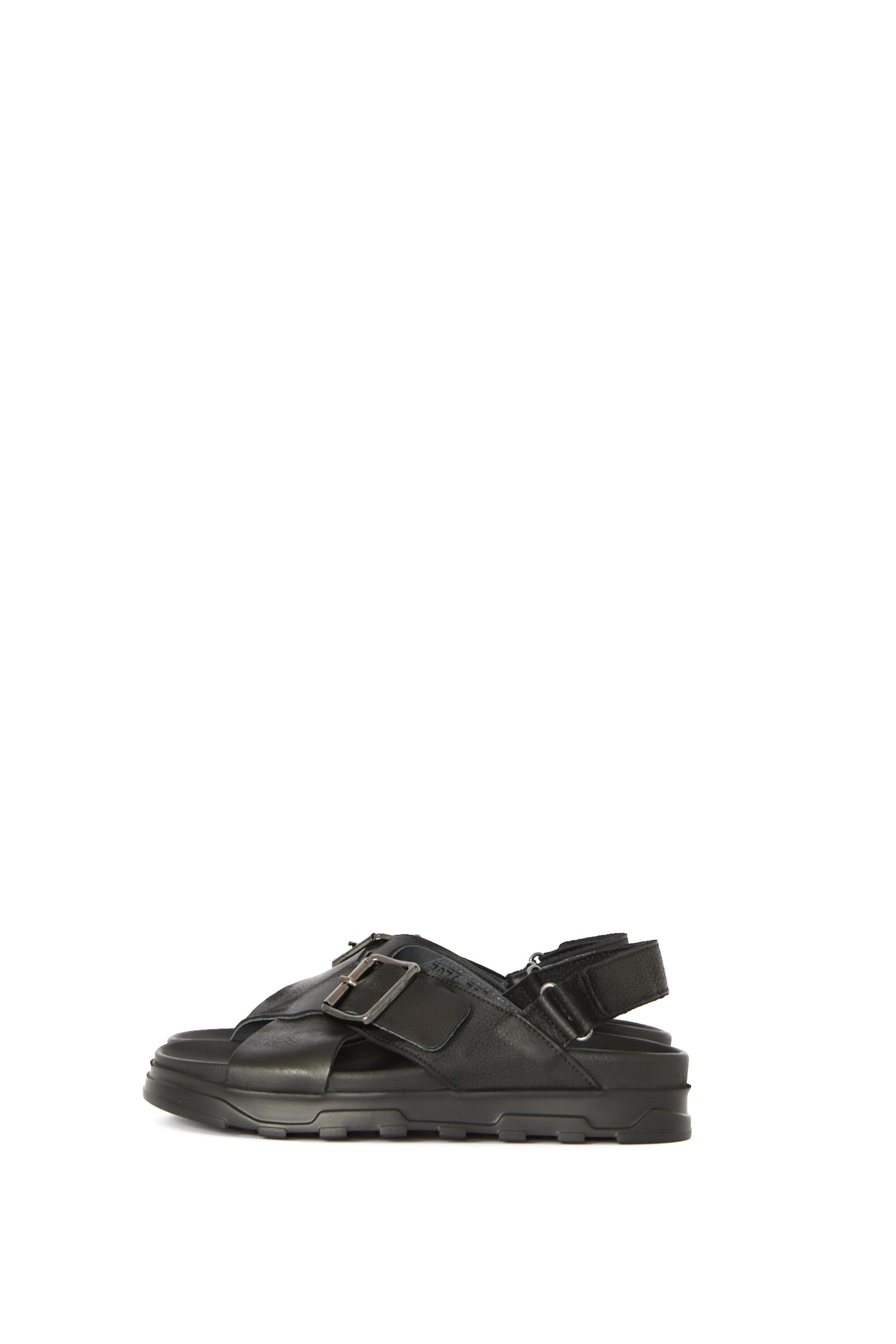 Sandal i glat sort kalveskind med en blød fodsengssål for ekstra god komfort. Sandalen er foret med svineskind for god åndbarhed. Denne model er med spænde over vristen og velcrolukning bagtil. Sålen er en af vores absolutte bedstsolgte sandal-såler (den samme som vores klassiker 1E-240).