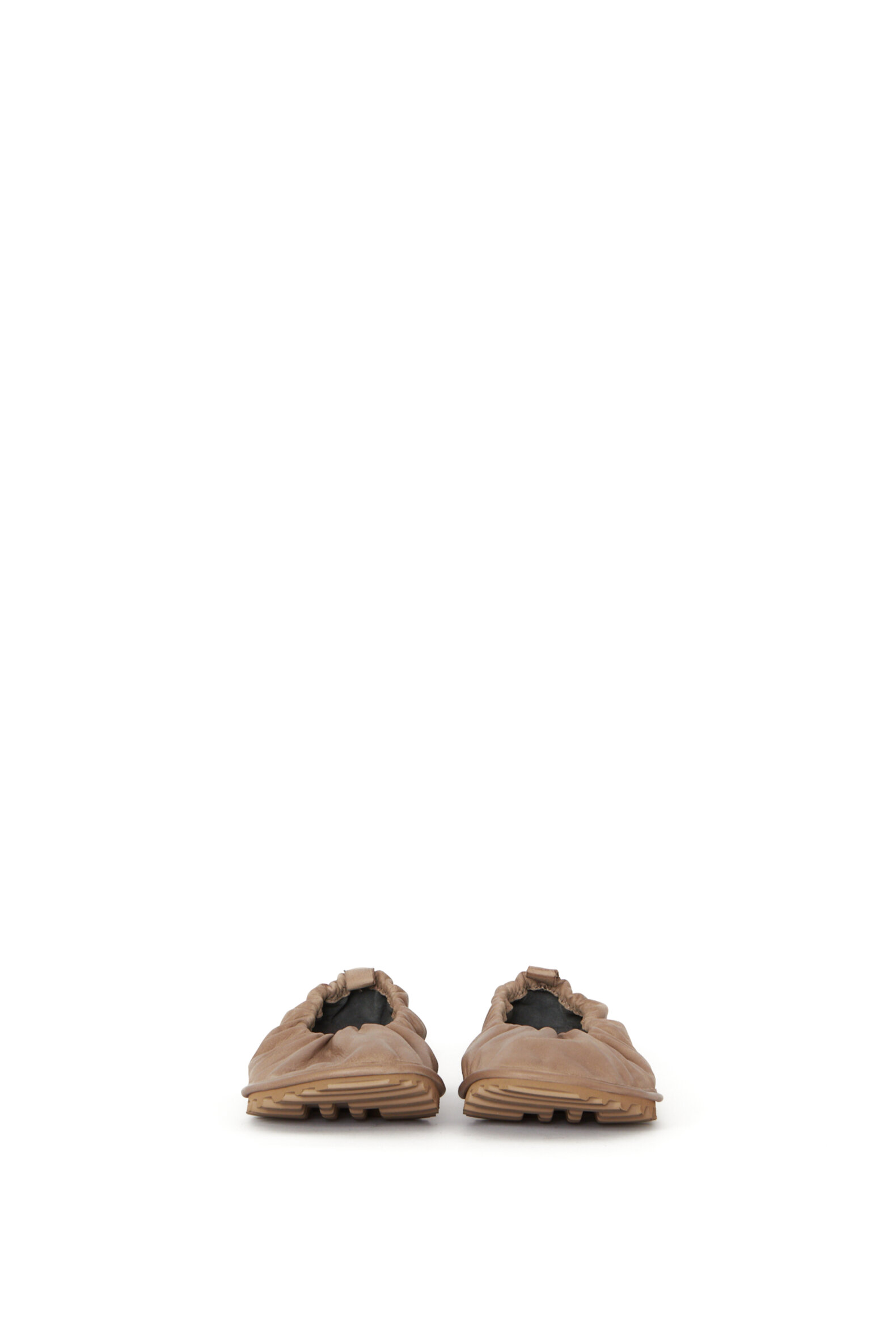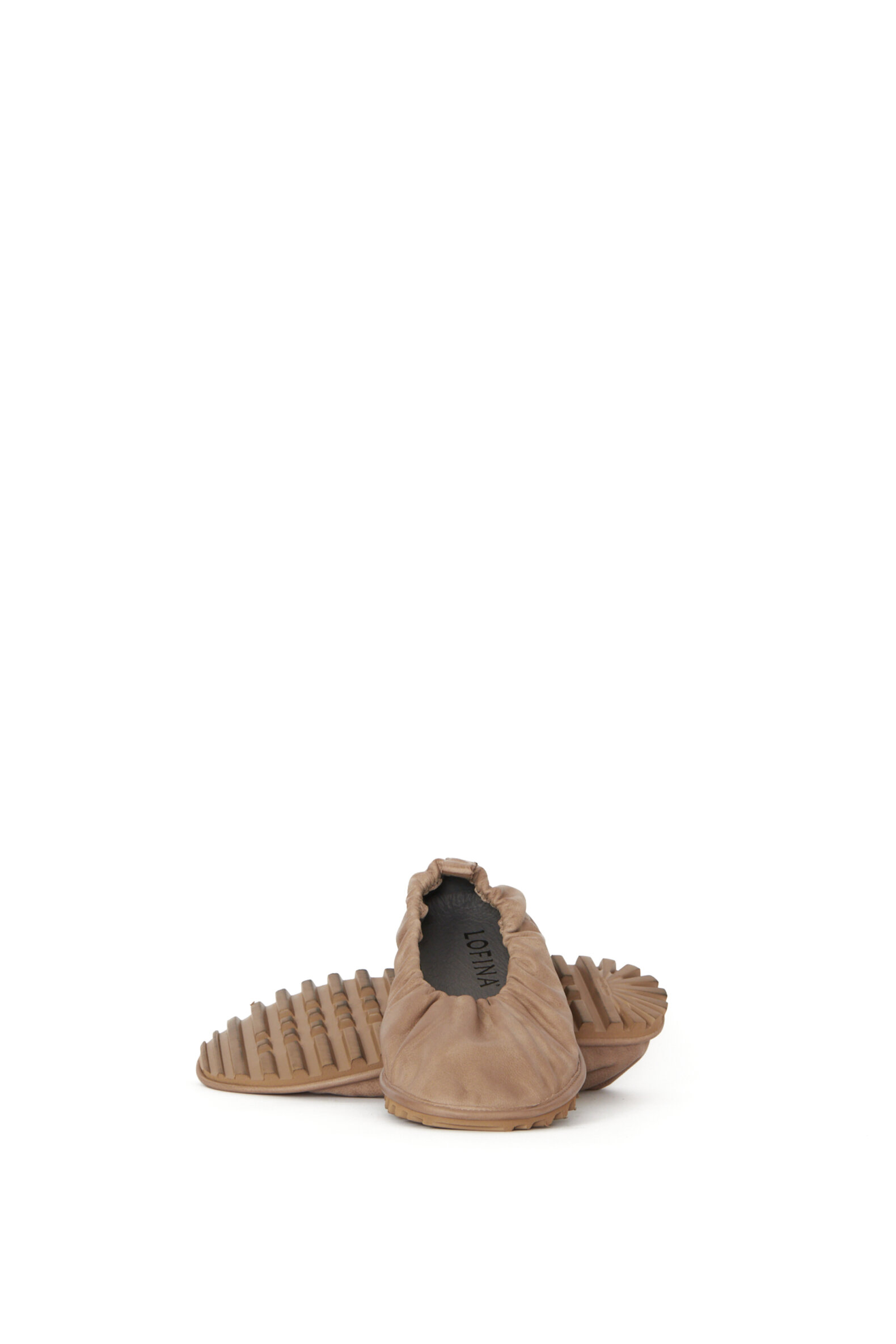 Håndlavet ballerina i blødt, naturligt lysebrunt kalveskind, der giver et autentisk og raffineret udtryk. Læderets organiske struktur ses tydeligt i skoens overflade, hvilket tilføjer karakter og understreger hver enkelt models unikke håndværk. Skoen er foret med svineskind for god åndbarhed og komfort. En elegant, tidløs sko, der let kan styles både afslappet og mere sofistikeret. Skoen er designet med elastik, så den sidder helt tæt til foden. Den lette og fleksible sål med markante, men elegante riller sikrer optimal komfort og greb.