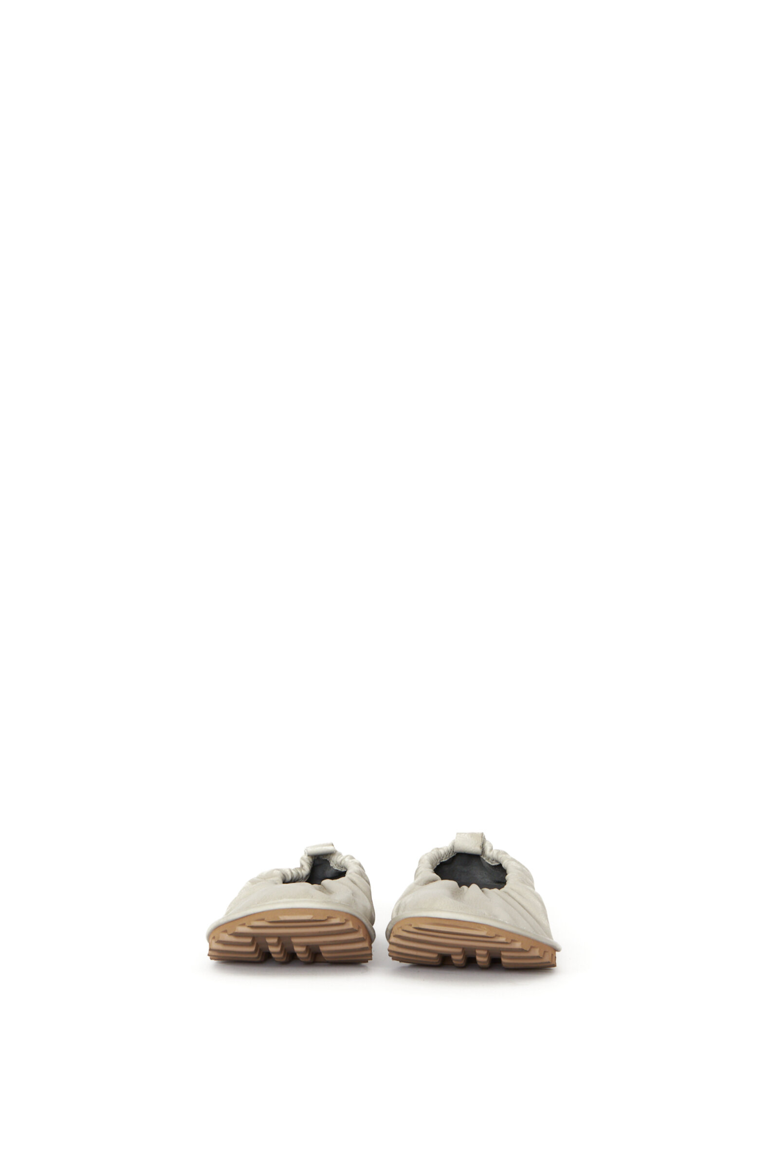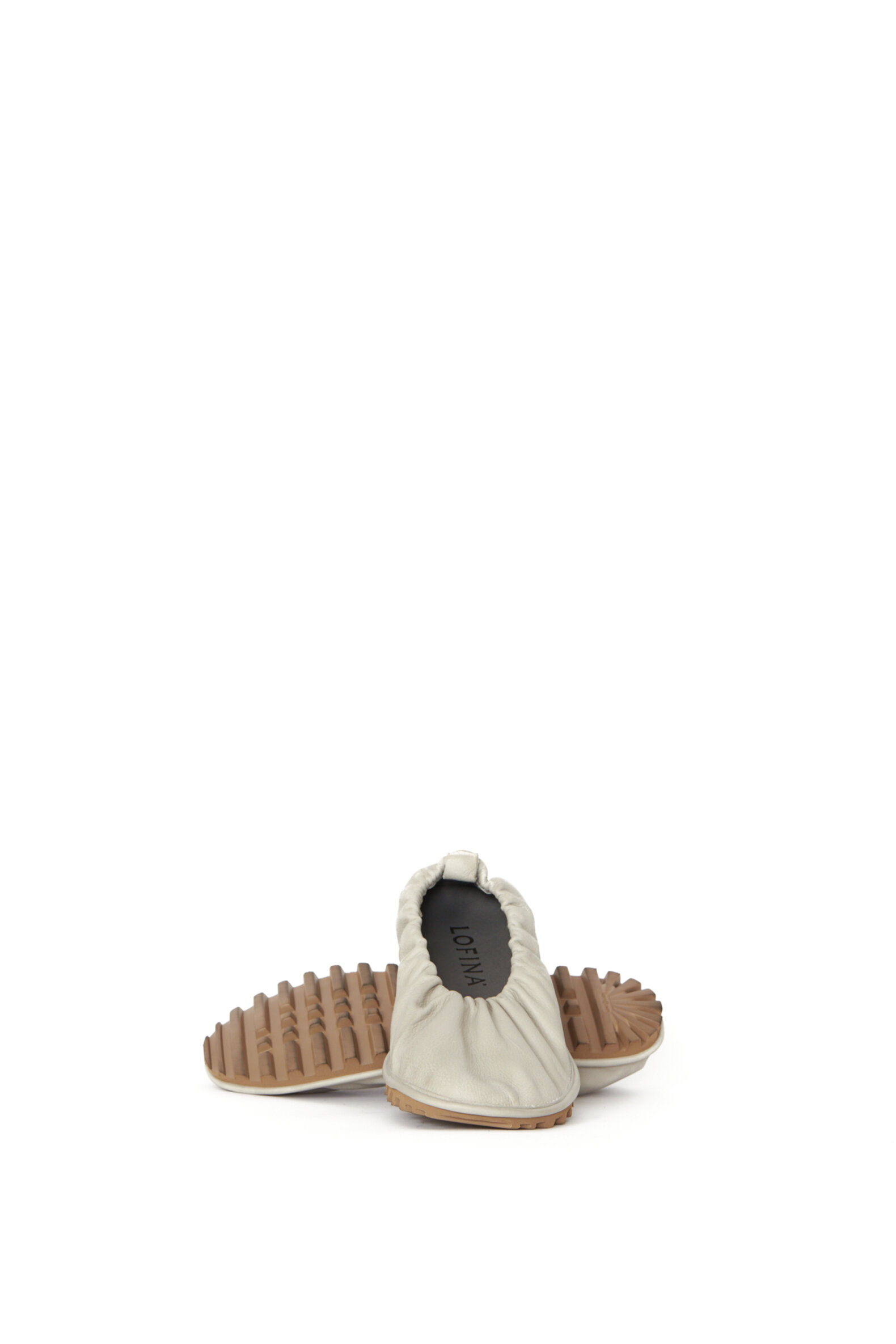 Håndlavet ballerina i blødt, naturligt lysegråt kalveskind, der giver et autentisk og raffineret udtryk. Læderets organiske struktur ses tydeligt i skoens overflade, hvilket tilføjer karakter og understreger hver enkelt models unikke håndværk. Skoen er foret med svineskind for god åndbarhed og komfort. En elegant, tidløs sko, der let kan styles både afslappet og mere sofistikeret. Skoen er designet med elastik, så den sidder helt tæt til foden. Den lette og fleksible sål med markante, men elegante riller sikrer optimal komfort og greb.