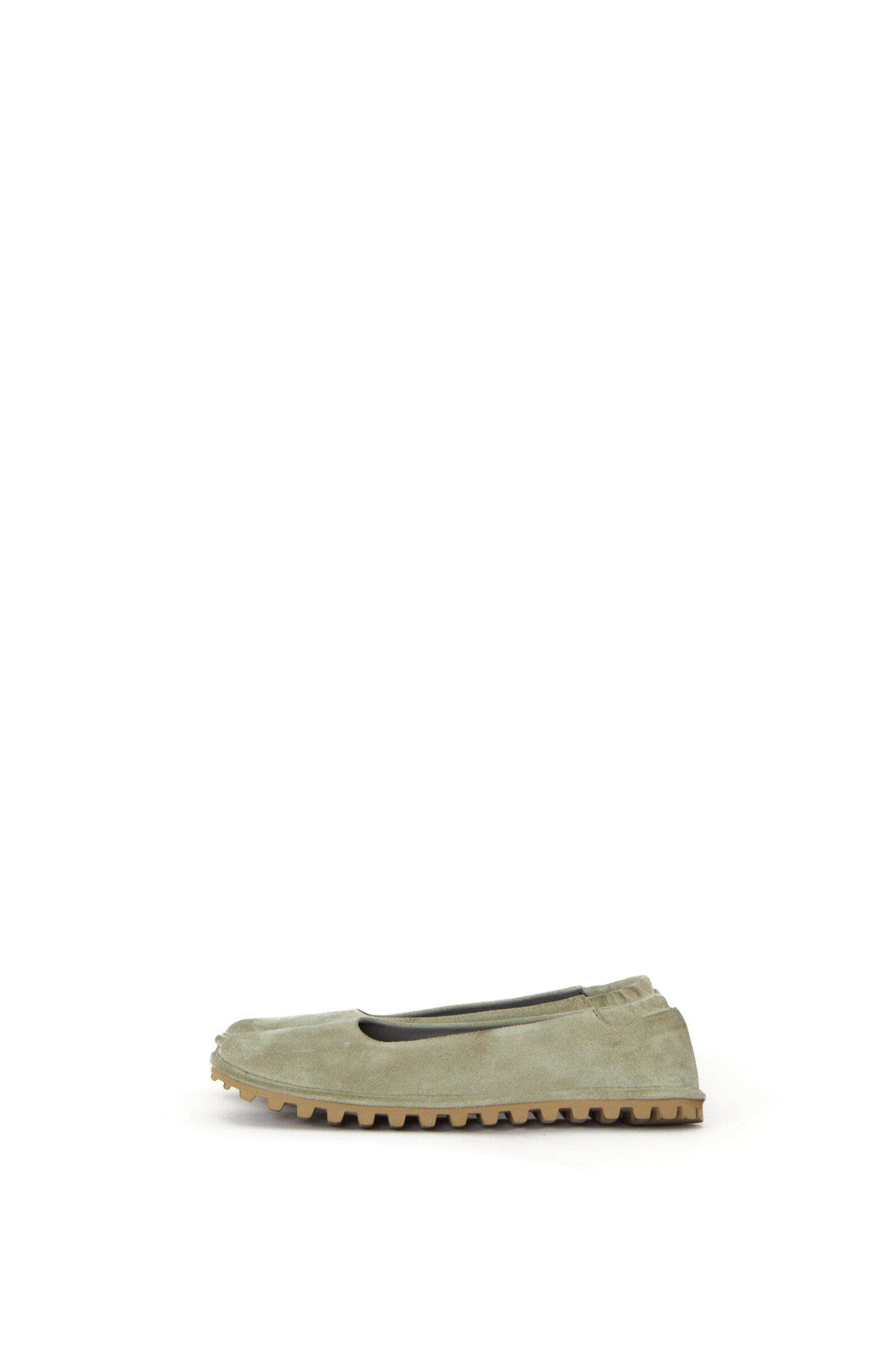 The ballerina is made in suede of calfskin lined with pigskin. The sole is made in mixed materials of synthetic rubber.