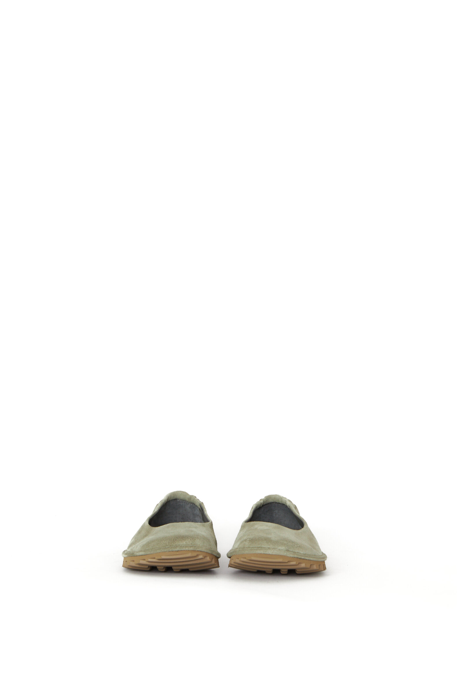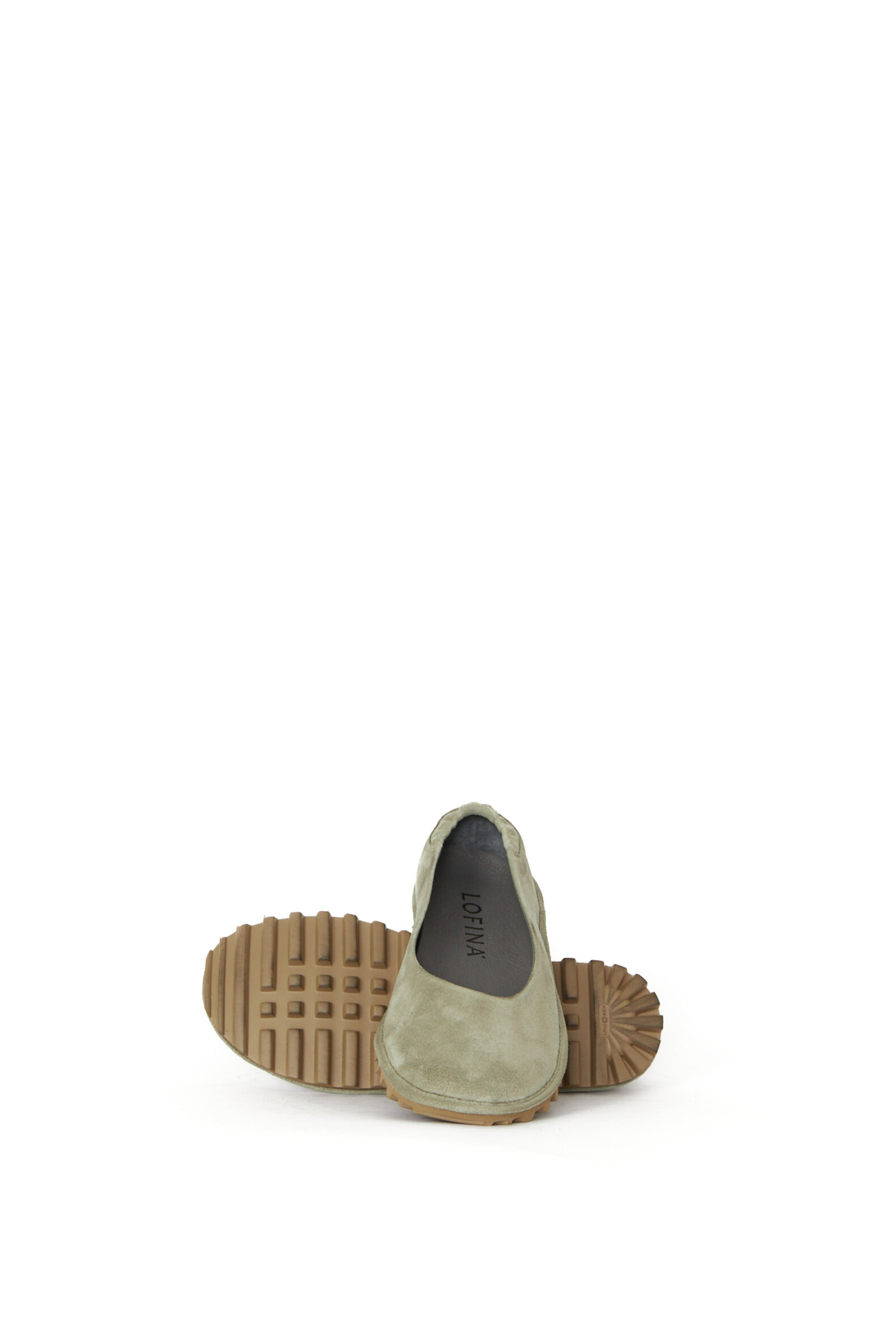 Handmade ballerina in soft, naturally suede that offers an authentic and refined appearance. The organic structure of the leather is clearly visible on the surface, adding character and highlighting the unique craftsmanship of each model. The shoe is lined with pigskin for excellent breathability and comfort. An elegant, timeless style that can easily be worn both casually and in more sophisticated settings. The lightweight and flexible sole ensures optimal comfort and grip.