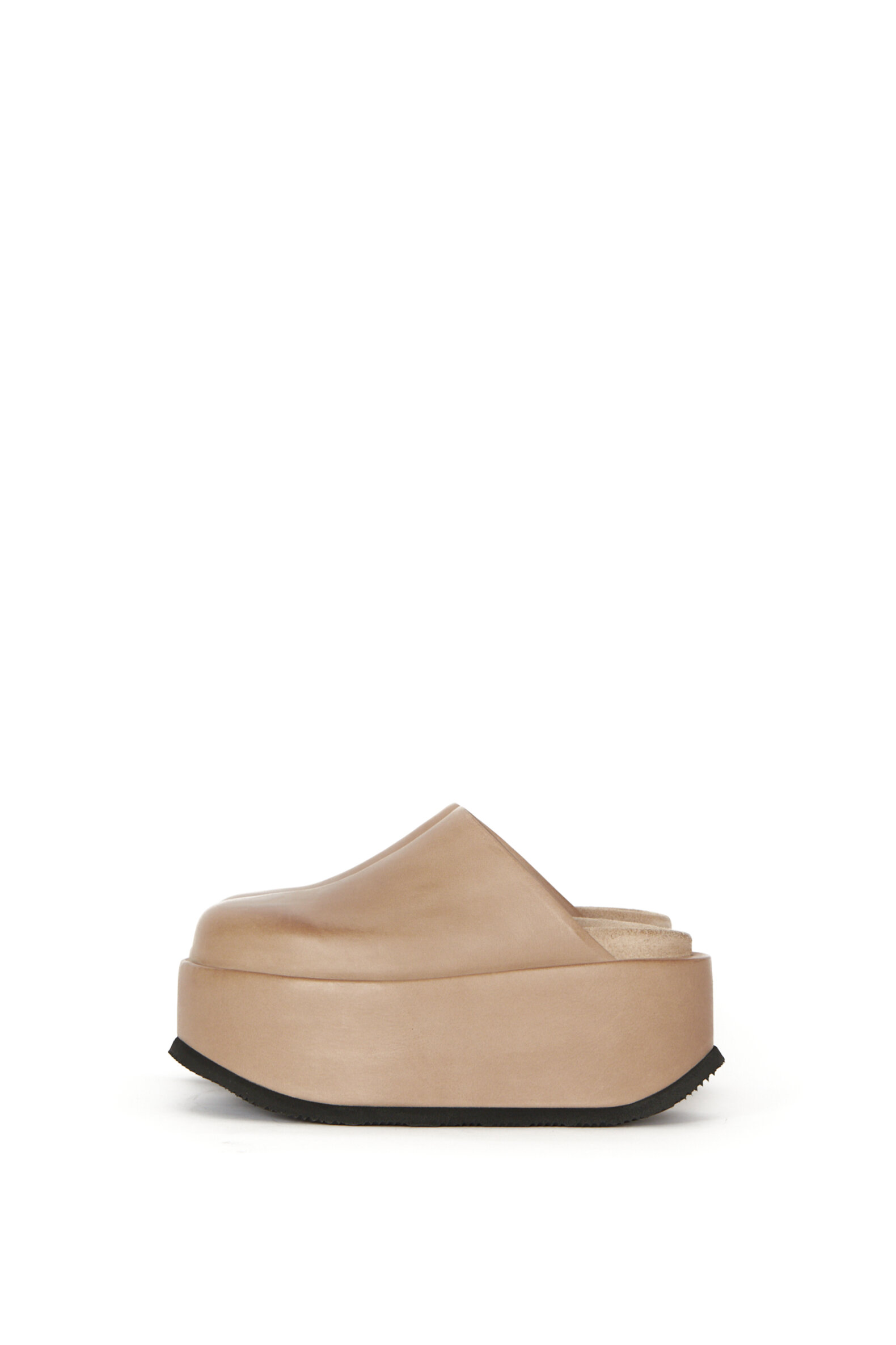Slip on sandal fra Sort Aarhus med platform sål. Sandalen er håndlavet i blødt brunt kalveskind og er foret med svineskind for optimal åndbarhed og har en blød fodsengssål indeni for optimal komfort og støtte. Skil dig ud med dette statement piece af en sandal uden at gå på kompromis med håndværk, kvalitet og design. Sålen er 8 cm høj og overraskende let.