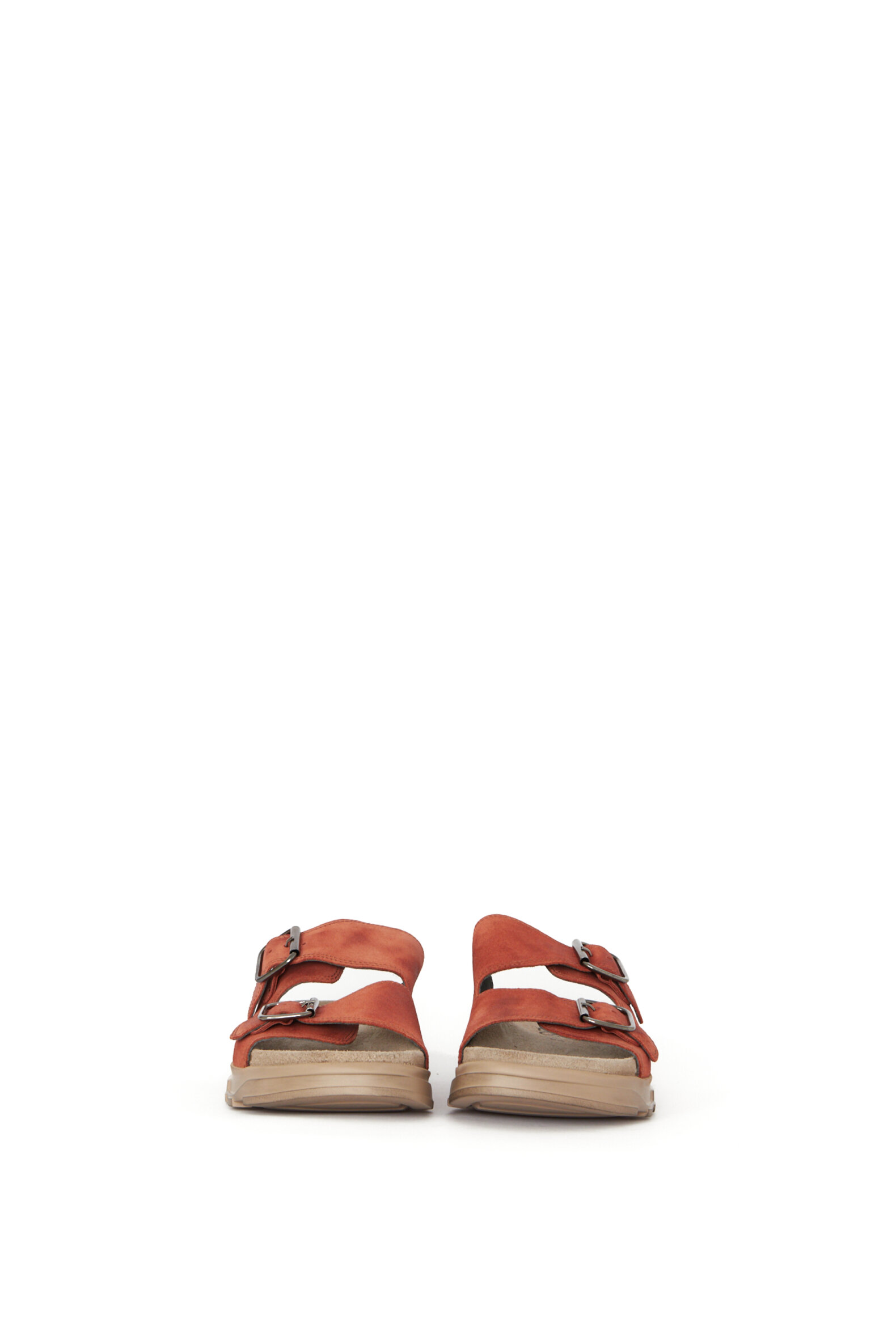 Sandalen er i ruskind foret med svineskind. Sålen er en letvægtssål.
