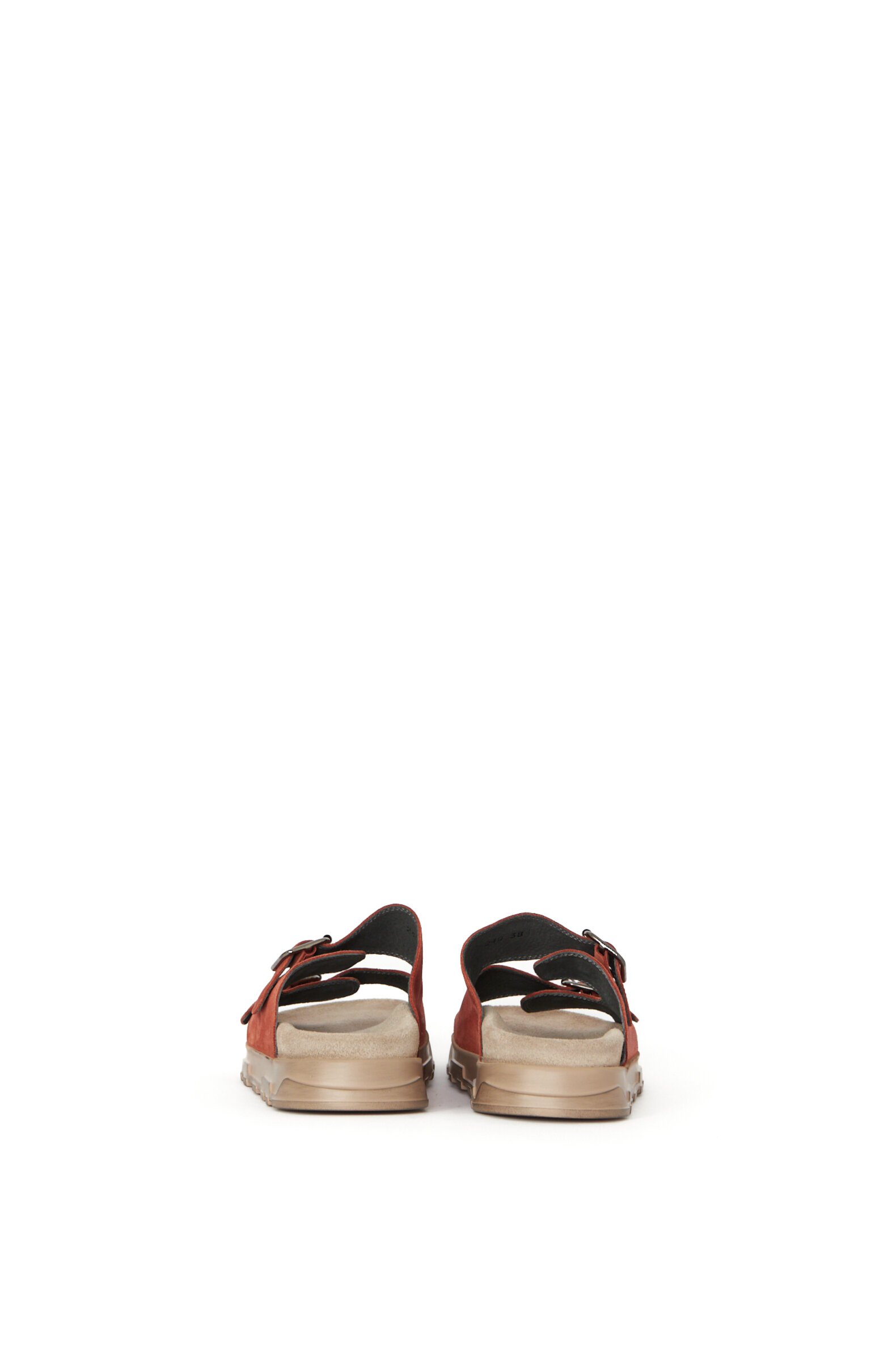 Denne populære sandal har en super behagelig fodsengssål, som gør den ekstra komfortabel at gå i. Så har du brug for ekstra støtte, er denne et godt valg. Sandalen har desuden to justérbare spænder og er lavet i ruskind foret med svineskind.
