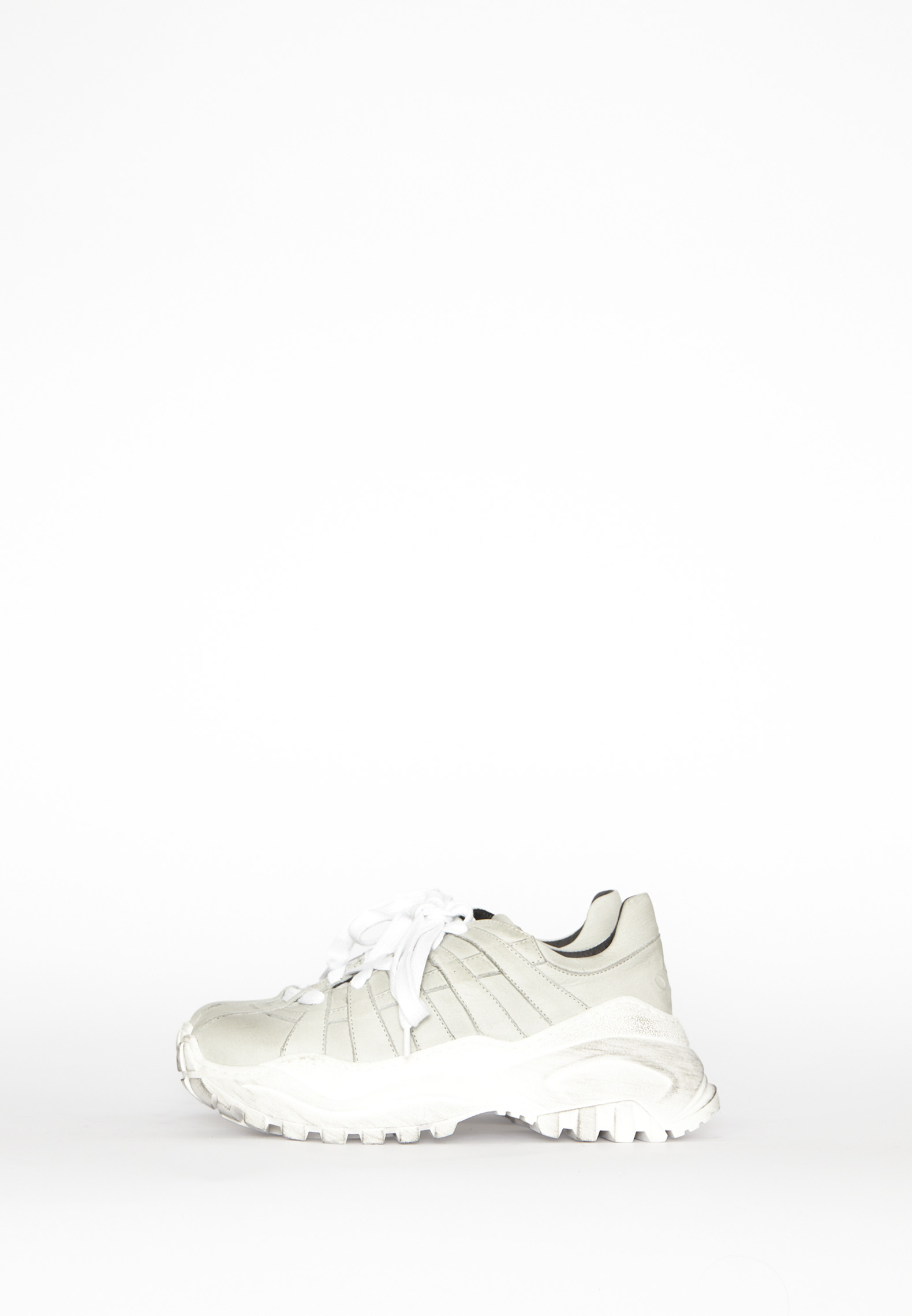 Cool sneakers in light grey calfskin with a pigskin lining. Comes with laces. A chunky sole in a sporty look.Material