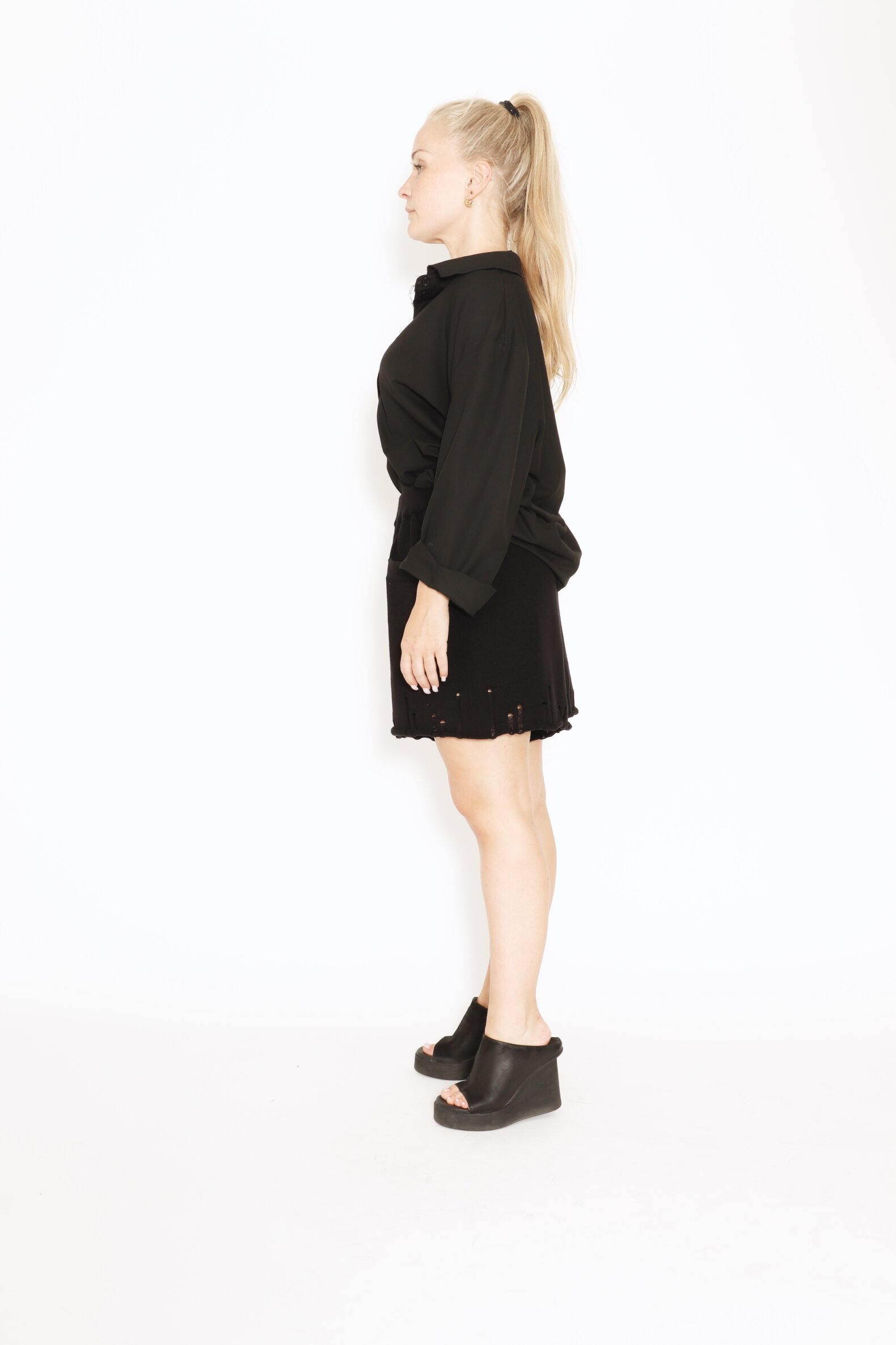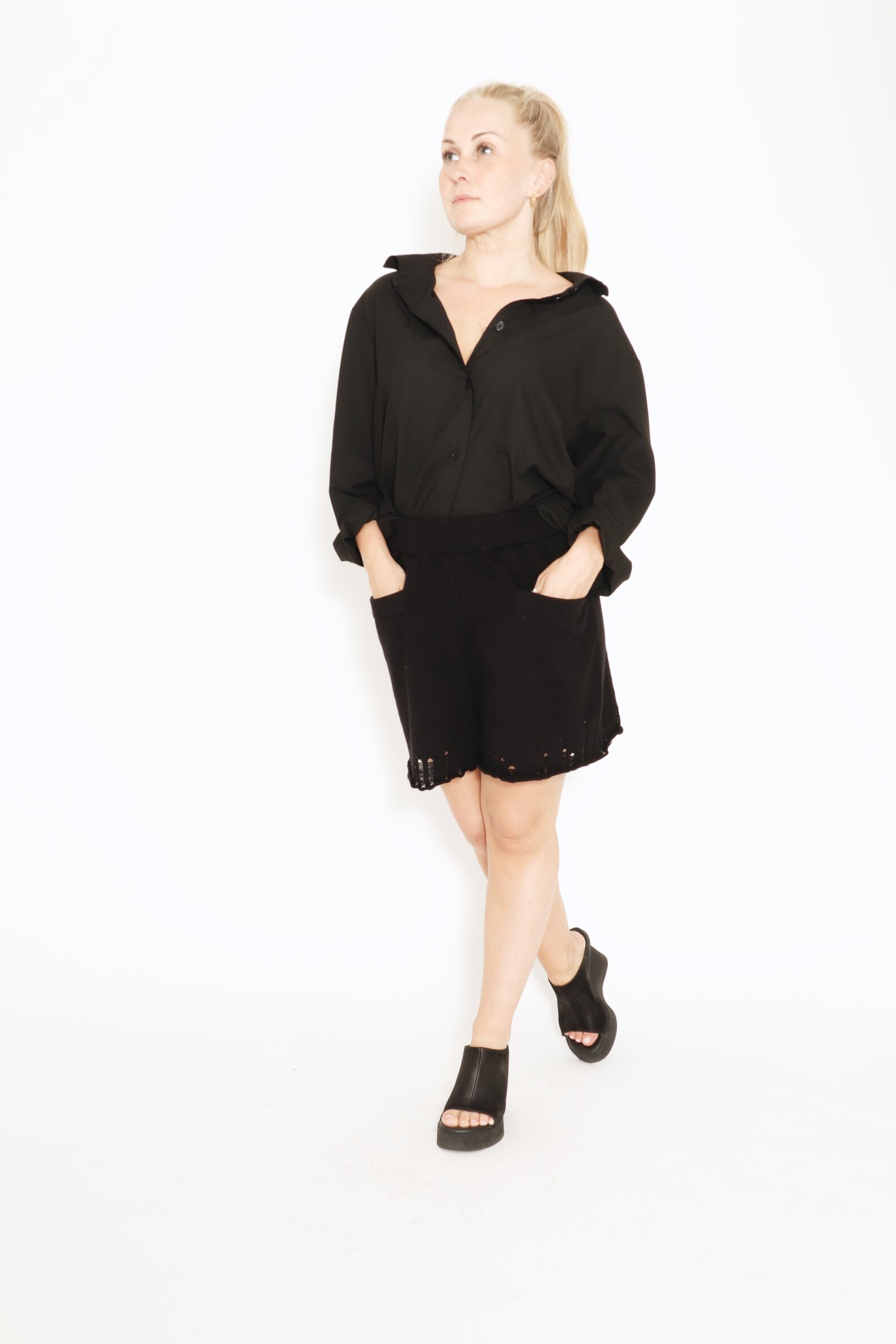 Disse strikkede shorts er en kollektionsprøve. Der ses mærker efter en bøjle øverst på ribkanten.