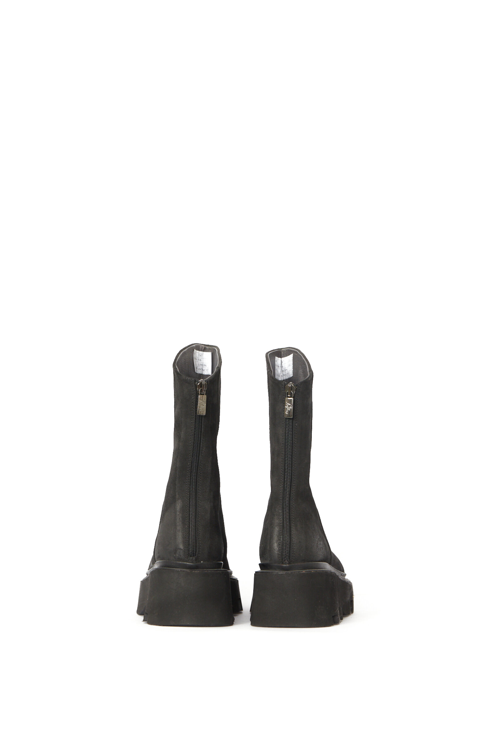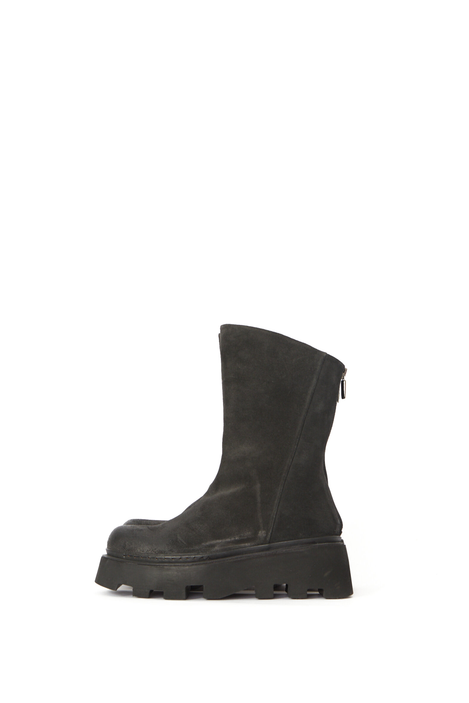 Dette er en kollektionsprøve i størrelse 37. Støvle i mørkegrå ruskind med front-lynlås.Materiale
