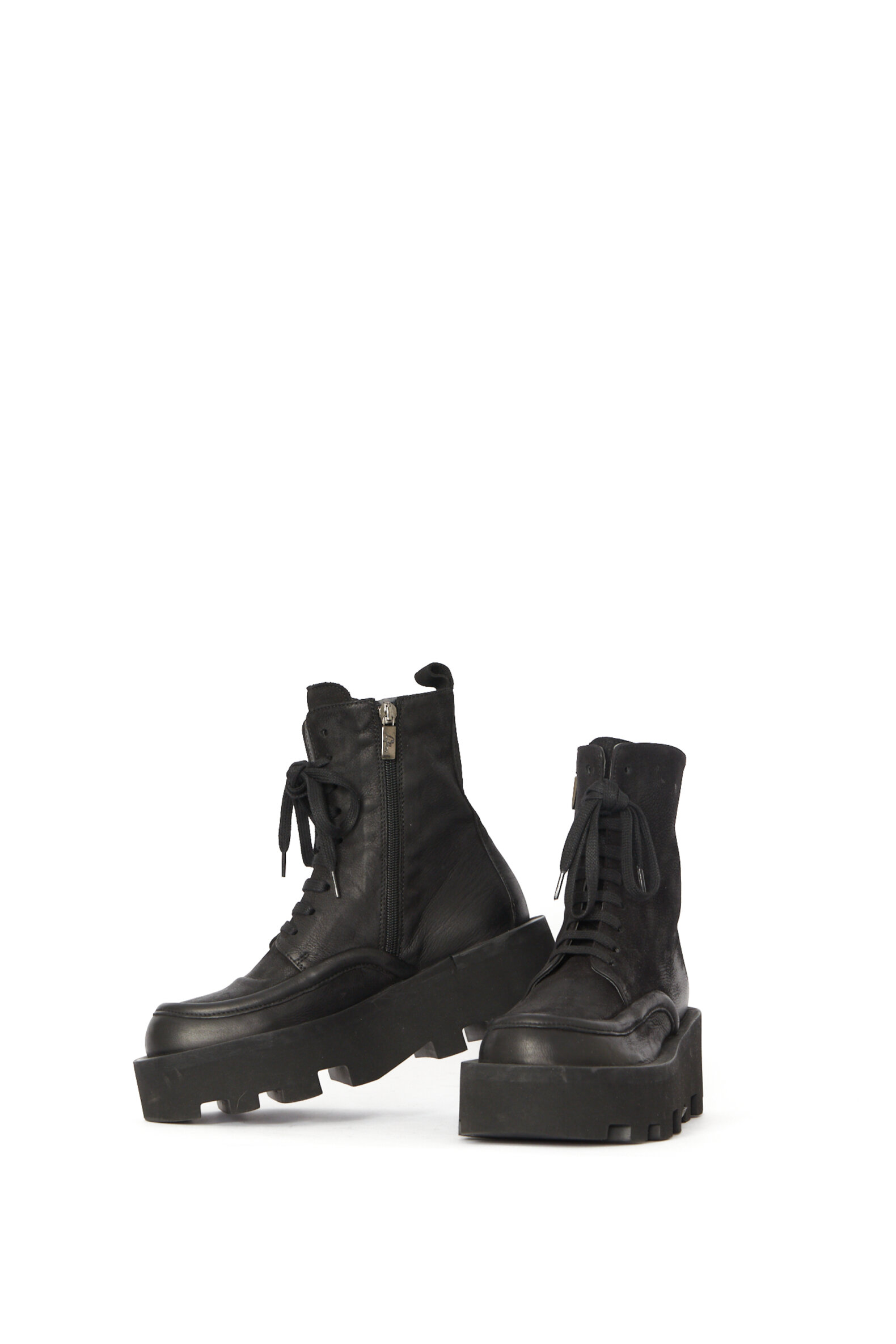Dette er en kollektionsprøve i størrelse 37. Støvle i sort kalveskind med en foring af svineskind. Støvlen har snøre så den er nem at justere til din fod. Sålen er komfortabel og chunky af udseende.Materiale