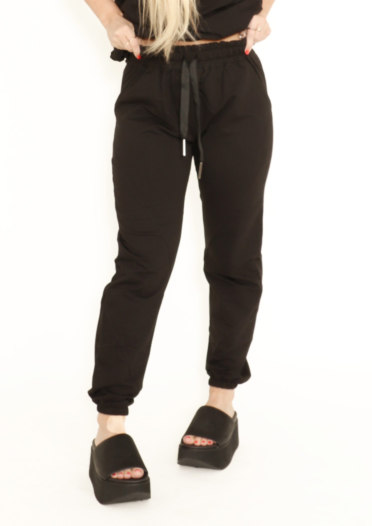 Sweat bukser med elastik i taljen og forneden samt snøre
