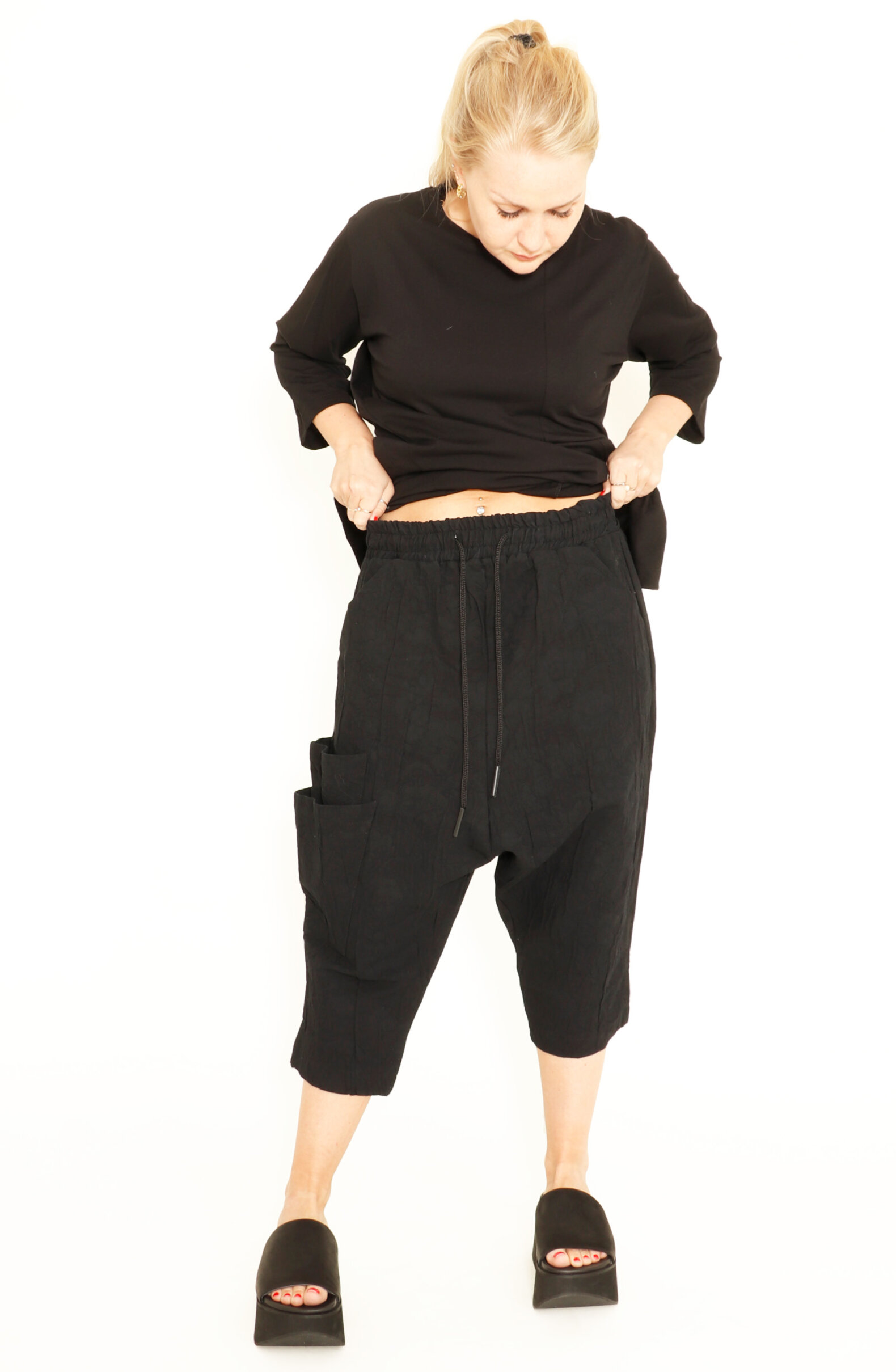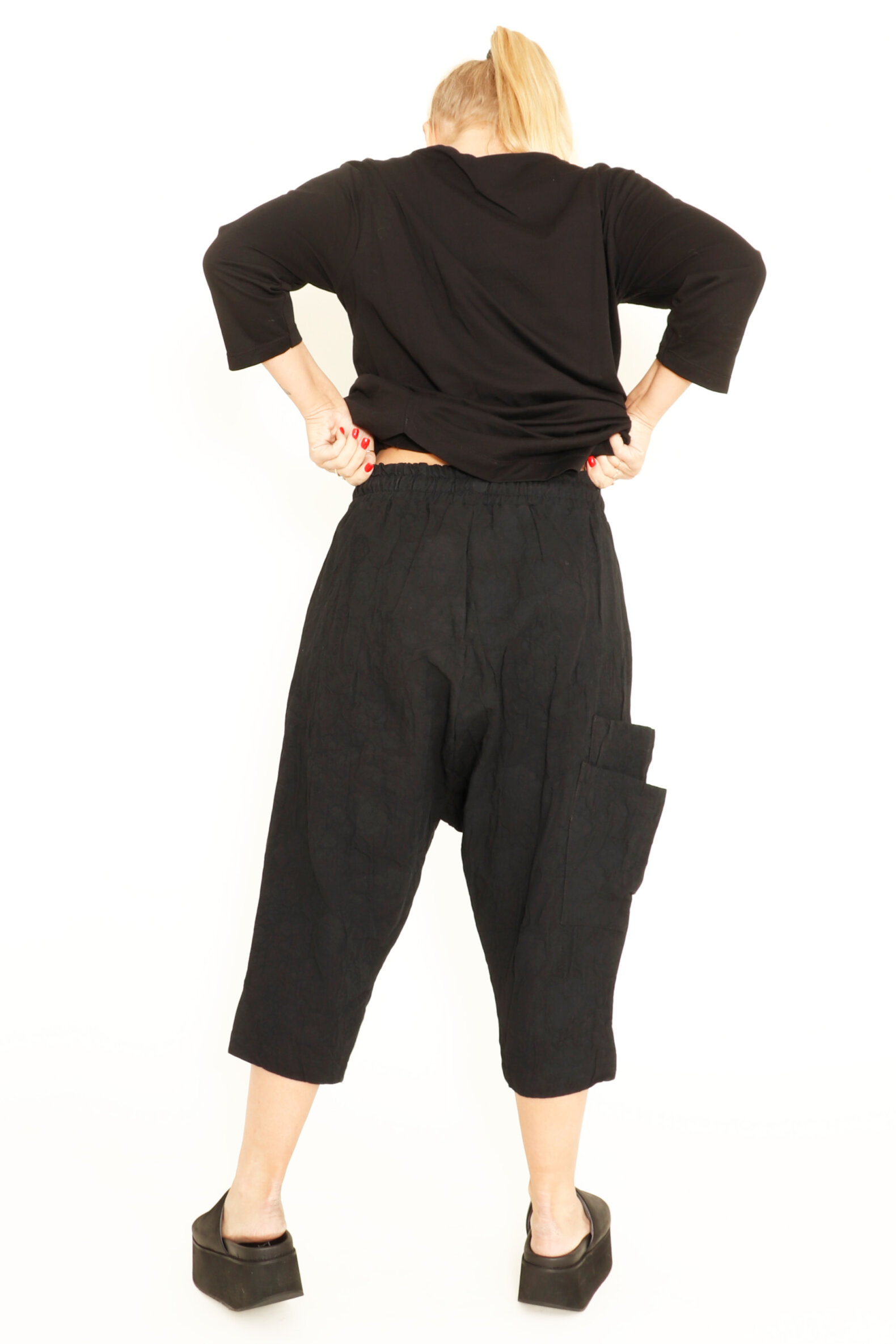 La Haine Inside Us trousers with 3/4 length. The trousers have elastic waist band and laces. With several front pockets. The trousers are normal in size.Materiale