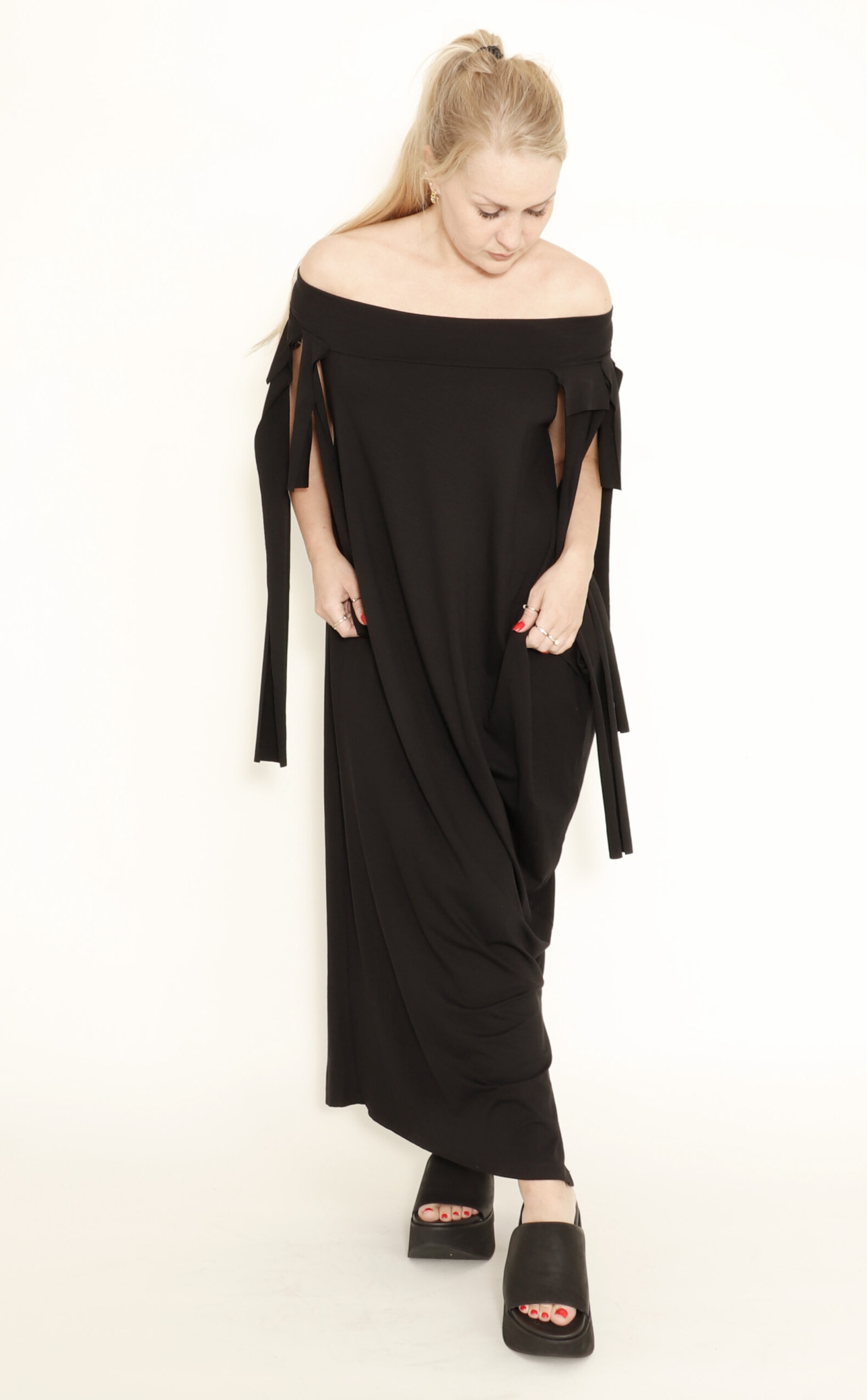 Beautiful, long dress from XD. The dress is sleeveless and with nice details. Asymmetrical cut and a nice little slit. The dress is normal in size.