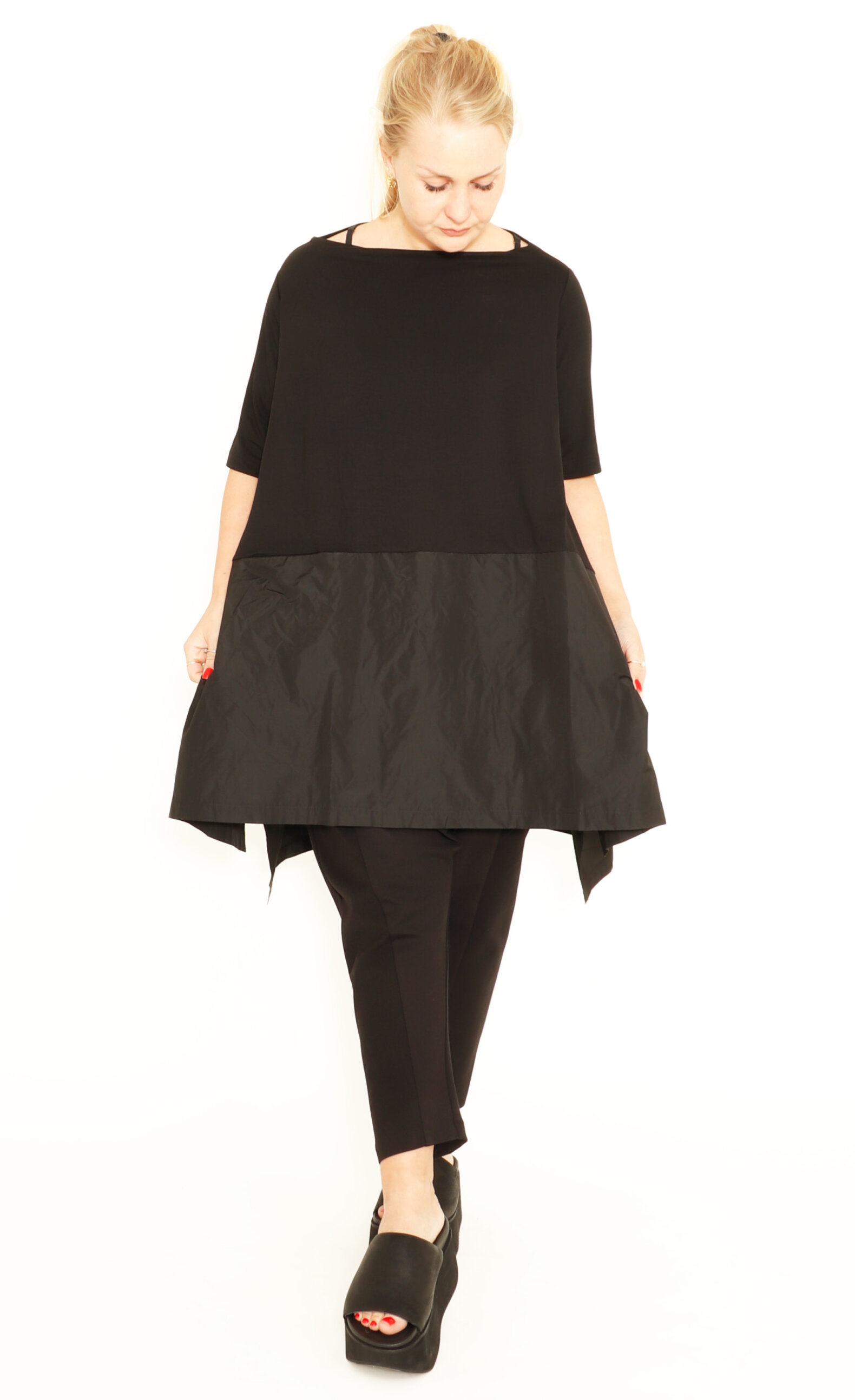 XD shirt in an oversize look. The shirt has short sleeves and a front pocket. The shirt is longer on the back. Suitable for both every day and parties. The shirt is normal in size.
