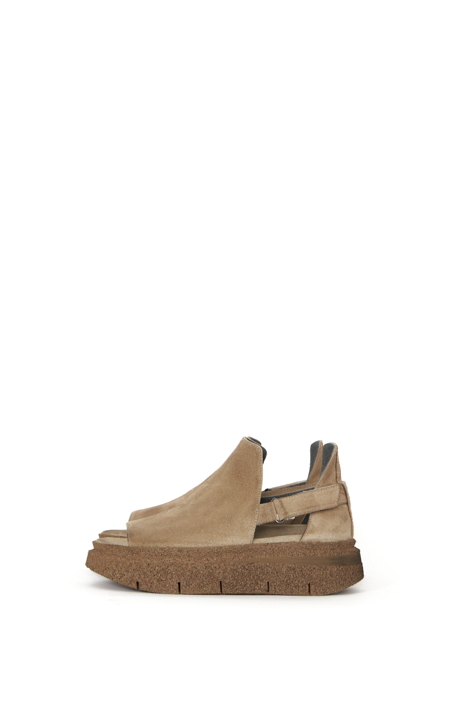 Sandalen er lavet i ruskind af kalveskind foret med svineskind. Letvægtssålen er lavet i blandingsmaterialer af syntetisk gummi.