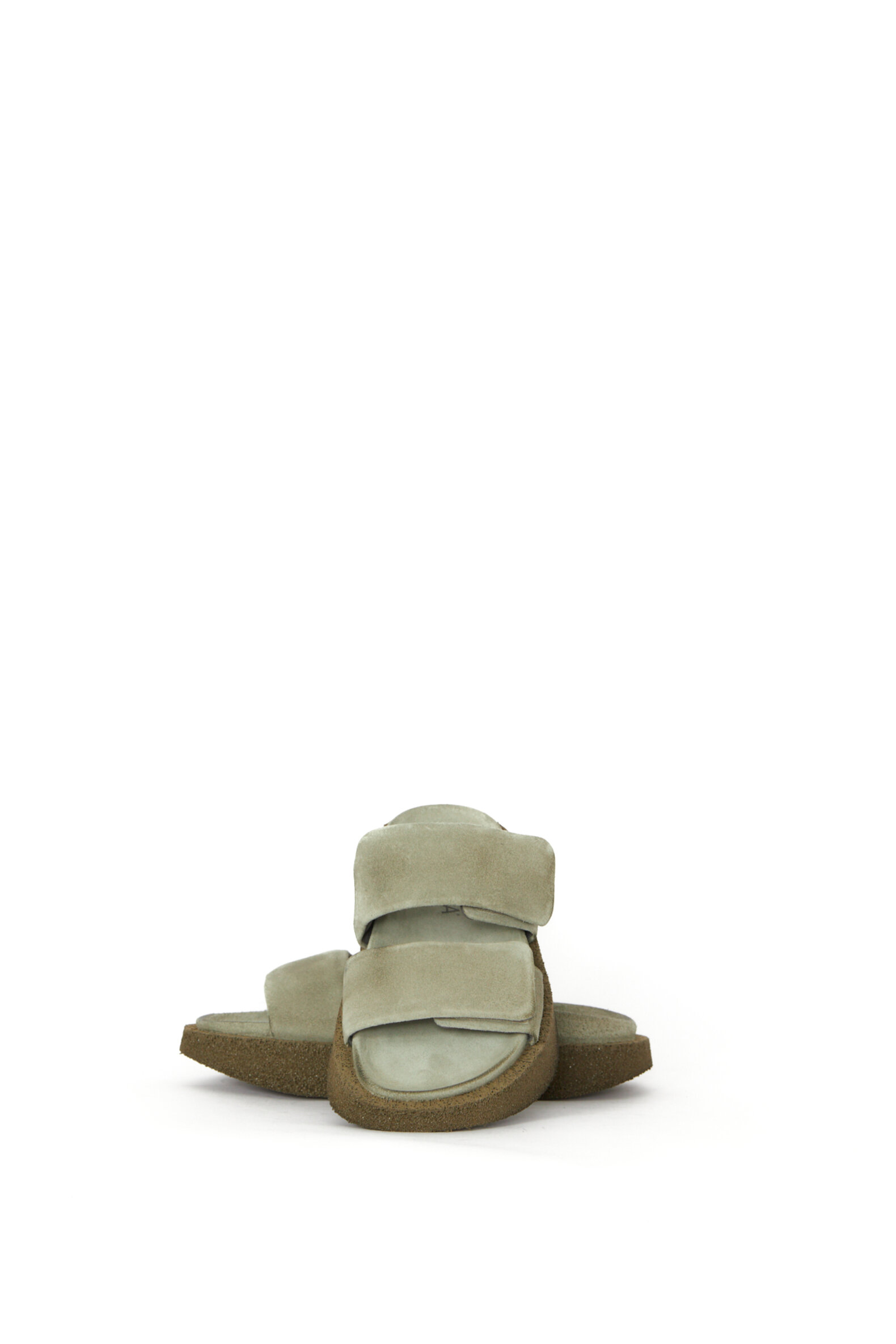 Sandal i grønt ruskind med dobbelt velcrolukning, så den er nem at justere til din fod for et optimalt fit. Sandalen er foret med svineskind for god åndbarhed og har en blød fodsengssål indeni for extra komfort og support. Sålen er fast og let.