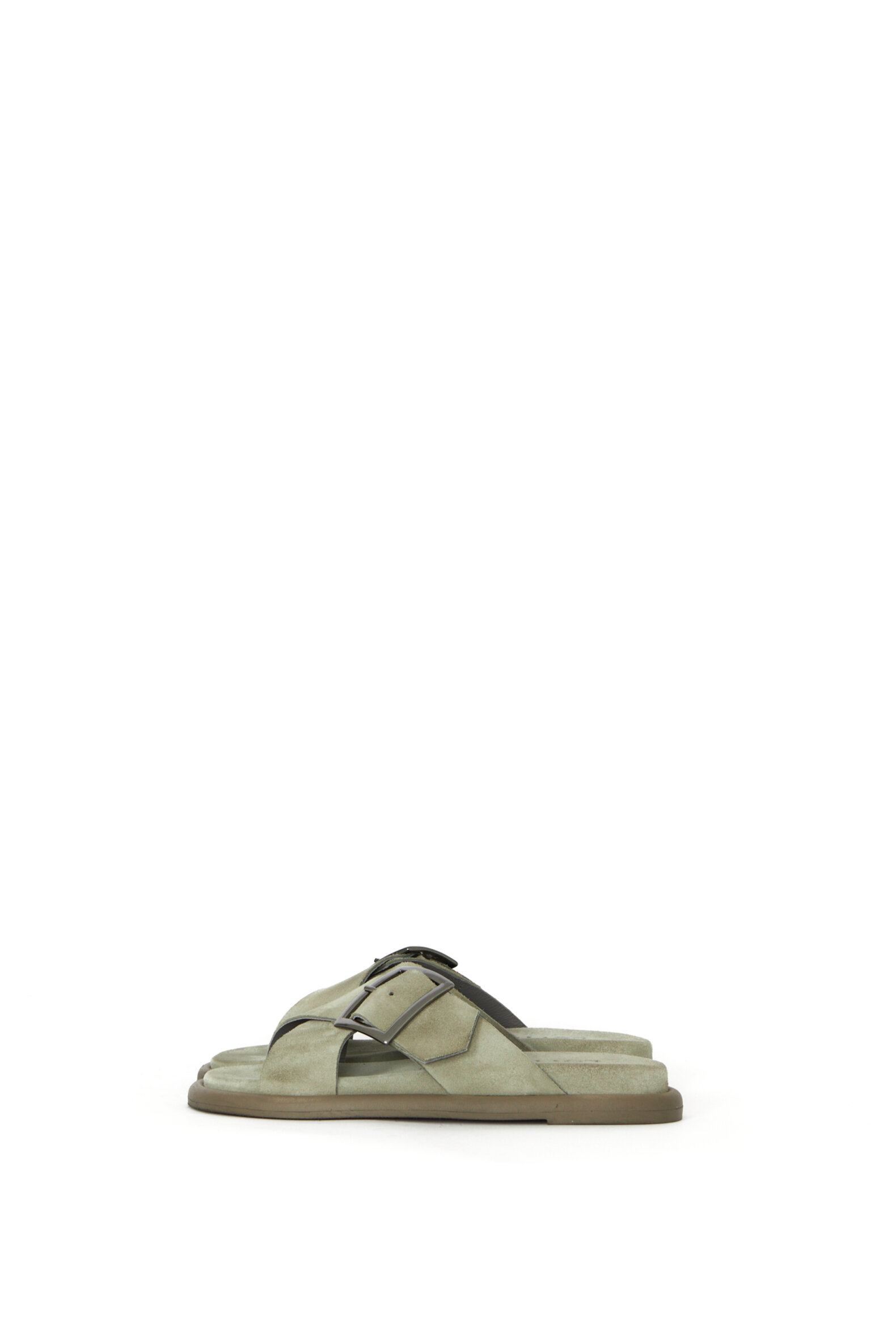 Suede sandal with cross strap and buckle