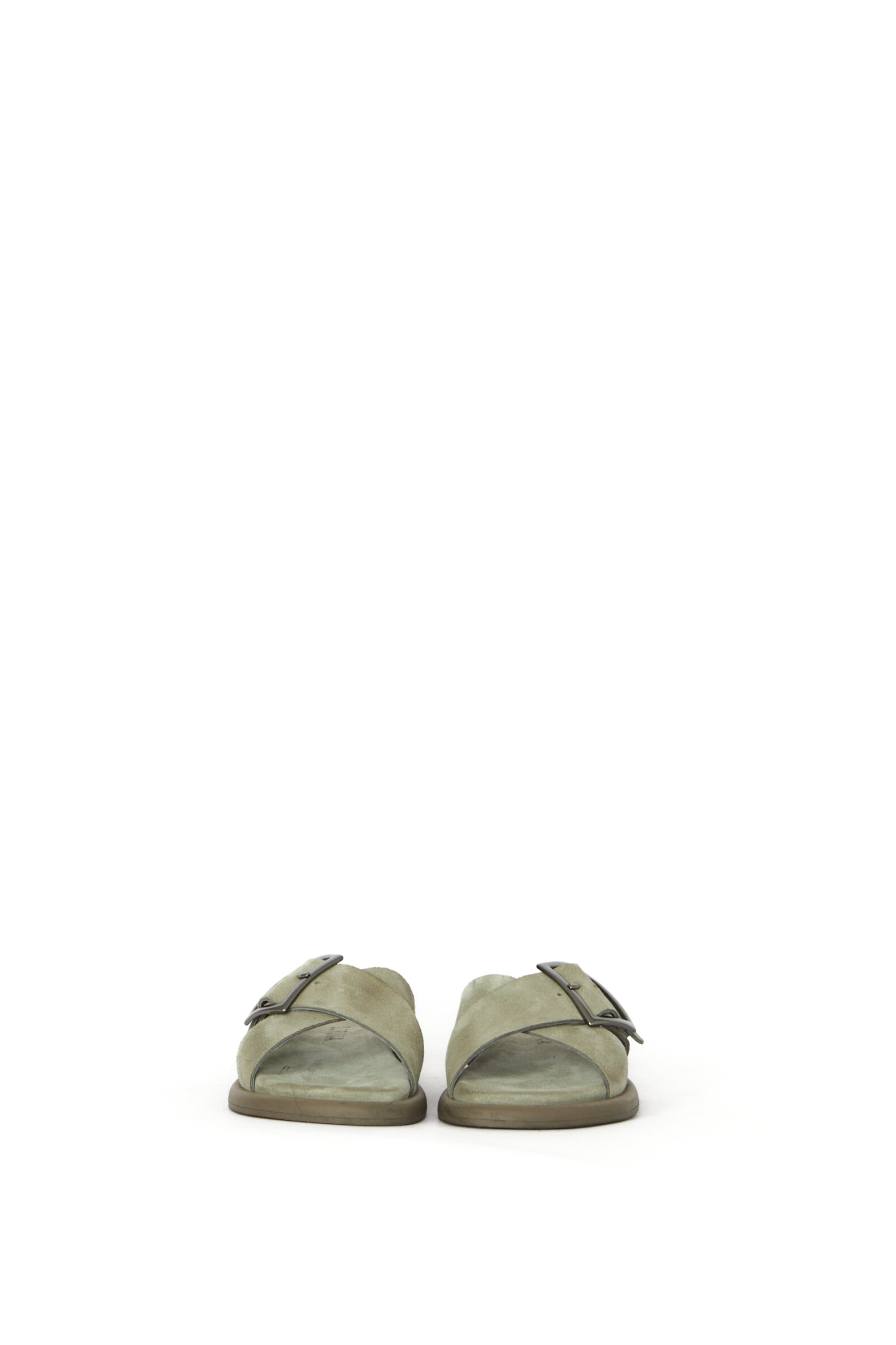Handmade sandal crafted from soft green suede and lined with pigskin, providing a comfortable, natural fit and excellent breathability. The sandal features a classic double-strap design with an adjustable buckle, allowing for a personalized fit and giving it a clean, timeless look. The firm sole is comfortable to wear and offers stability and support while maintaining a light, minimalist appearance. A simple, stylish and functional sandal that combines quality, comfort and classic design.