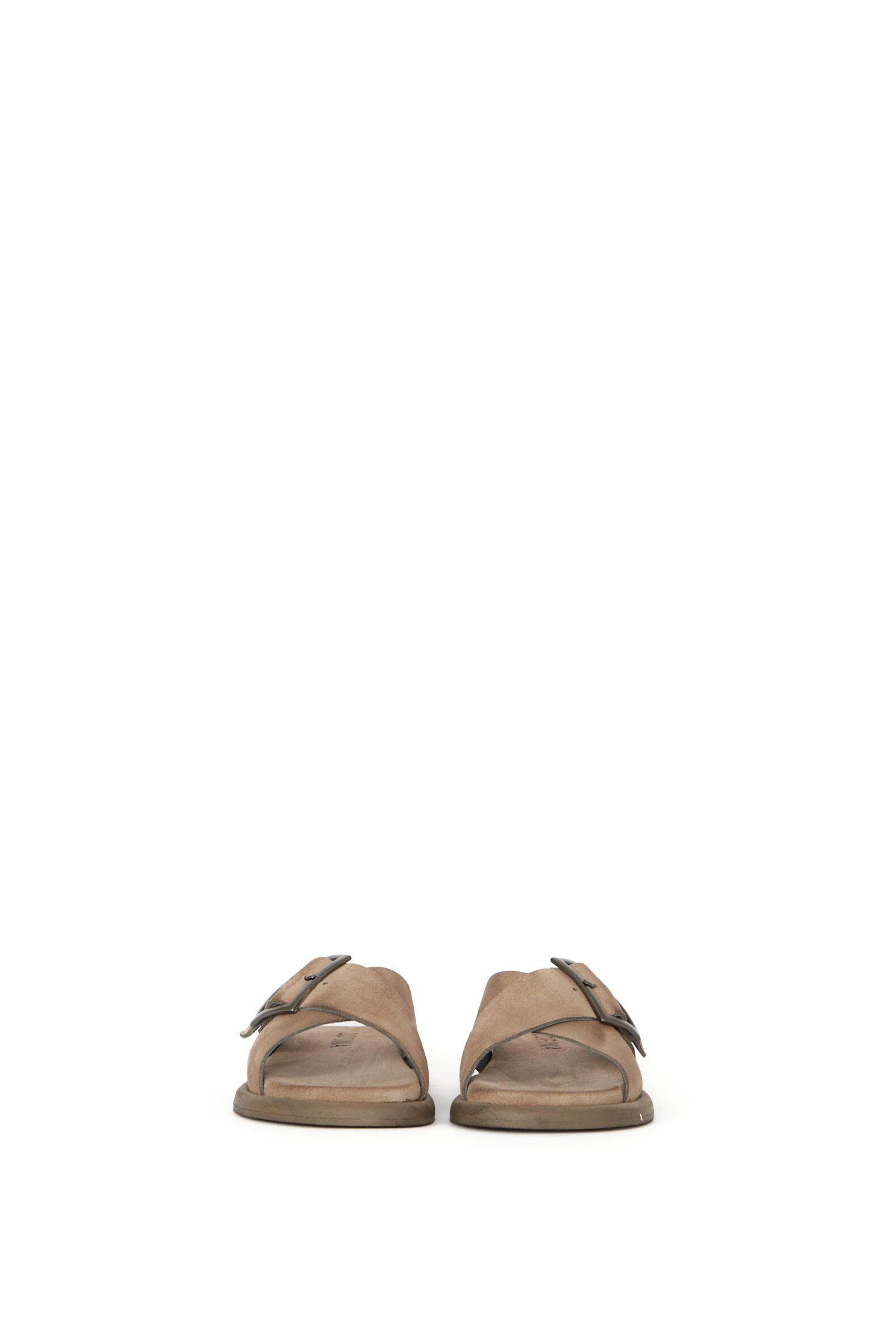 Håndlavet sandal i blødt brunt ruskind og foret med svineskind, der giver en behagelig og naturlig pasform samt god åndbarhed. Sandalen har et klassisk dobbeltrem-design med justerbare spænder, som gør det muligt at tilpasse pasformen individuelt og giver et stilrent, tidløst udtryk. Den faste sål er behagelig at have på og giver stabilitet og støtte, samtidig med at den bevarer et let og minimalistisk look. En enkel, stilfuld og funktionel sandal, der kombinerer kvalitet, komfort og klassisk design.