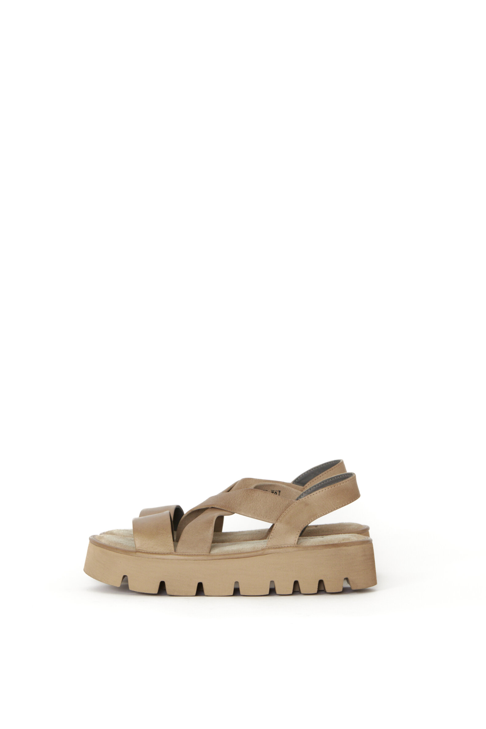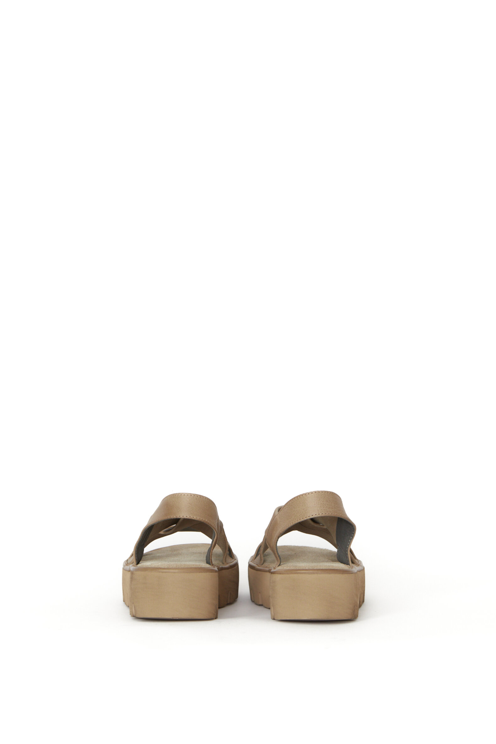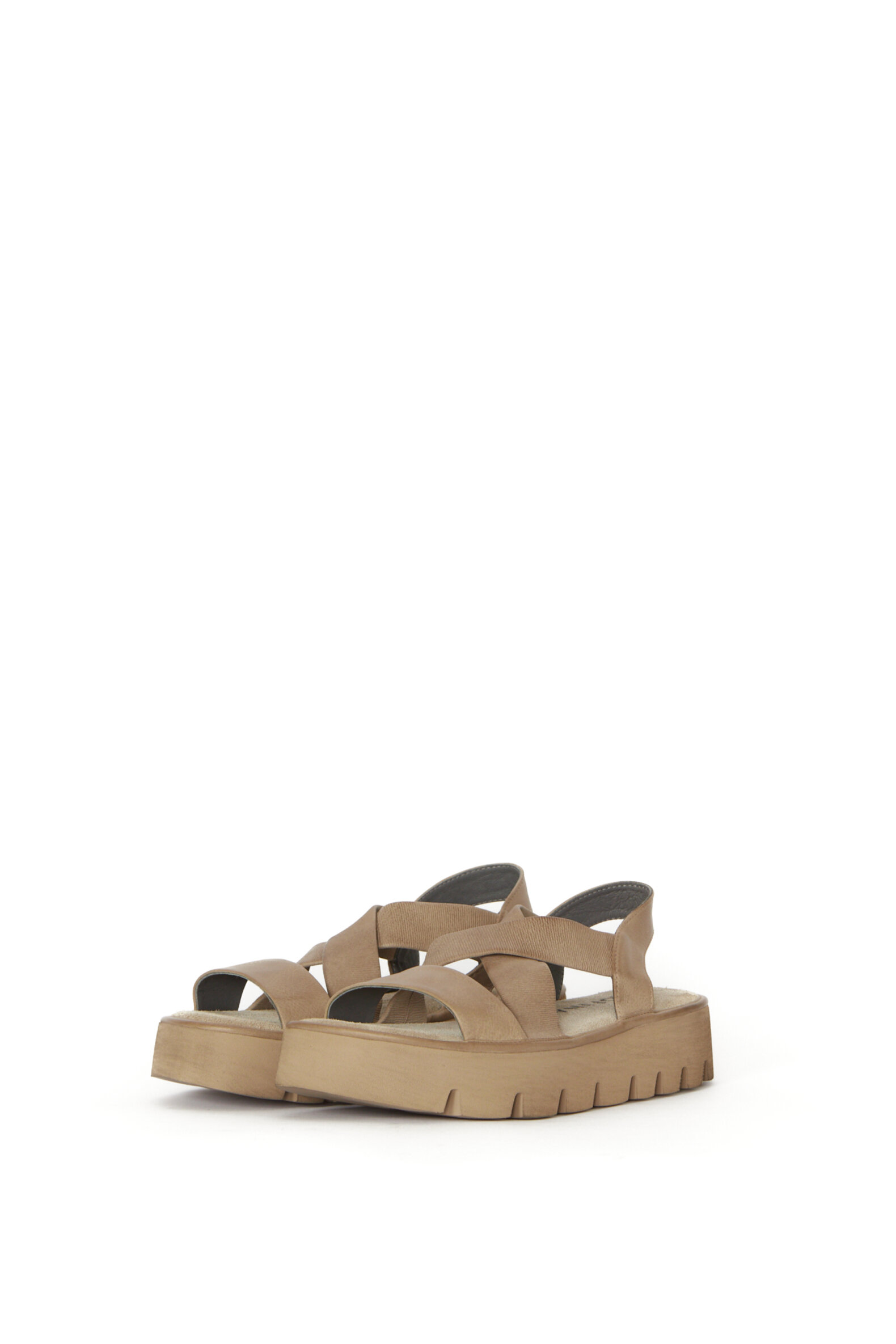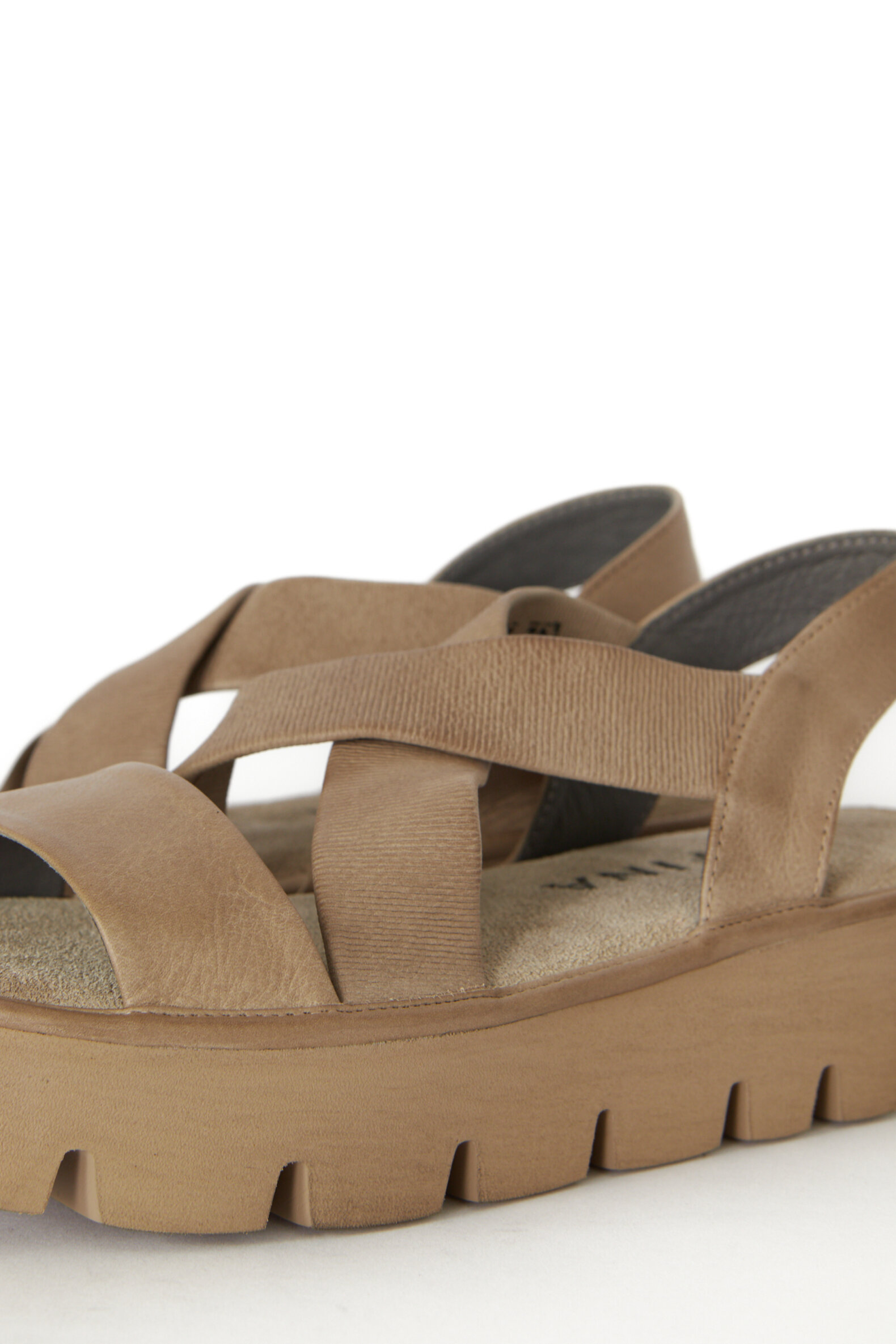 Håndlavet sandal i blødt, eksklusivt lysebrunt kalveskind og foret med svineskind, som giver en behagelig pasform omkring foden samt god åndbarhed. Krydsremmen over vristen er lavet af elastik betrukket med kalveskind for både at give et moderne, minimalistisk udtryk og samtidig sikre at sandalen er nem at tage af og på. Den lette, fleksible sål har et elegant udtryk, som samtidig sikrer god komfort. En tidløs sandal der forener håndværk, kvalitet og funktionalitet. Denne sandal er lidt stor i størrelsen.
