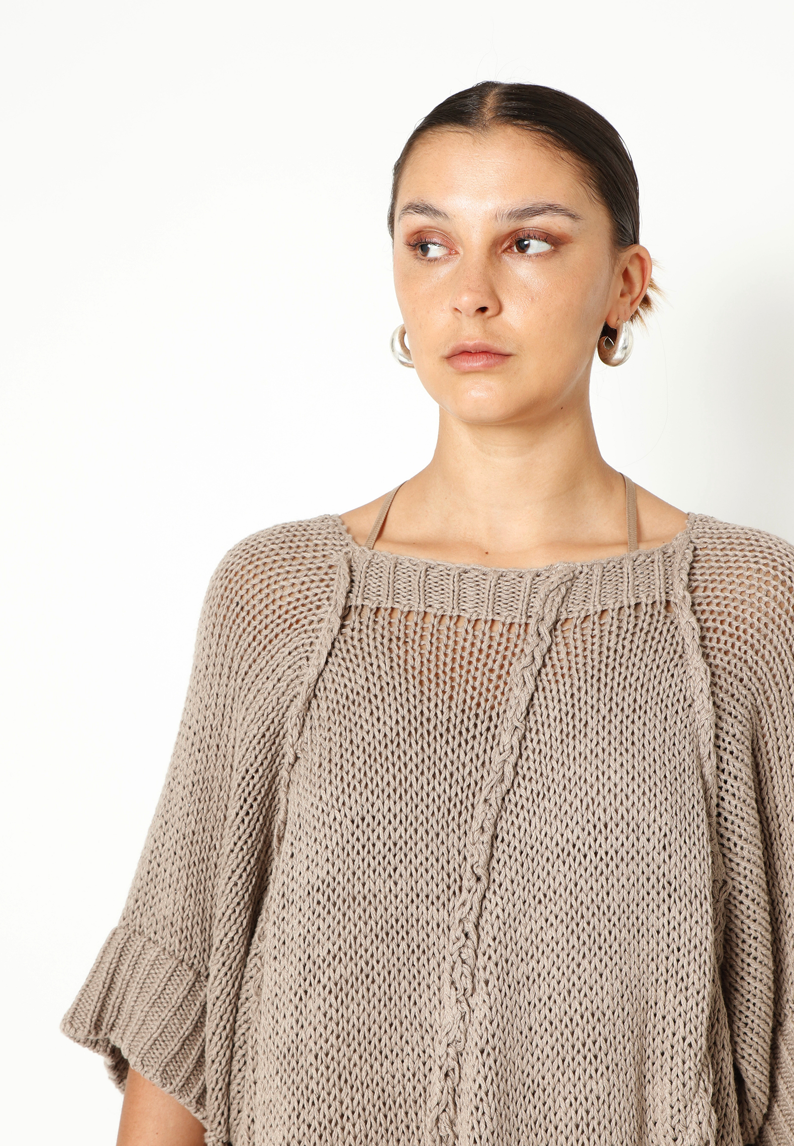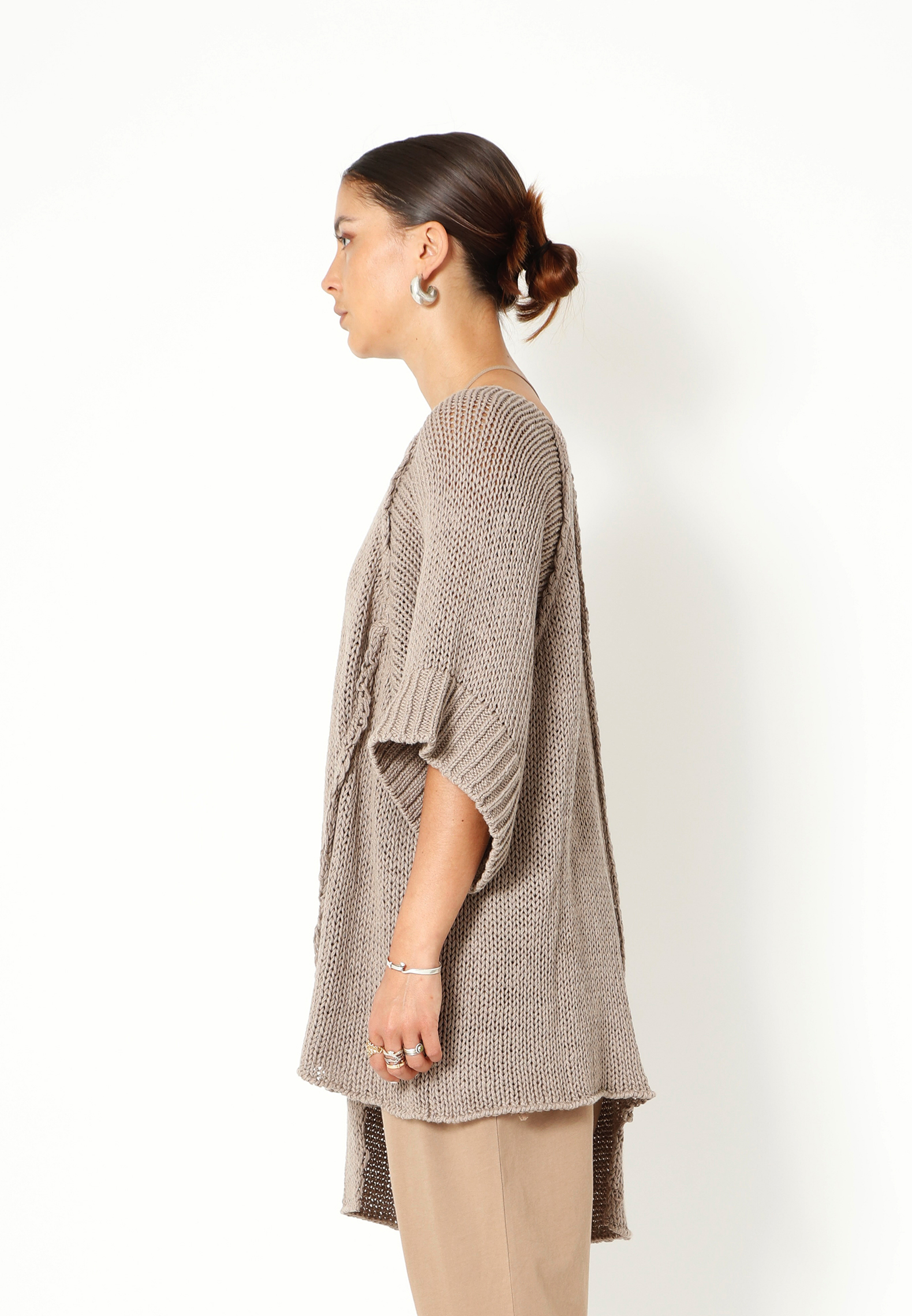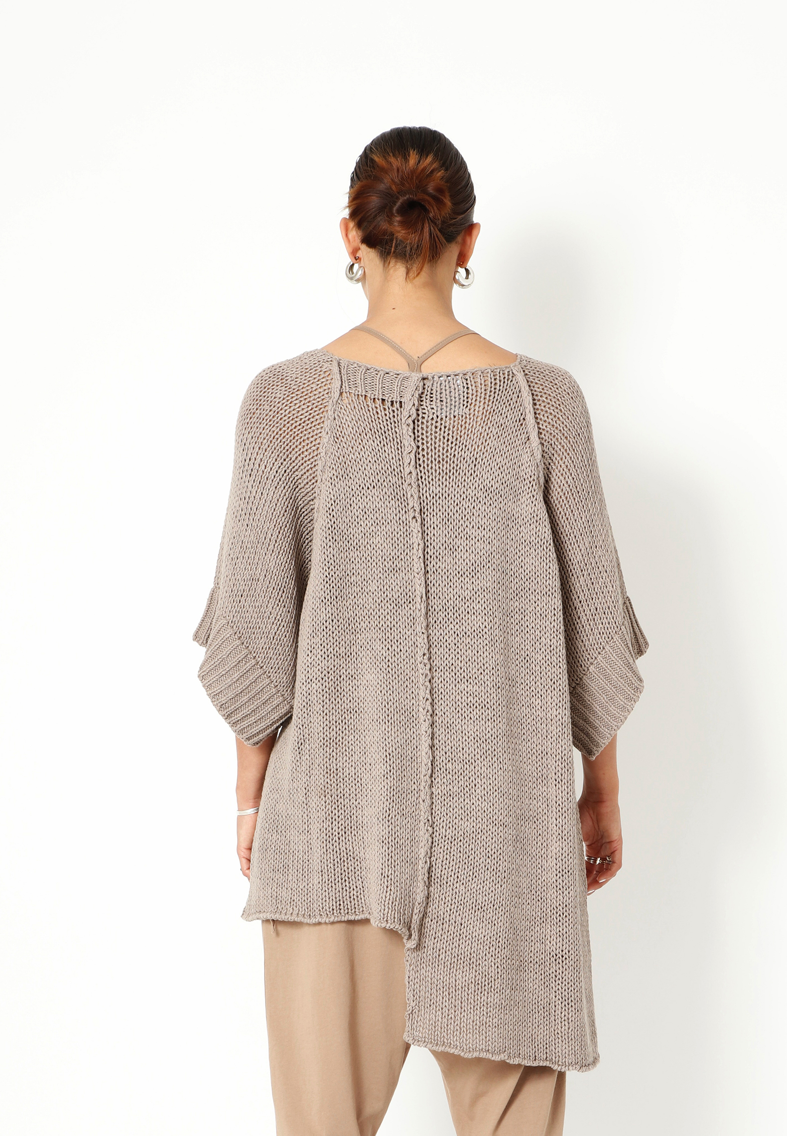 Oversized loose knitted blouse made in a soft mix of cotton and linen. The blouse has wide rib by the sleeve-ends and an asymmetrical cut. Comes in more colors.