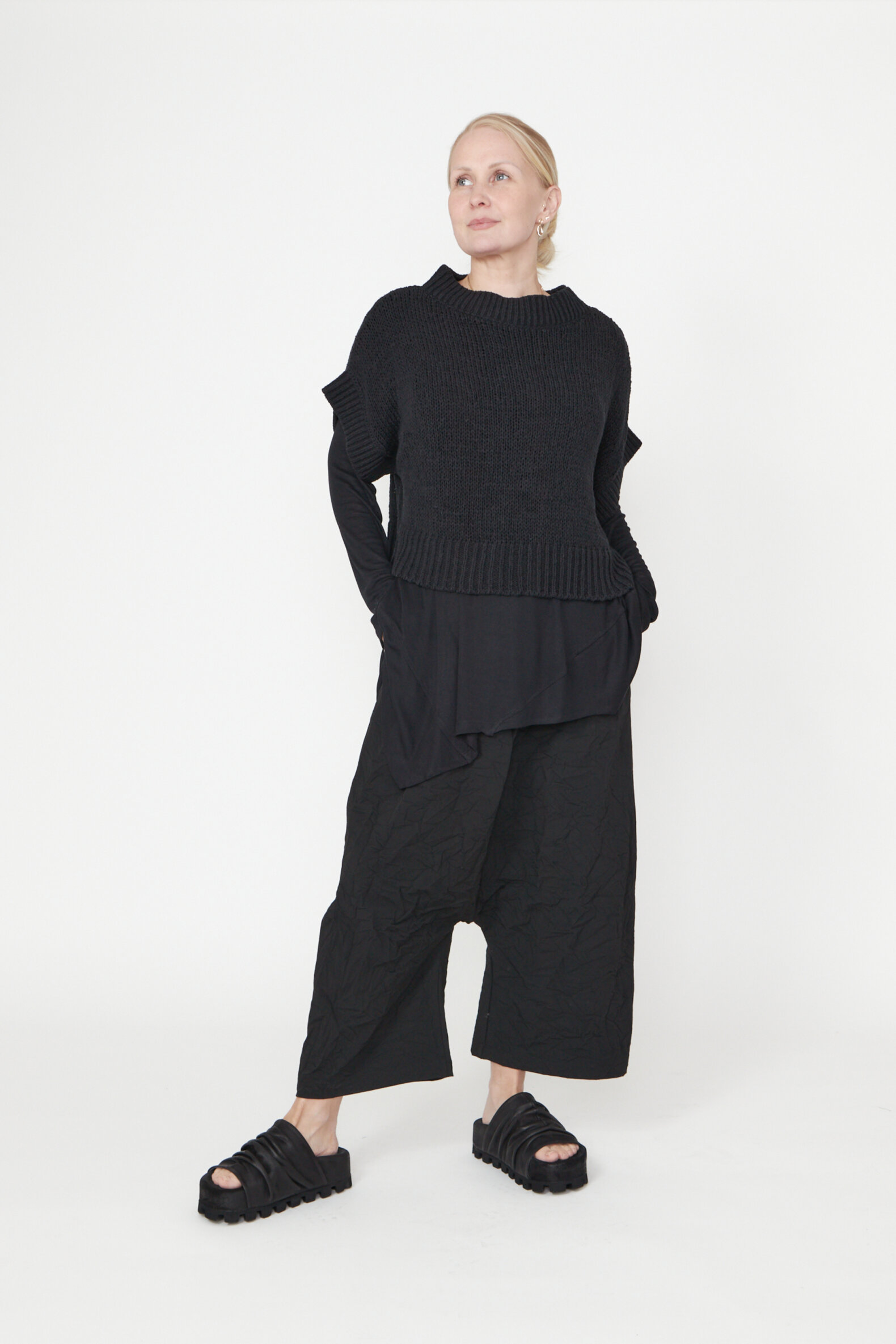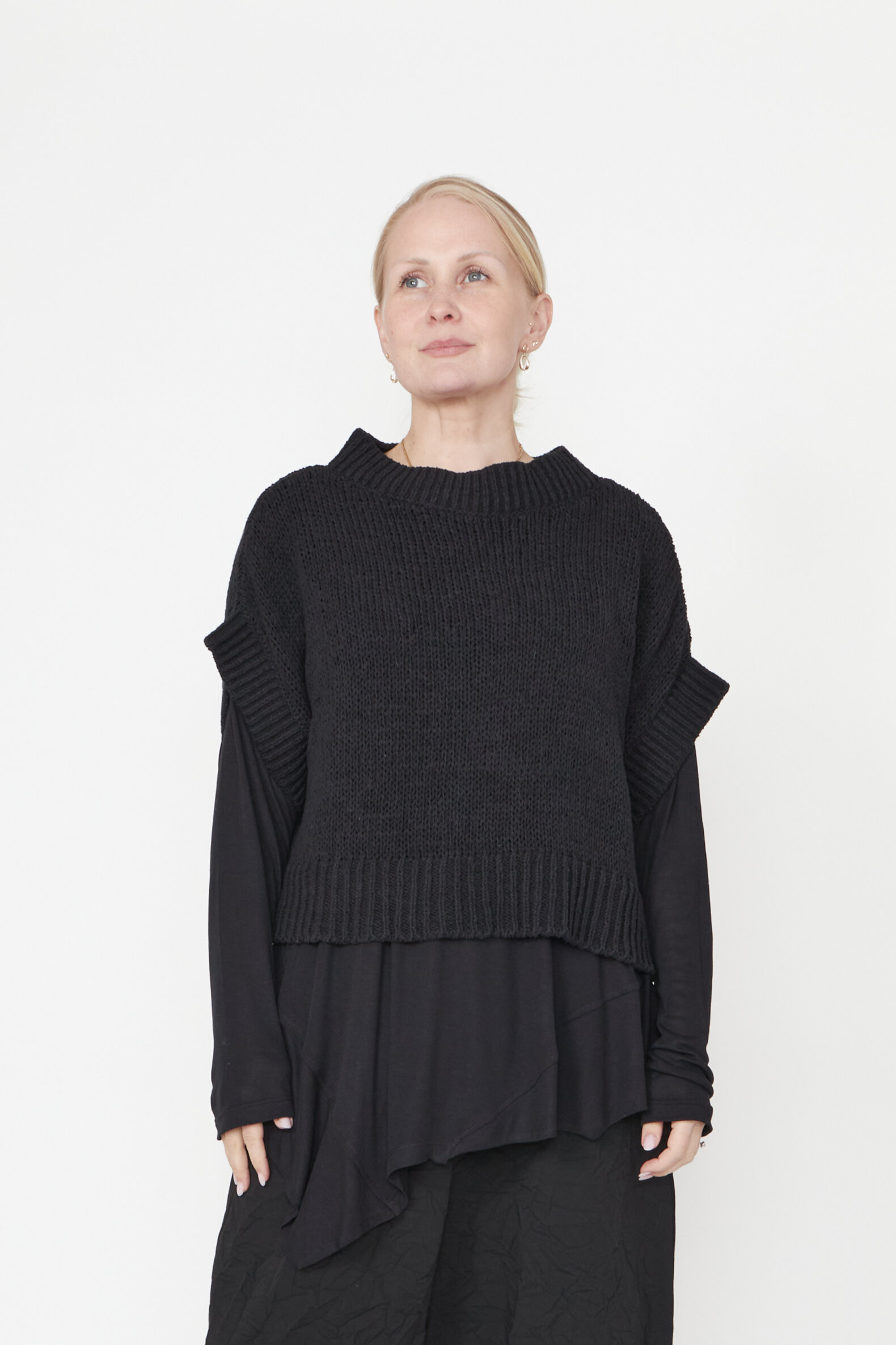 Oversized løst-strikket bluse med brede ribkanter og bådudskæring. Blusen er lavet i en lækker blød bomuldsblanding. Findes i flere farver.
