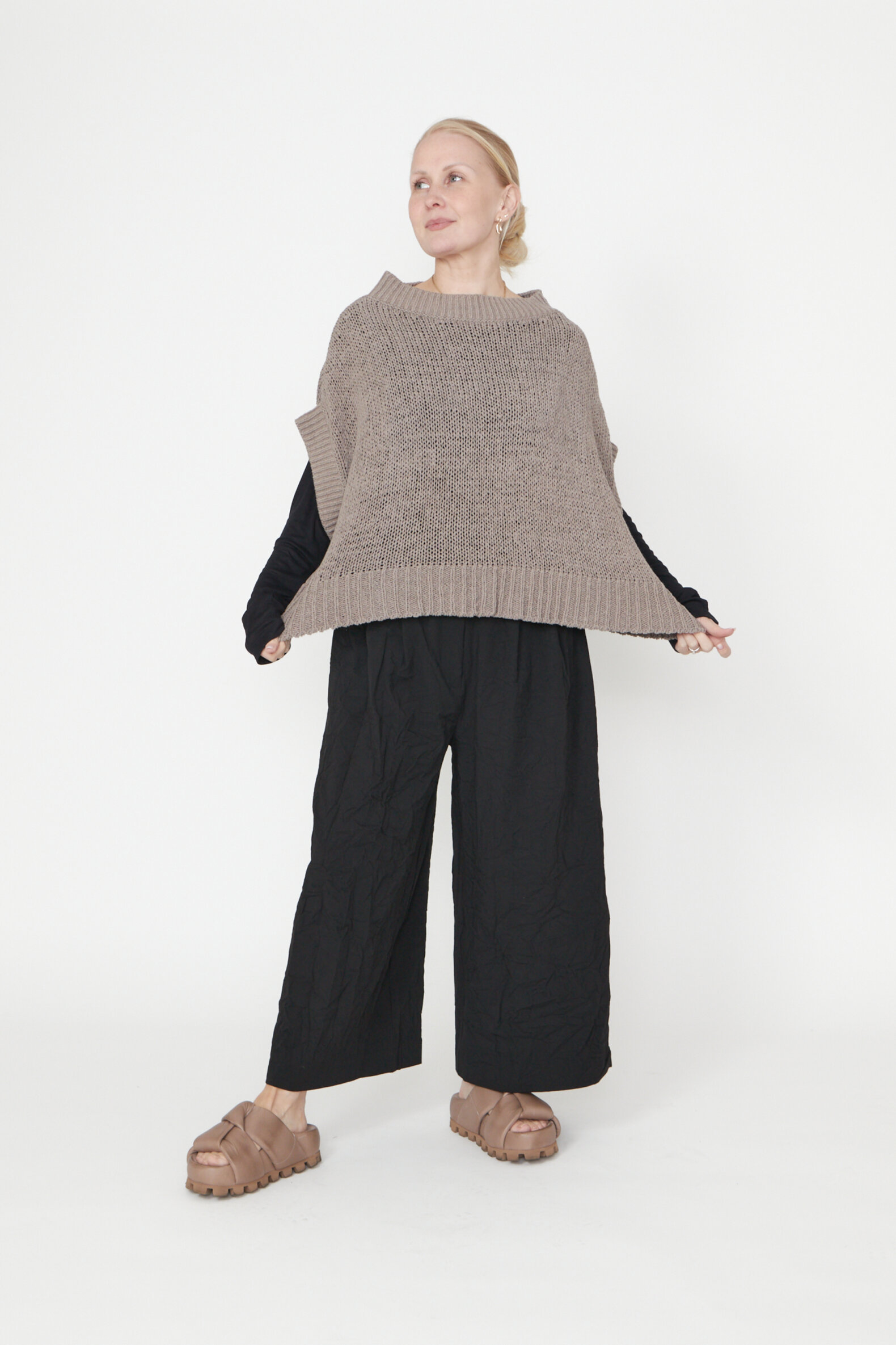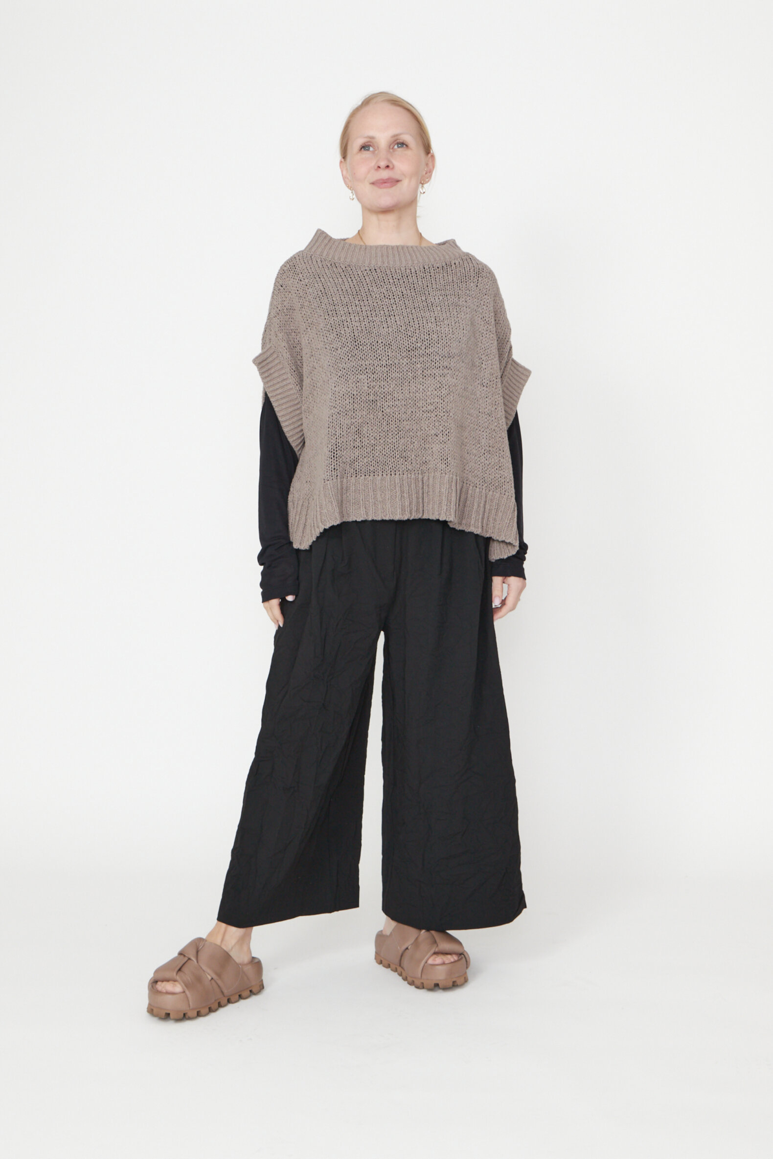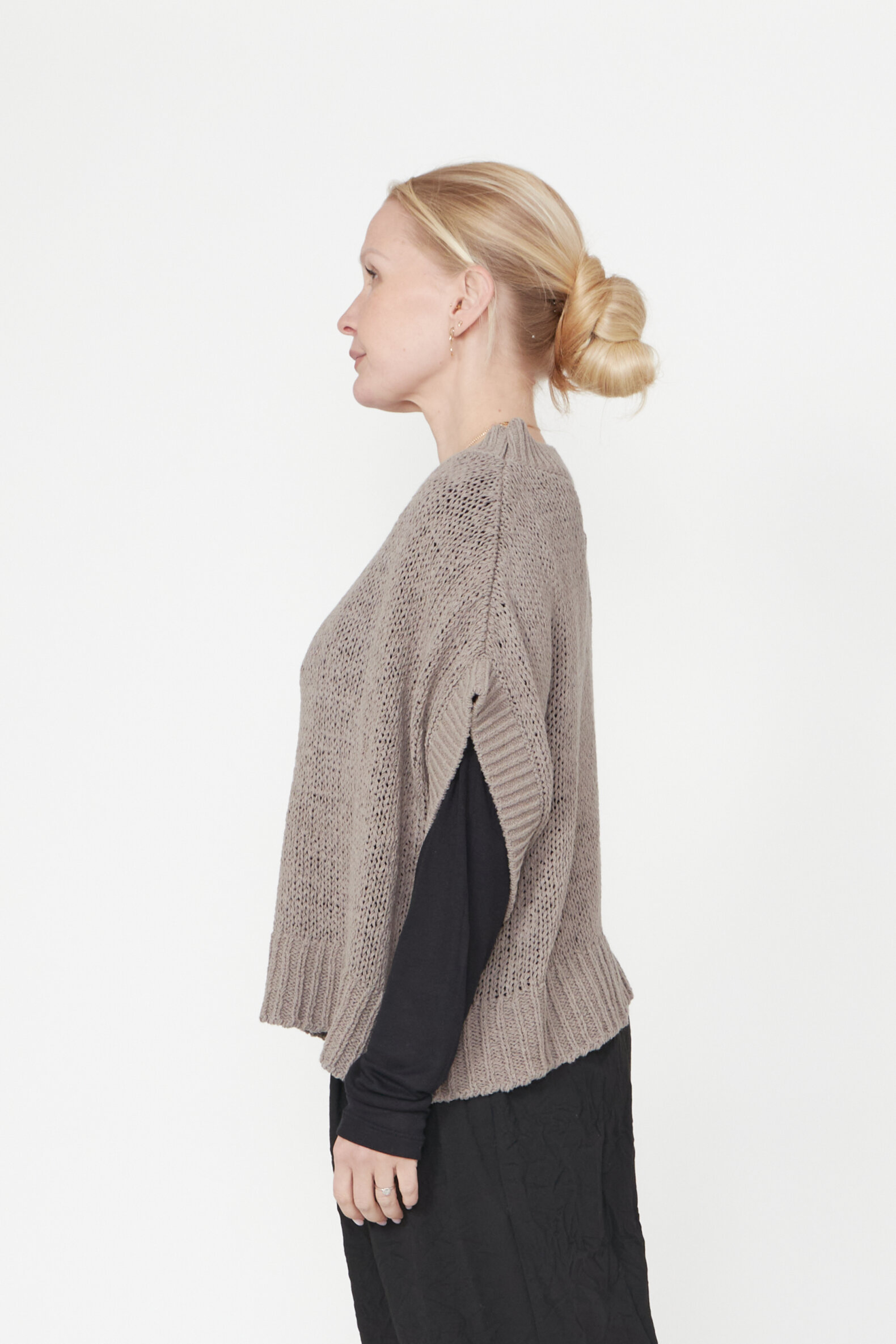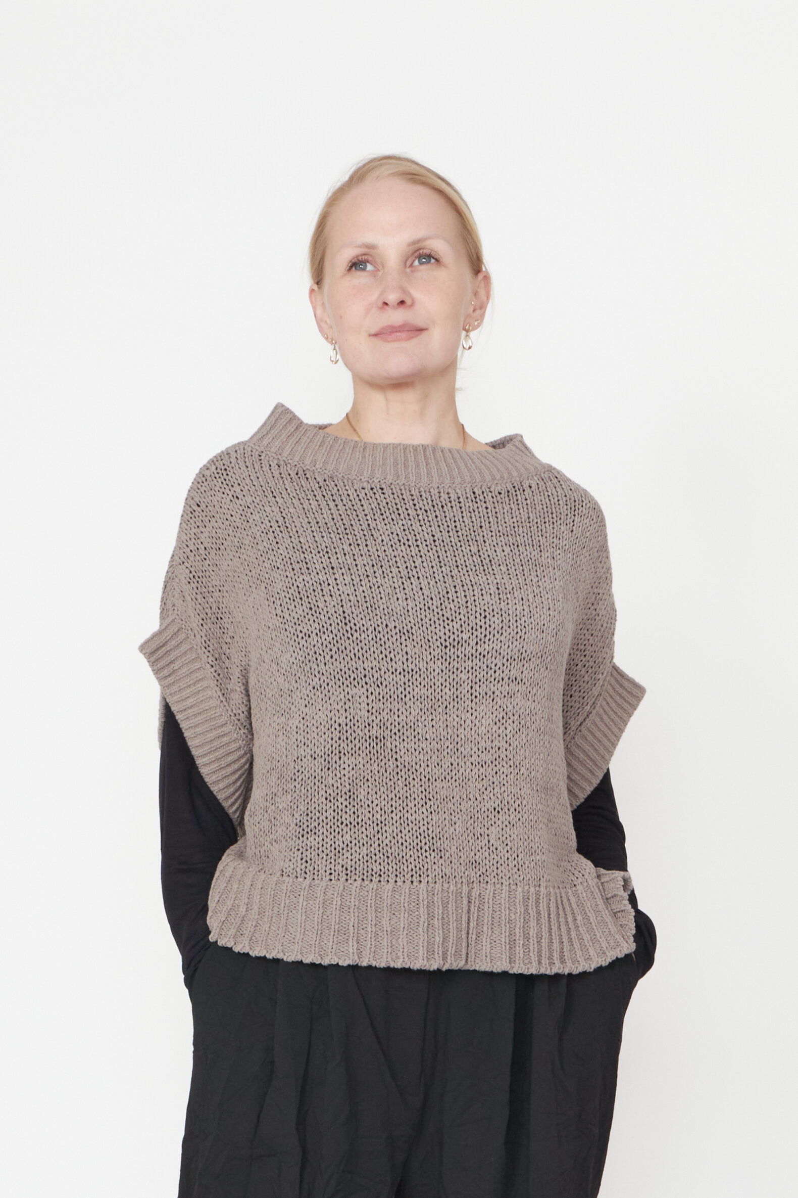 Oversized løst-strikket bluse med brede ribkanter og bådudskæring. Blusen er lavet i en lækker blød bomuldsblanding. Findes i flere farver.