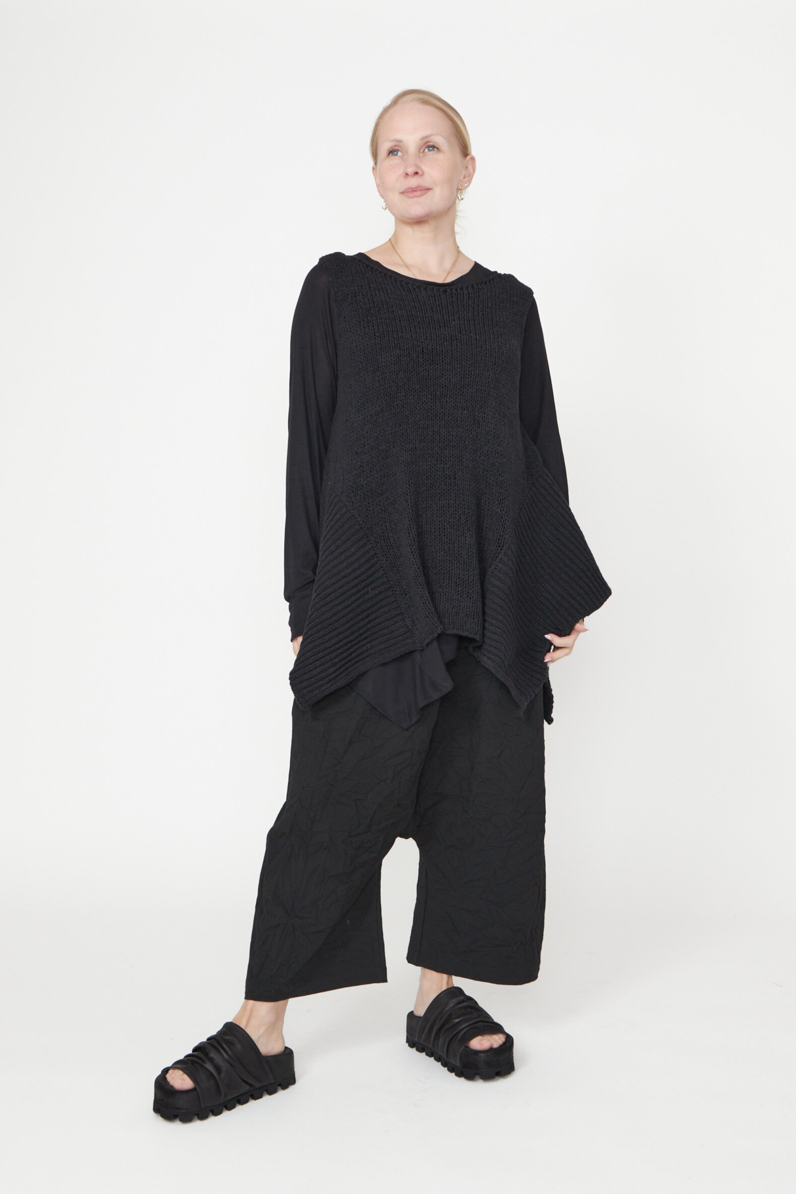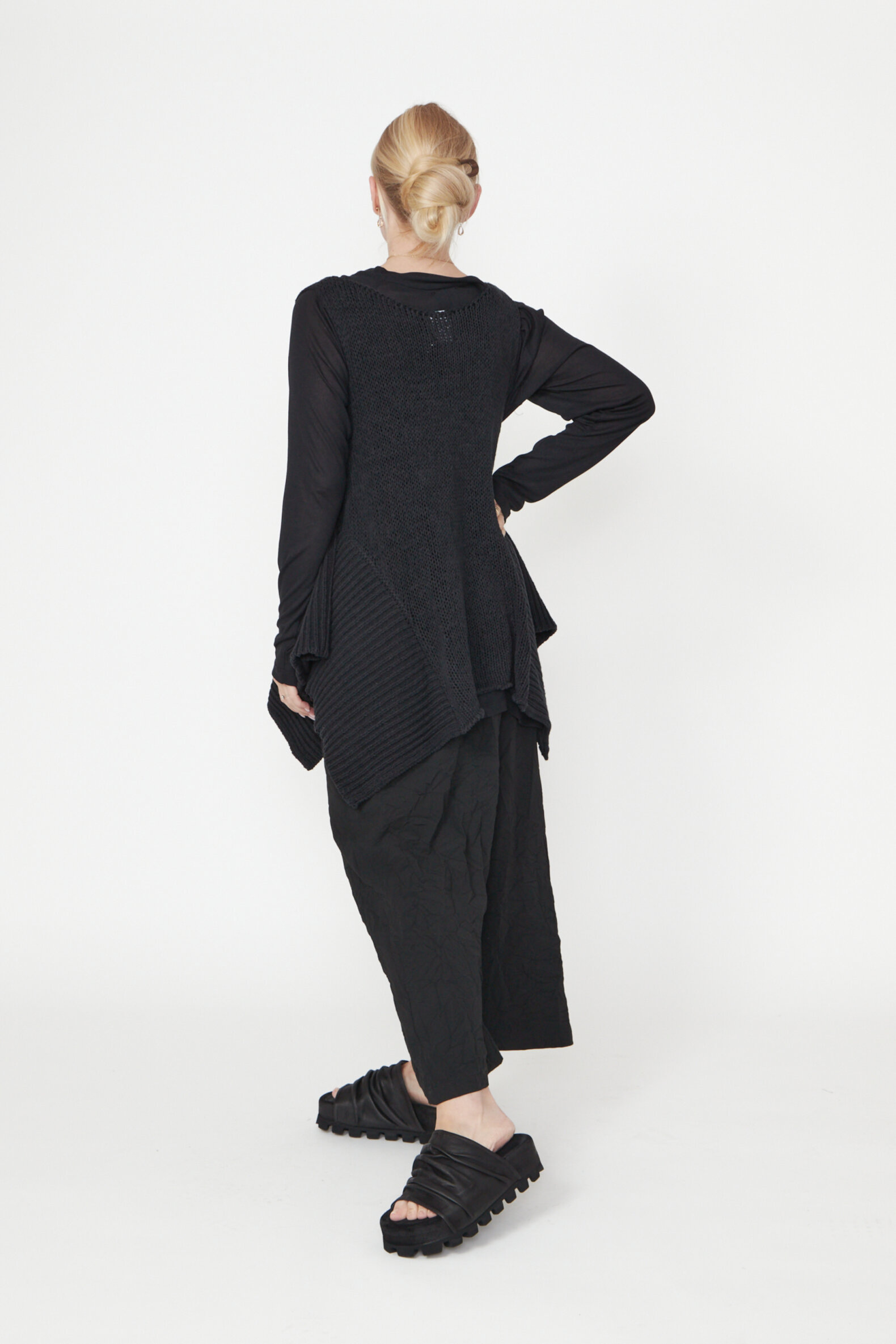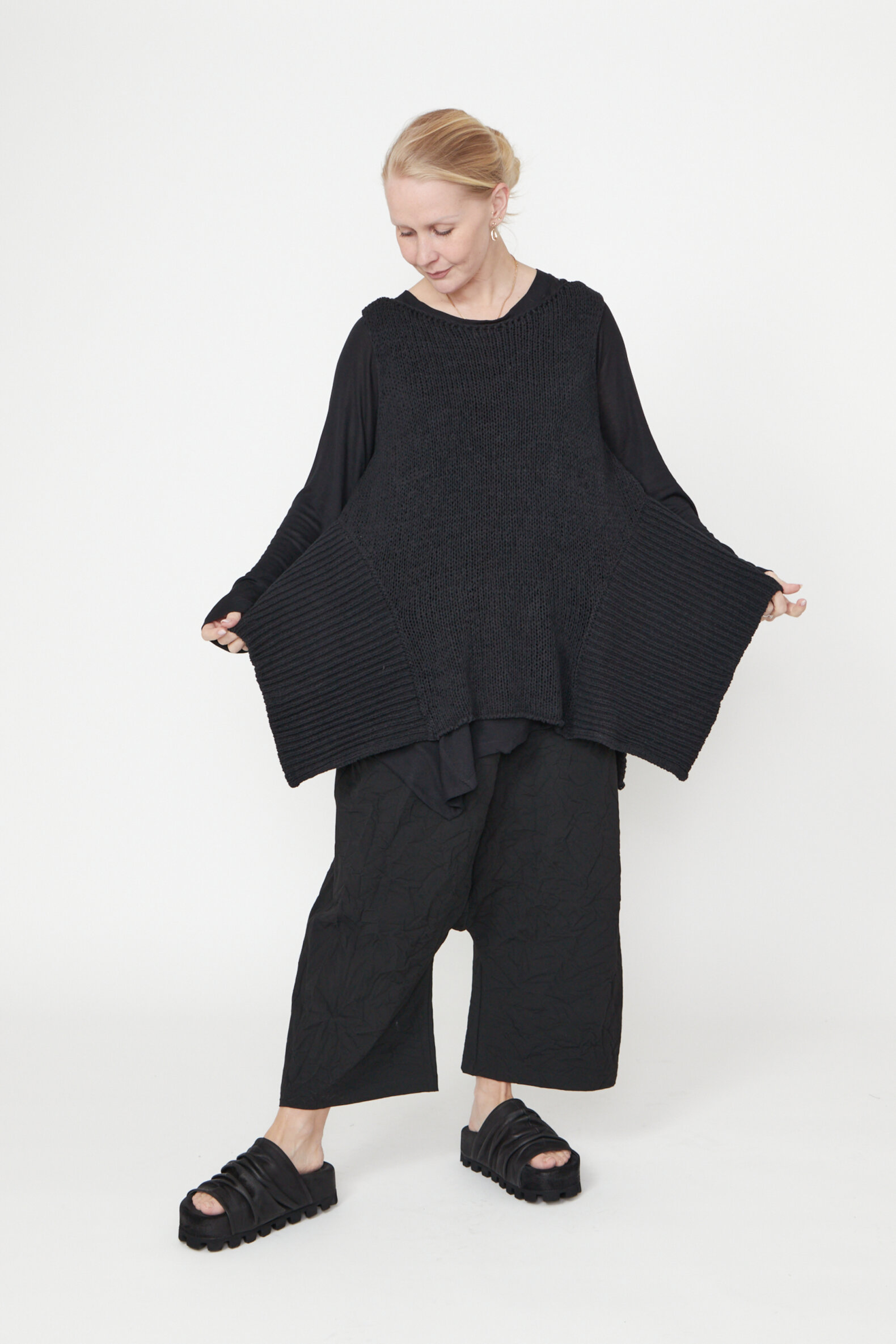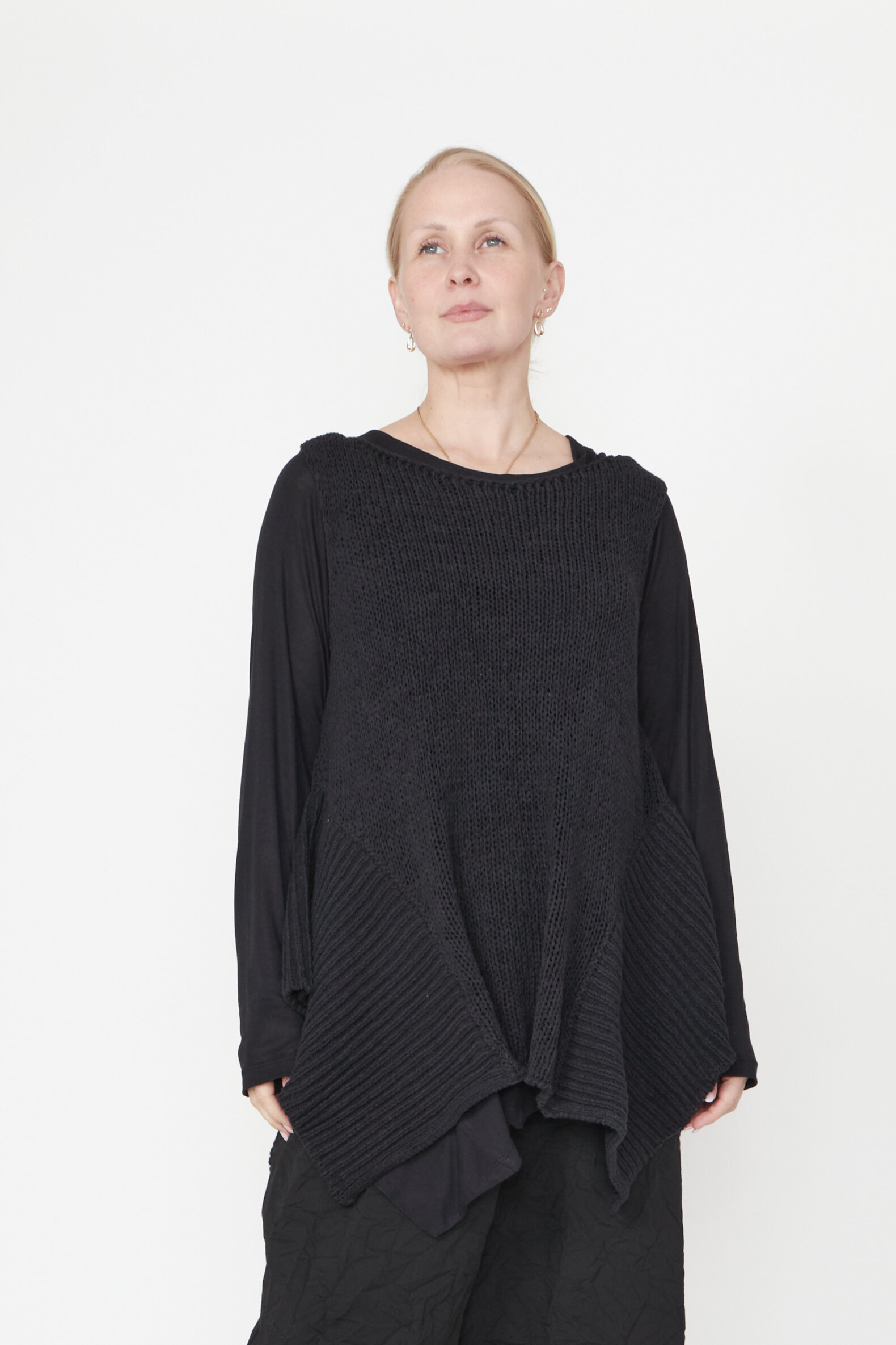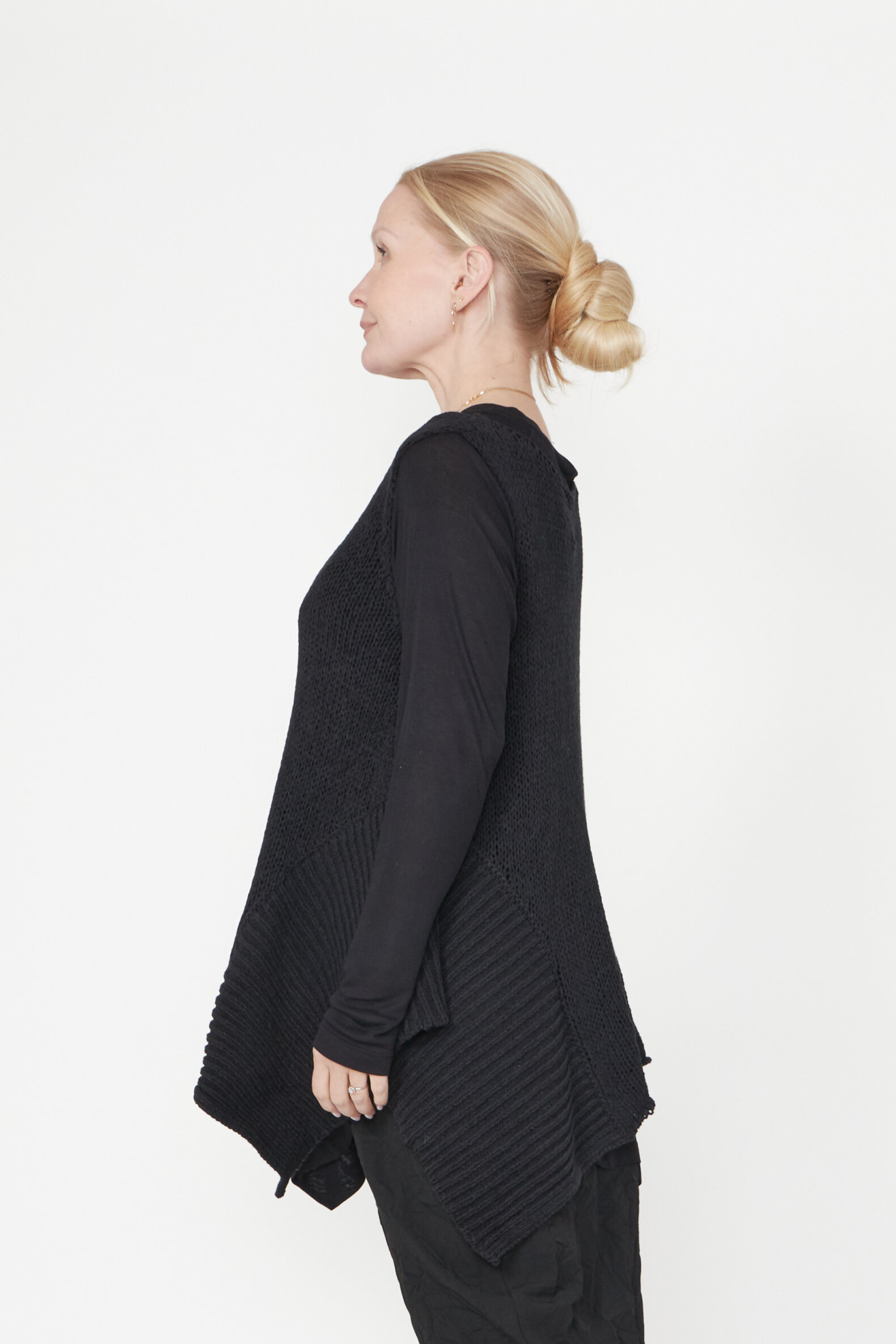 Ærmeløs løst-strikket top lavet i en lækker blød bomuldsblanding. Toppen har brede ribkanter forneden. Findes i flere farver.