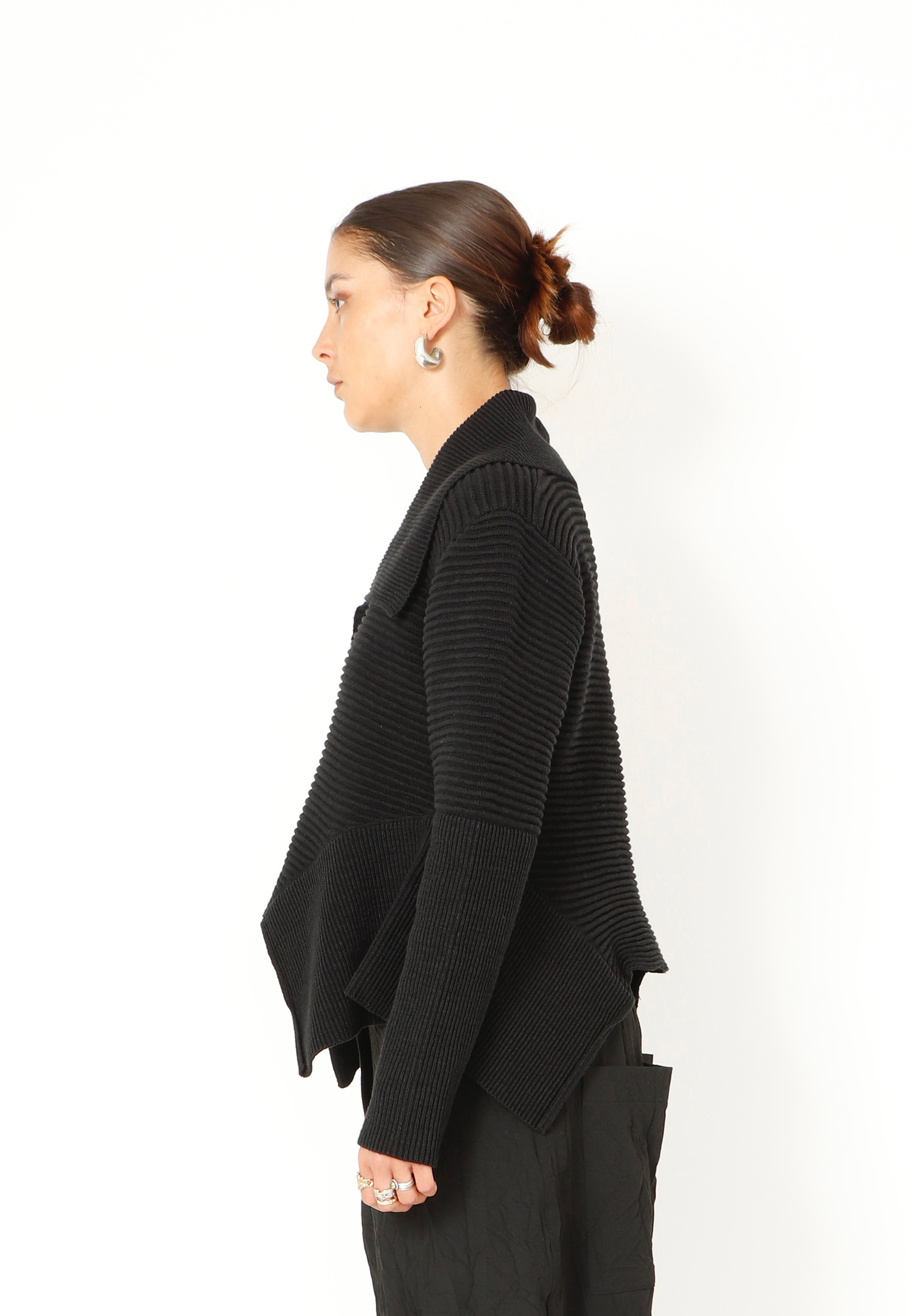 Strikbluse med krave og knapper. Blusen har lange ærmer og er asymmetrisk forneden. Blusen er lavet i en lækker blød blanding af bomuld og hør. Findes i flere farver.
