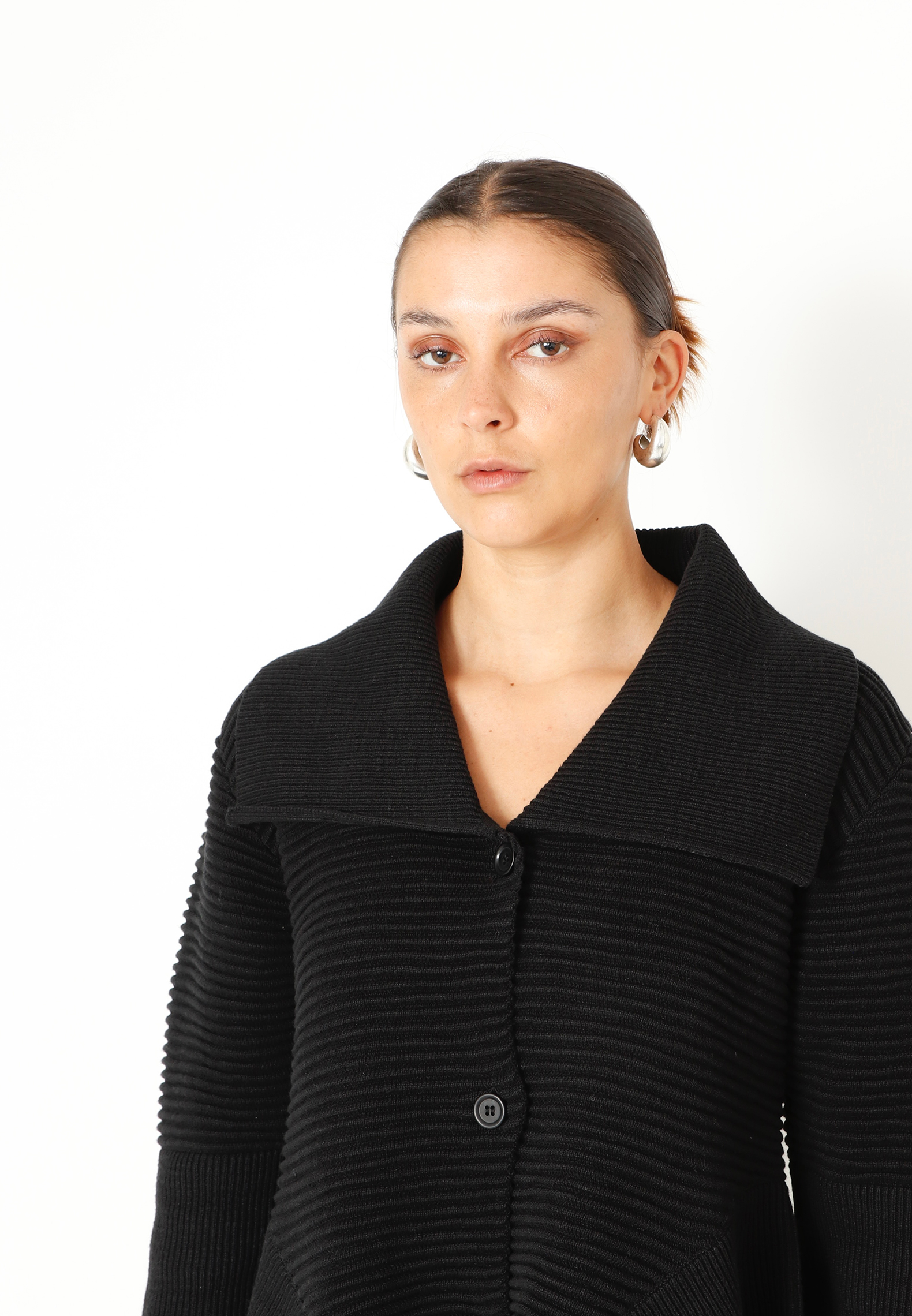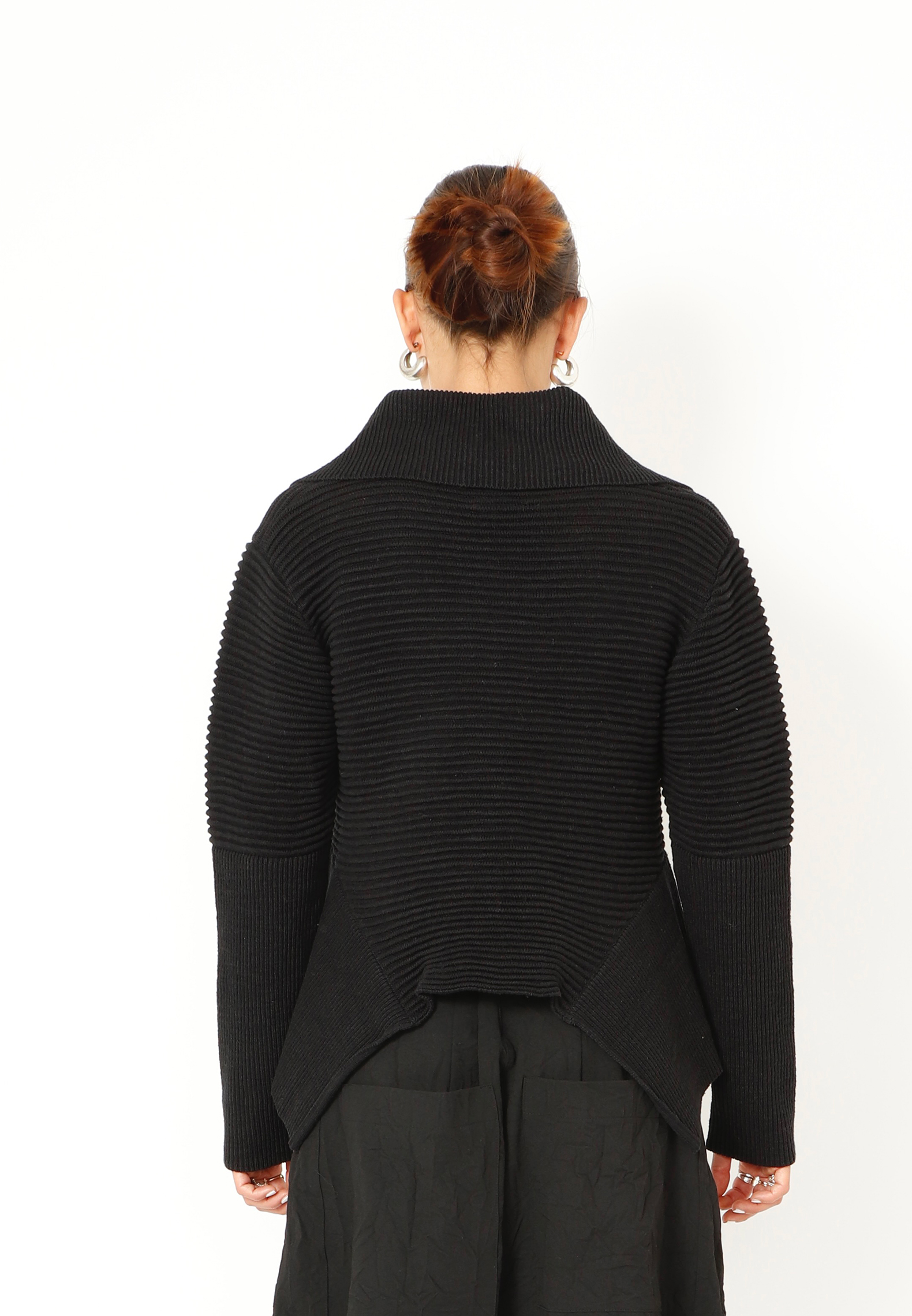 Strikbluse med krave og knapper