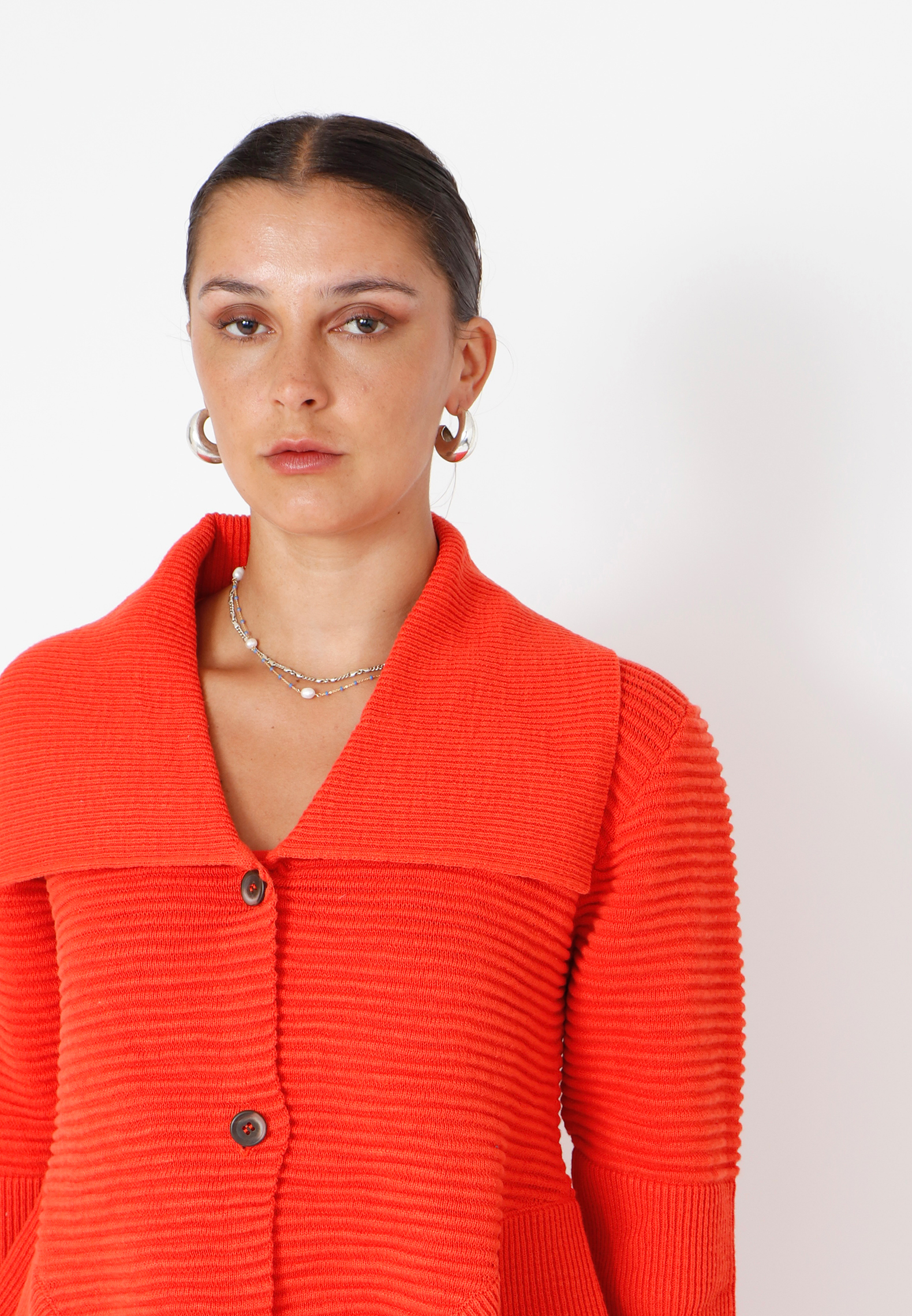 Strikbluse med krave og knapper