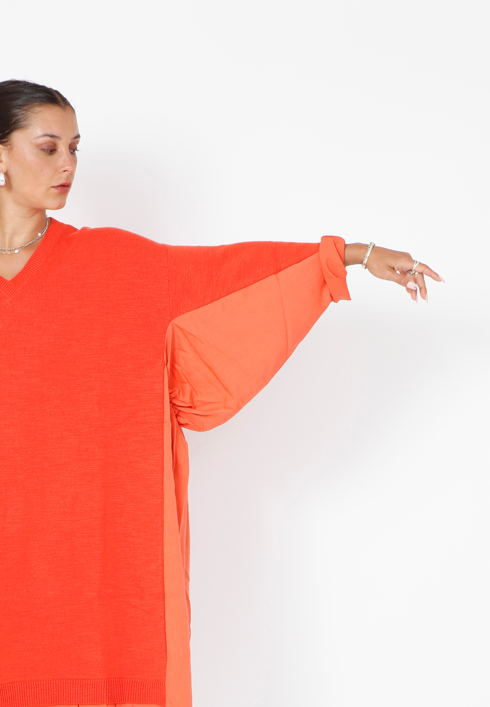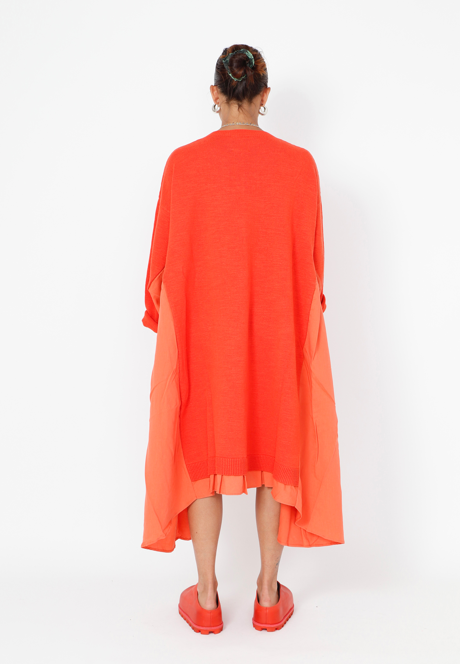 Oversized strikkjole med v-hals og brede ærmer med rynk-effekt lavet i en lækker blanding af bomuld og hør. Findes i flere farver.
