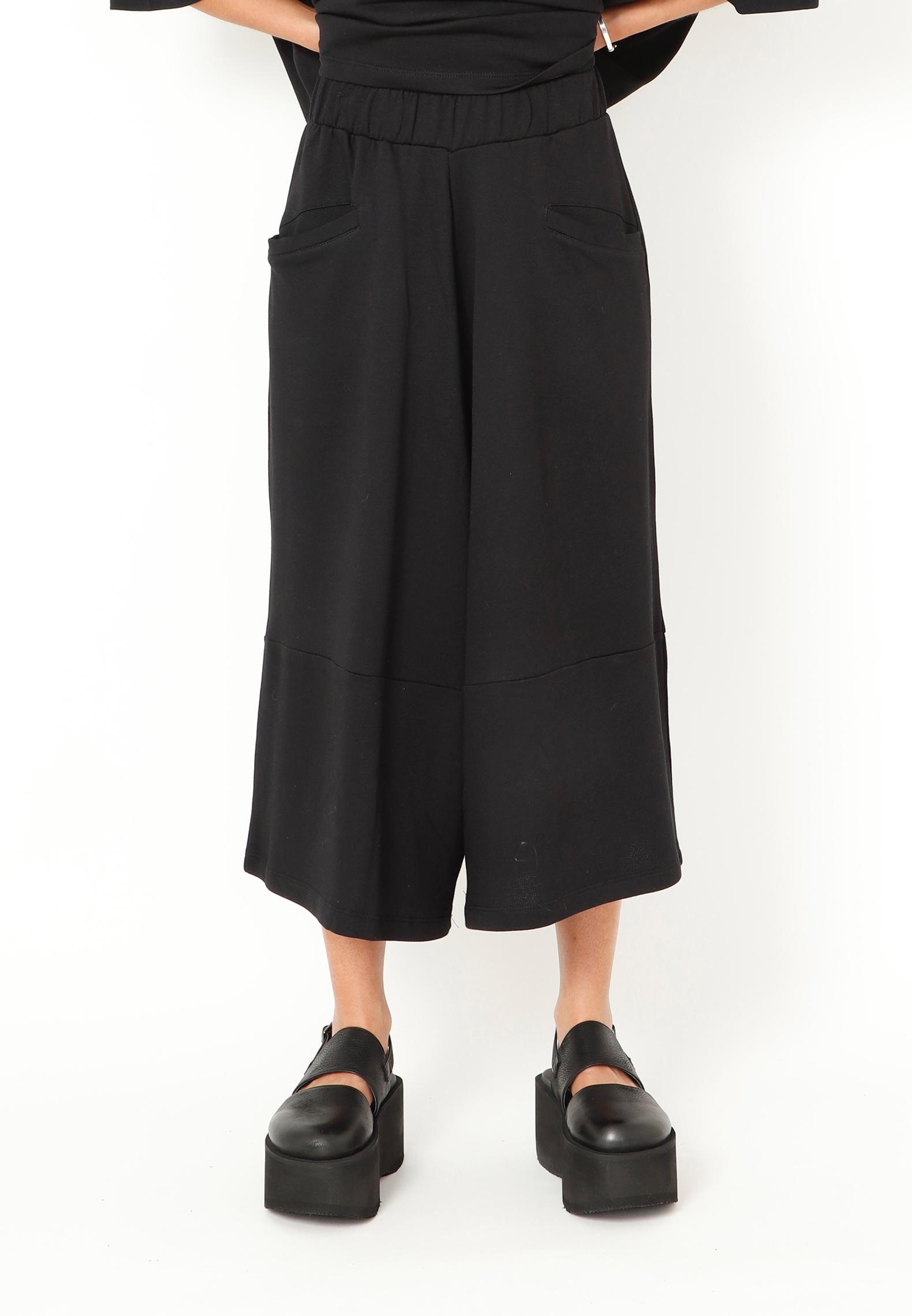 3/4 trousers with wide legs, a wide elastic waistband, and pockets. Made in an exclusive, soft sweatshirt fabric with a modern and casual look. All Sort Aarhus clothing is produced in Portugal from carefully selected local materials and qualities, with a focus on design and fit.