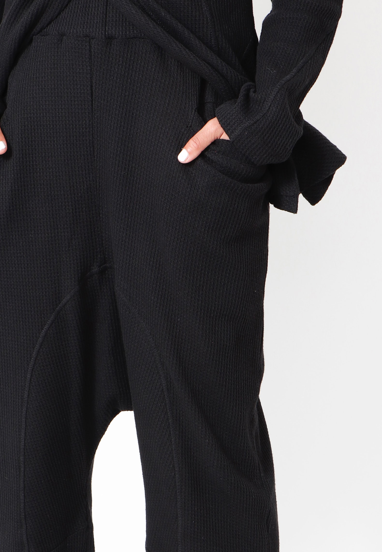 Baggy bukser i bomuld/hør blanding med struktur. Kommer med lommer både for og bag, og et bredt elastikbånd i taljen. Bukserne er 3/4 længde.