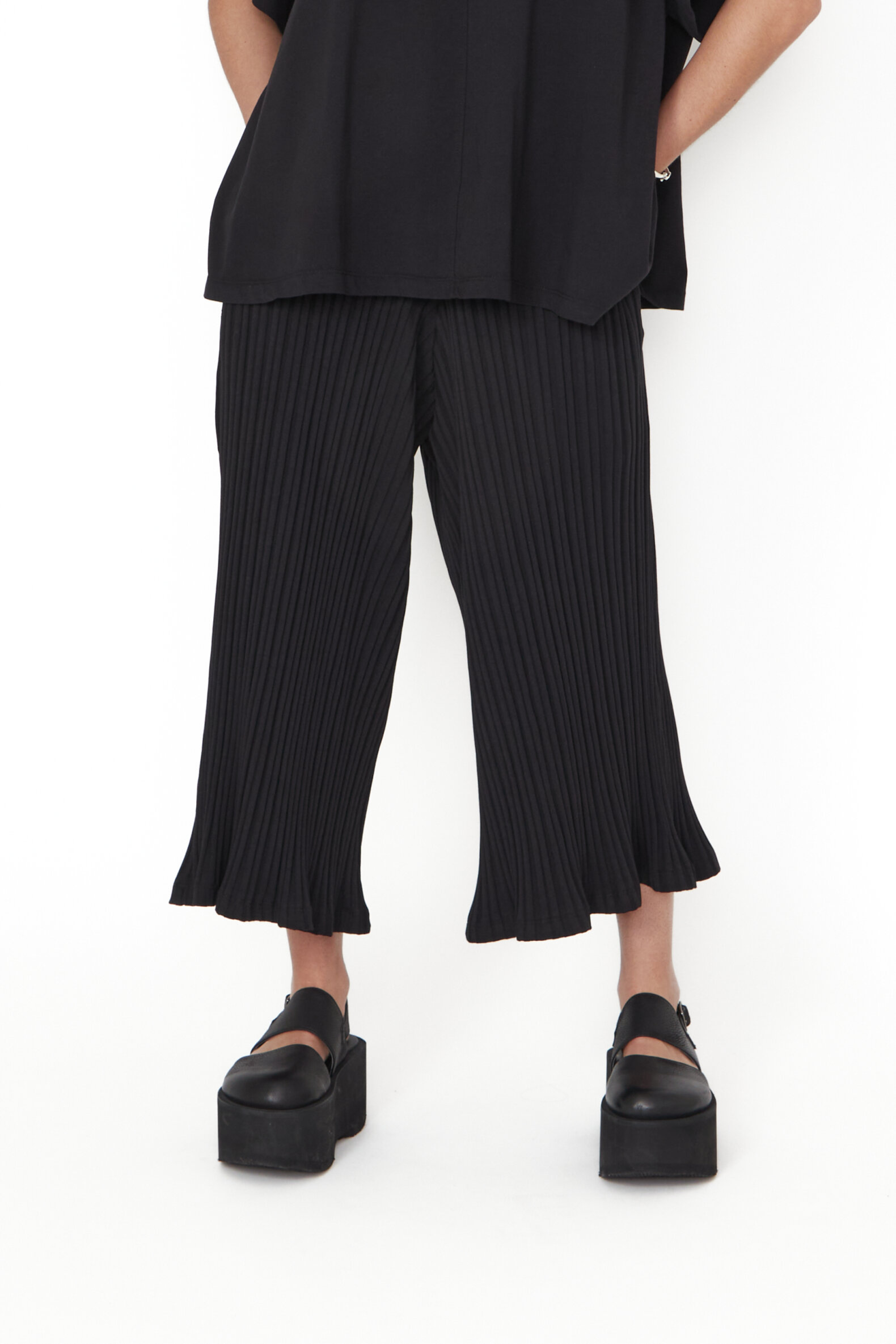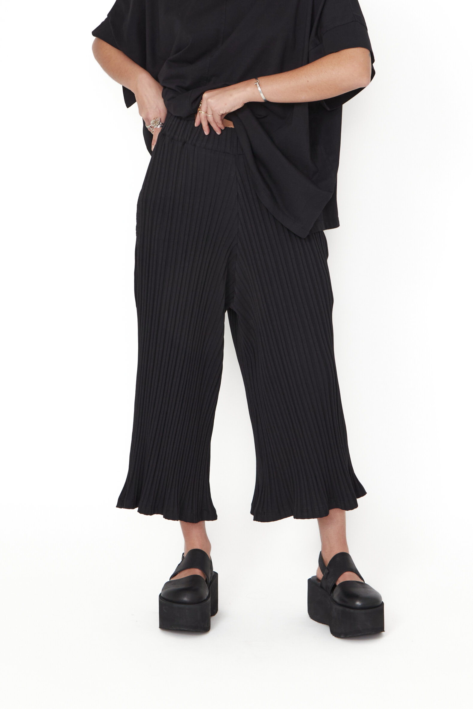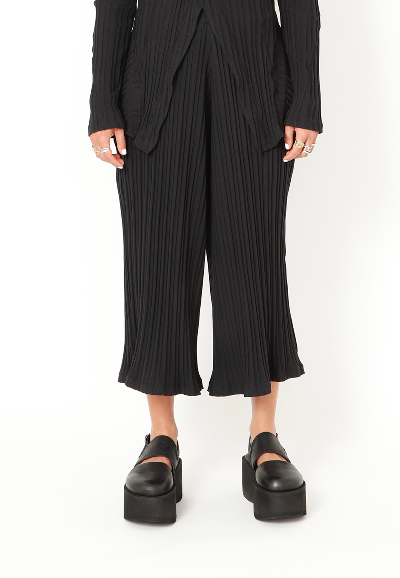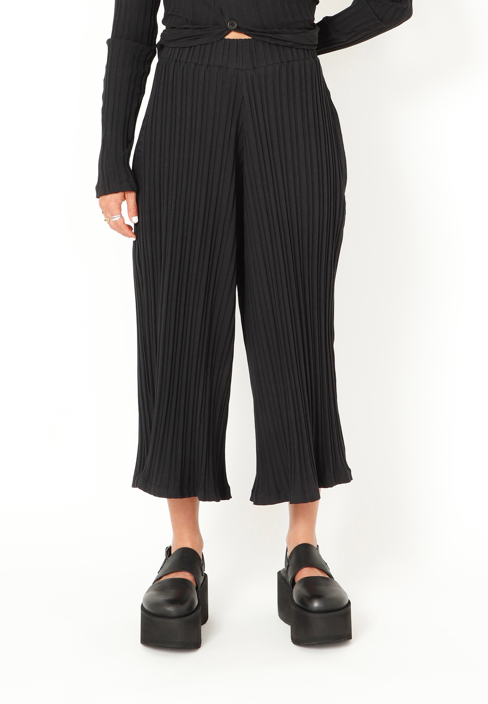 3/4 bukser med vide ben, bred elastik i taljen og lommer. Lavet i en eksklusiv ribkvalitet af økologisk bomuld med et moderne og casual look. Alt Sort Aarhus tøj er produceret i Portugal af nøje udvalgte lokale materialer og kvaliteter med fokus på design og pasform.