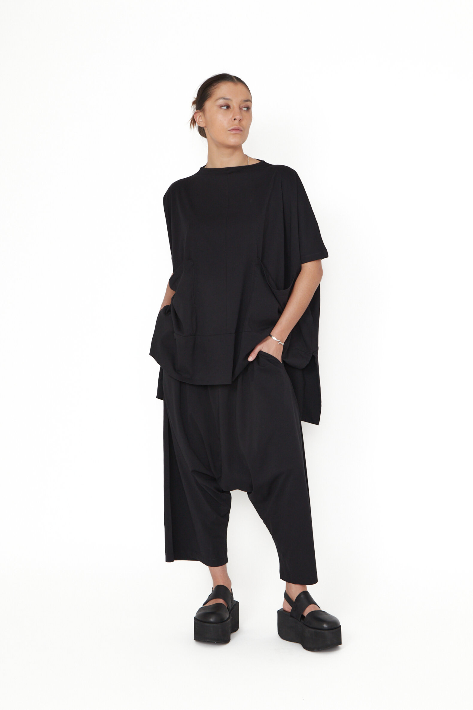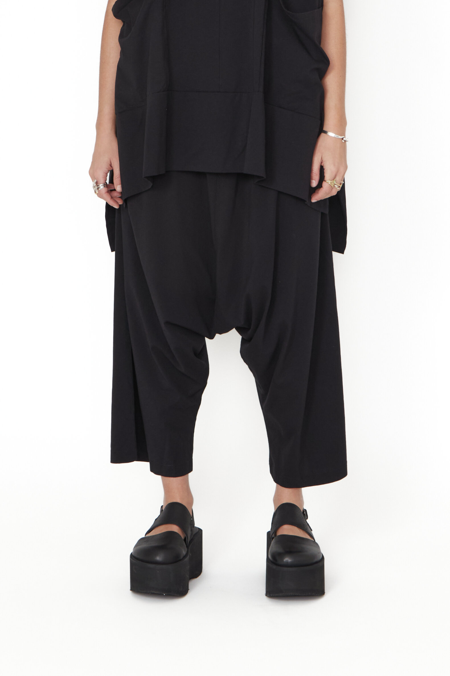 Ekstra baggy brede bukser i 3/4 længde med elastik i taljen og lommer i siderne, Lavet i 100% økologisk bomuld.