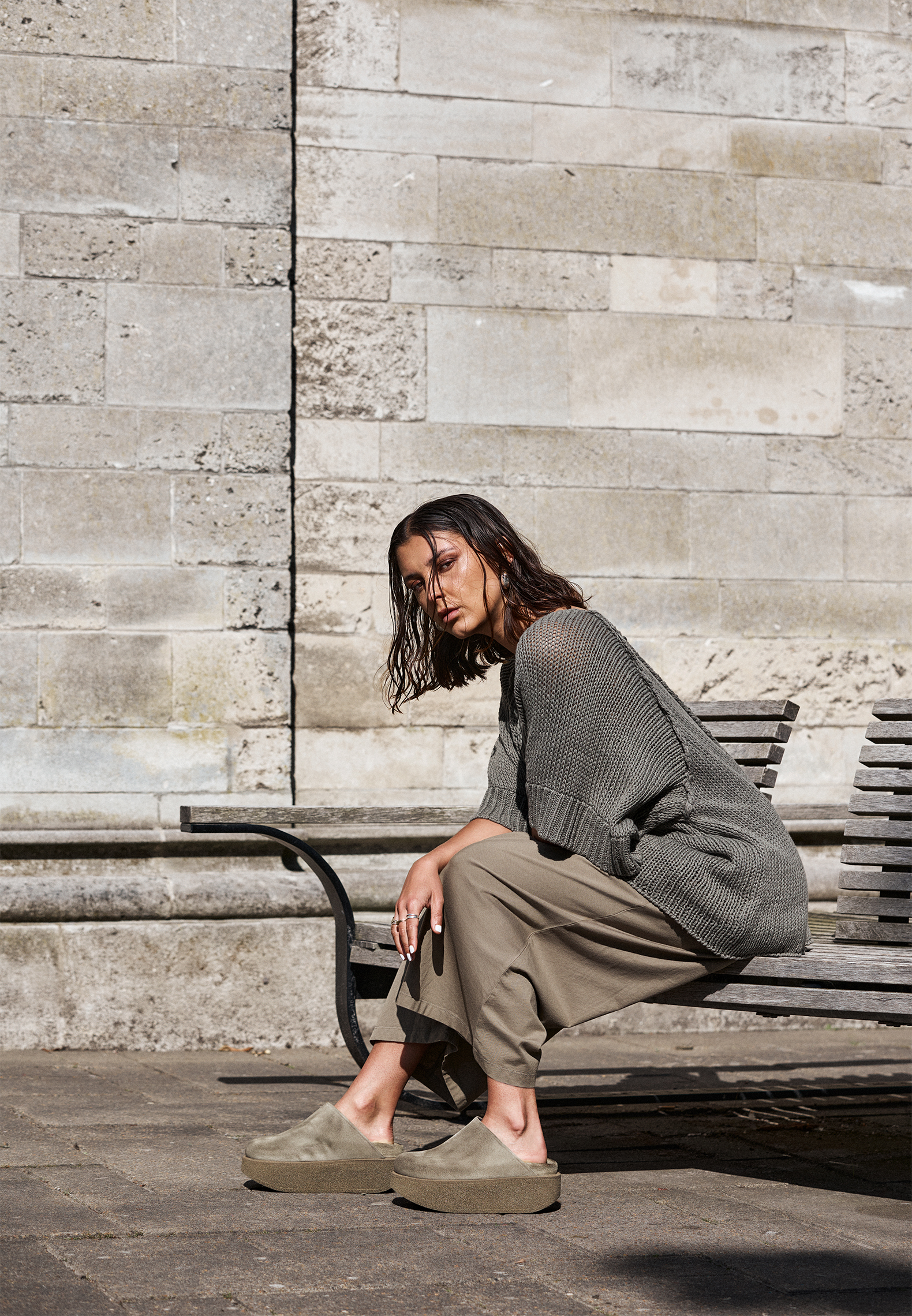 Vask skånsomt ved 30°C, vrangen ud, sammen med lignende farver. Undgå blegemidler, og stryg ved lav varme. Form tøjet mens det er fugtigt, og tør det fladt.