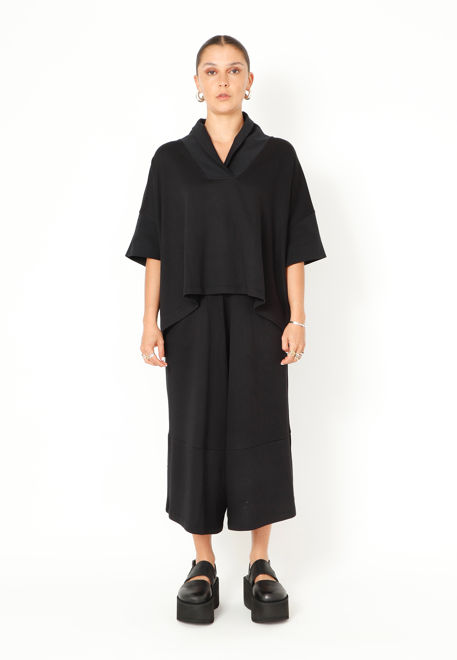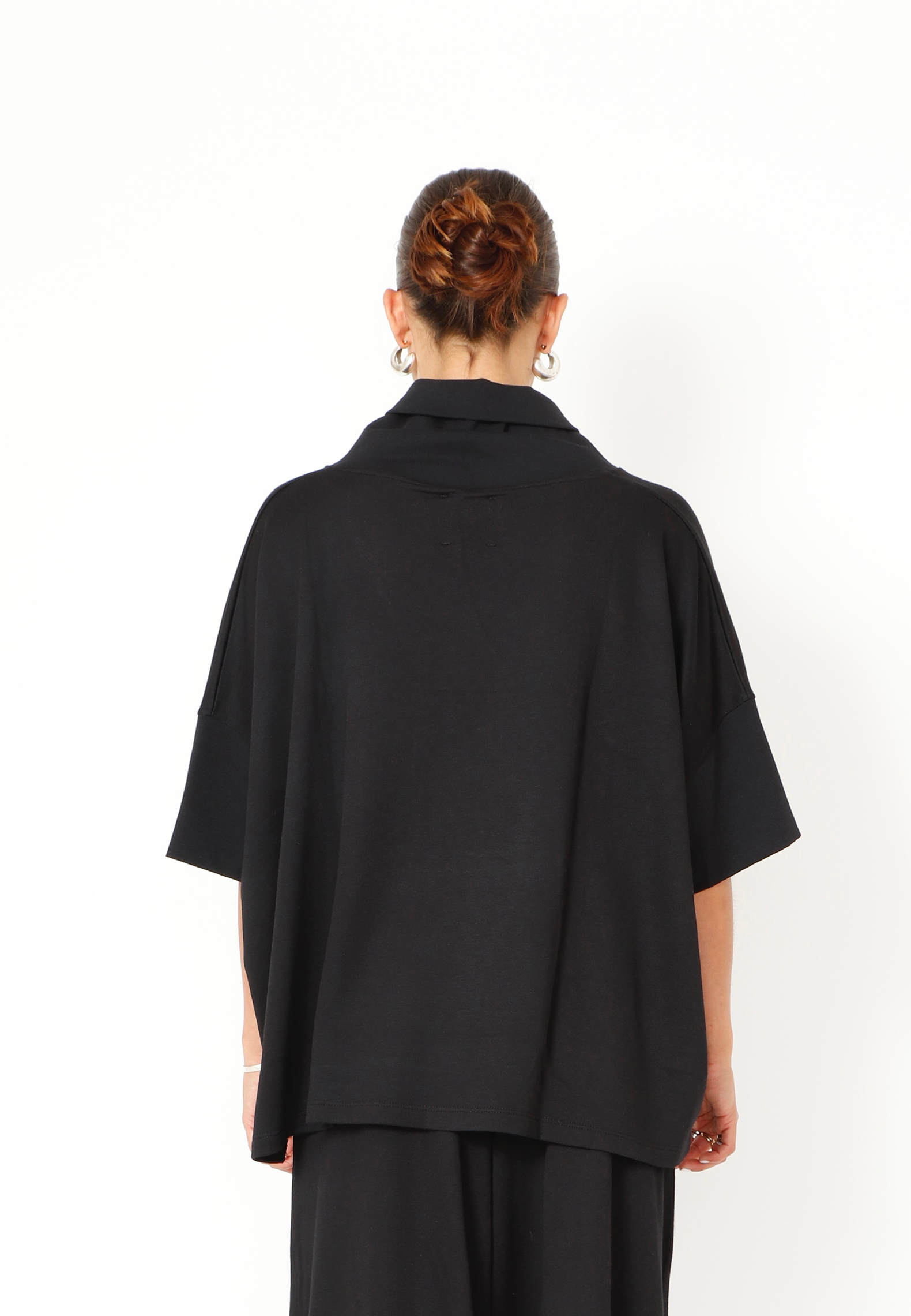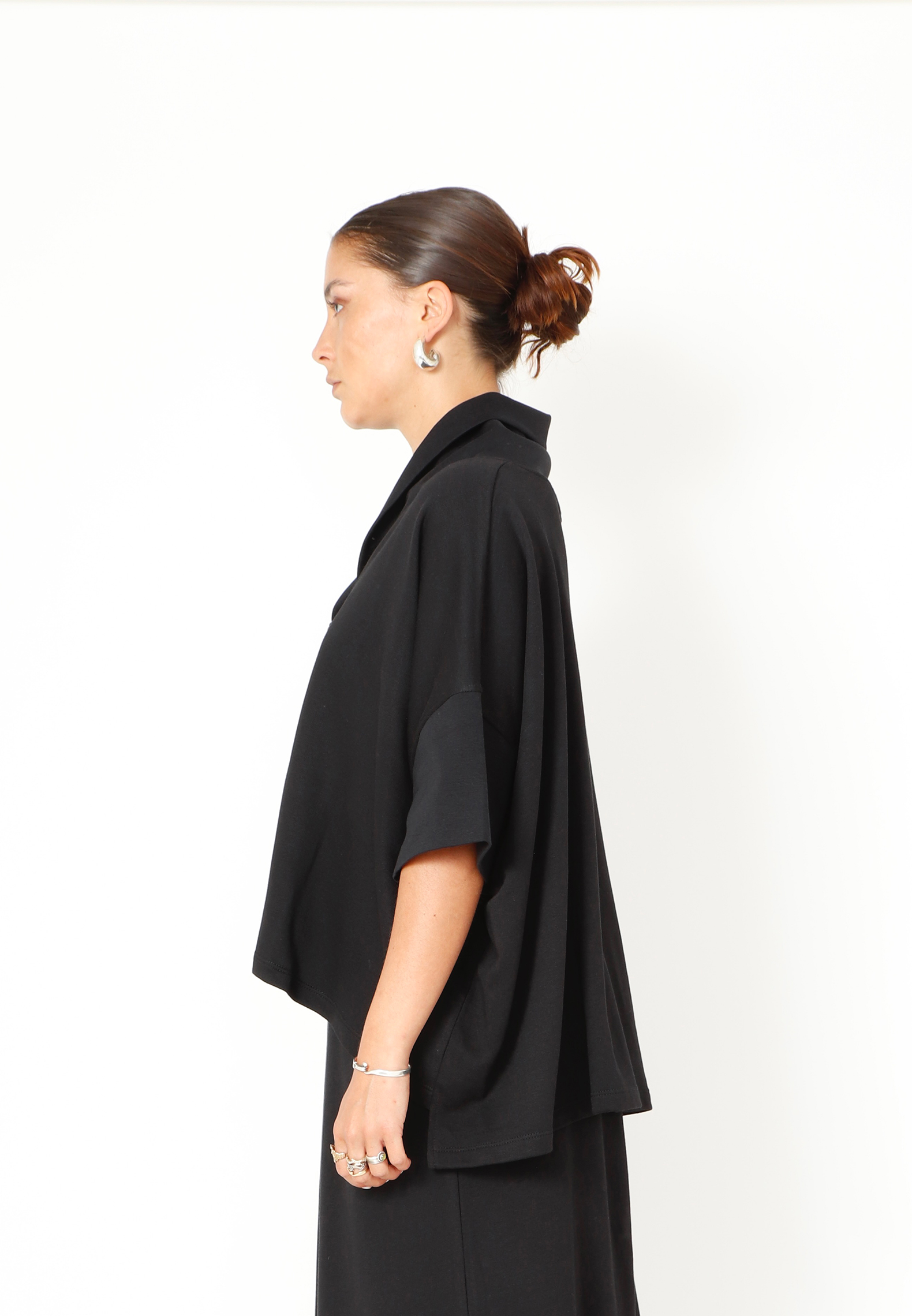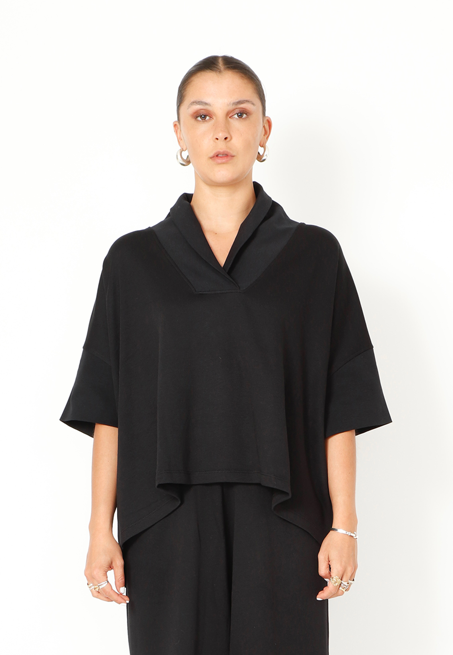 Bluse i et enkelt og stilrent design med løs silhuet og bred, blød krave. Lavet i en eksklusiv blød sweatkvalitet med et moderne og casual look. Alt Sort Aarhus tøj er produceret i Portugal af nøje udvalgte lokale materialer og kvaliteter med fokus på design og pasform.