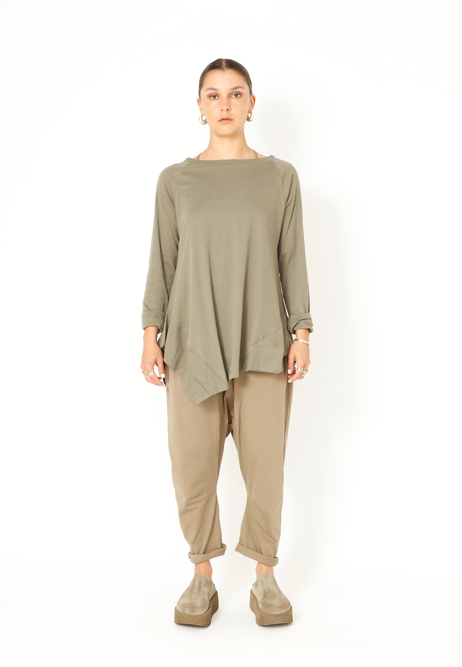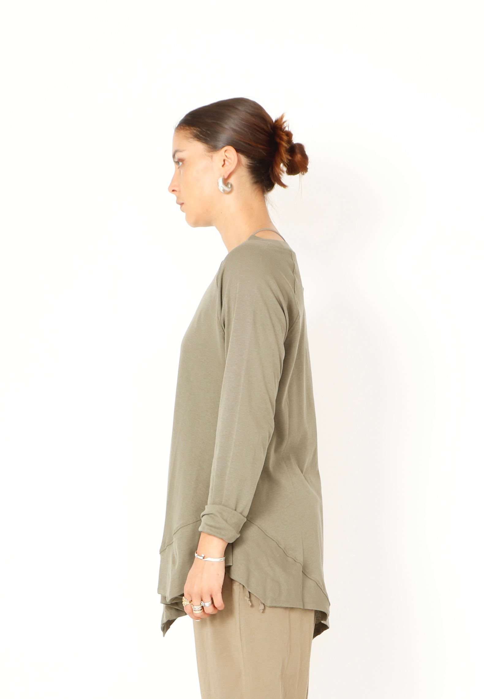 Asymmetrisk basis-bluse med bred kant forneden. Blusen er lavet i 100% bomuld og findes i flere farver.