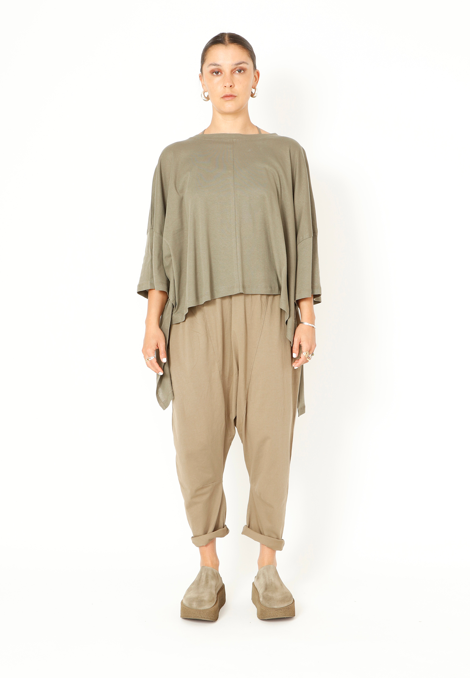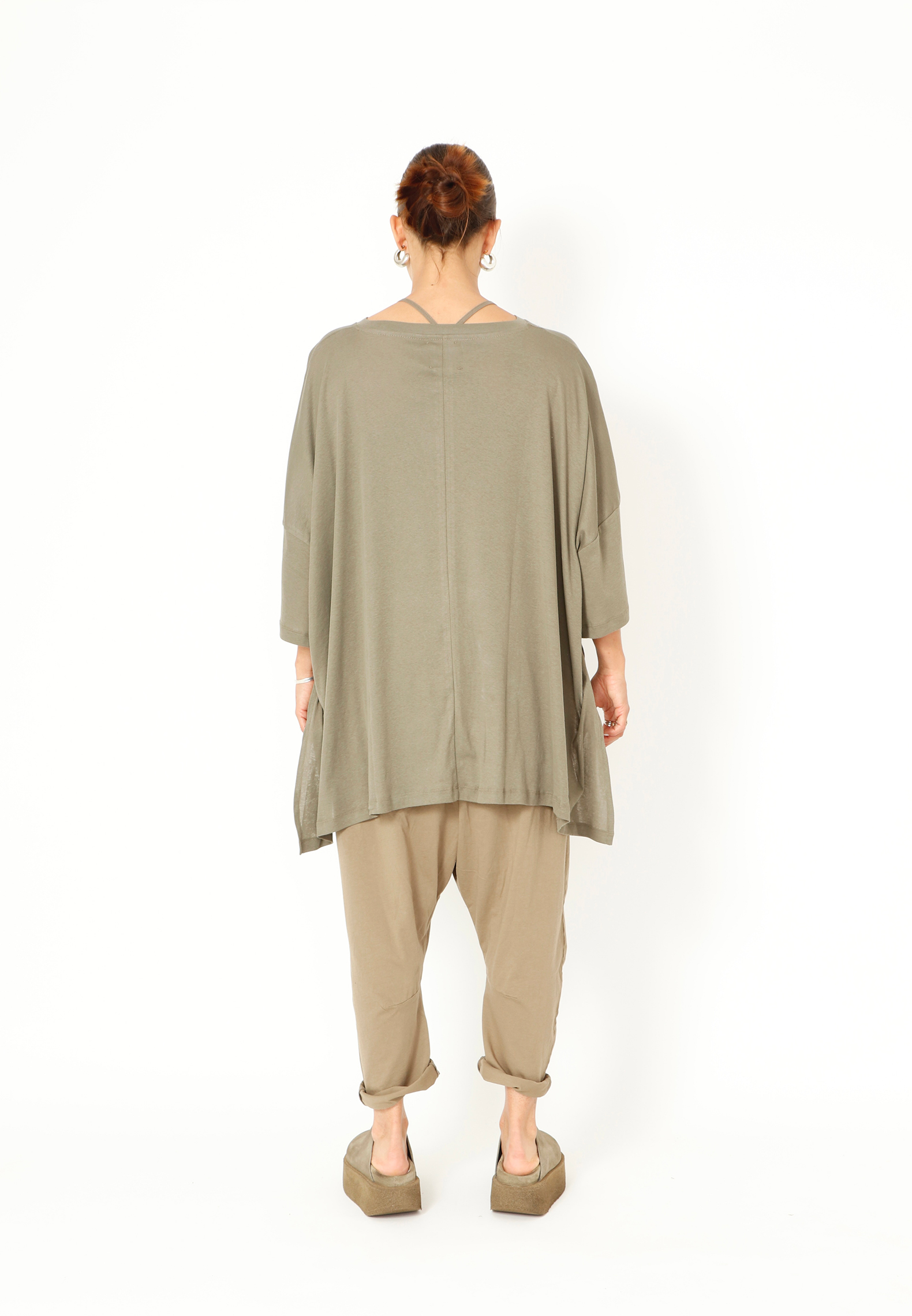 Oversized T-shirt in soft, lightweight cotton. Designed with a modern asymmetrical cut, where the back is longer than the front. A relaxed and stylish look. All Sort Aarhus clothing is produced in Portugal from carefully selected local materials and fabrics, with a focus on design and fit.