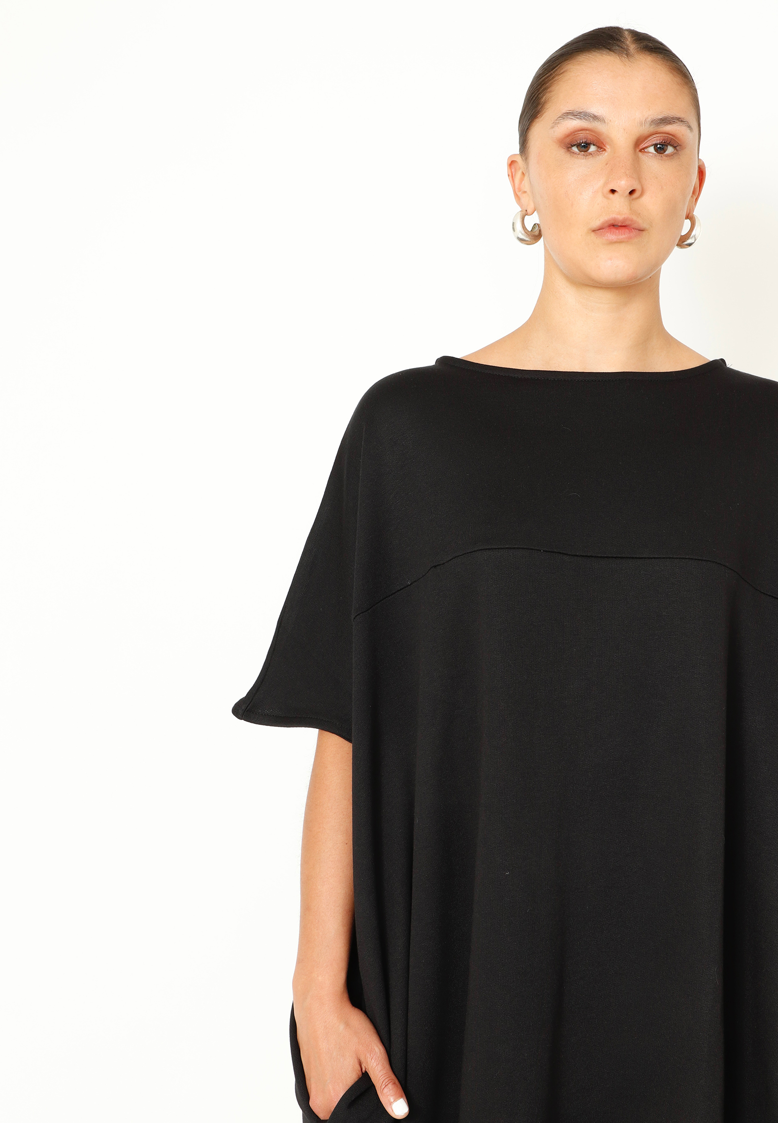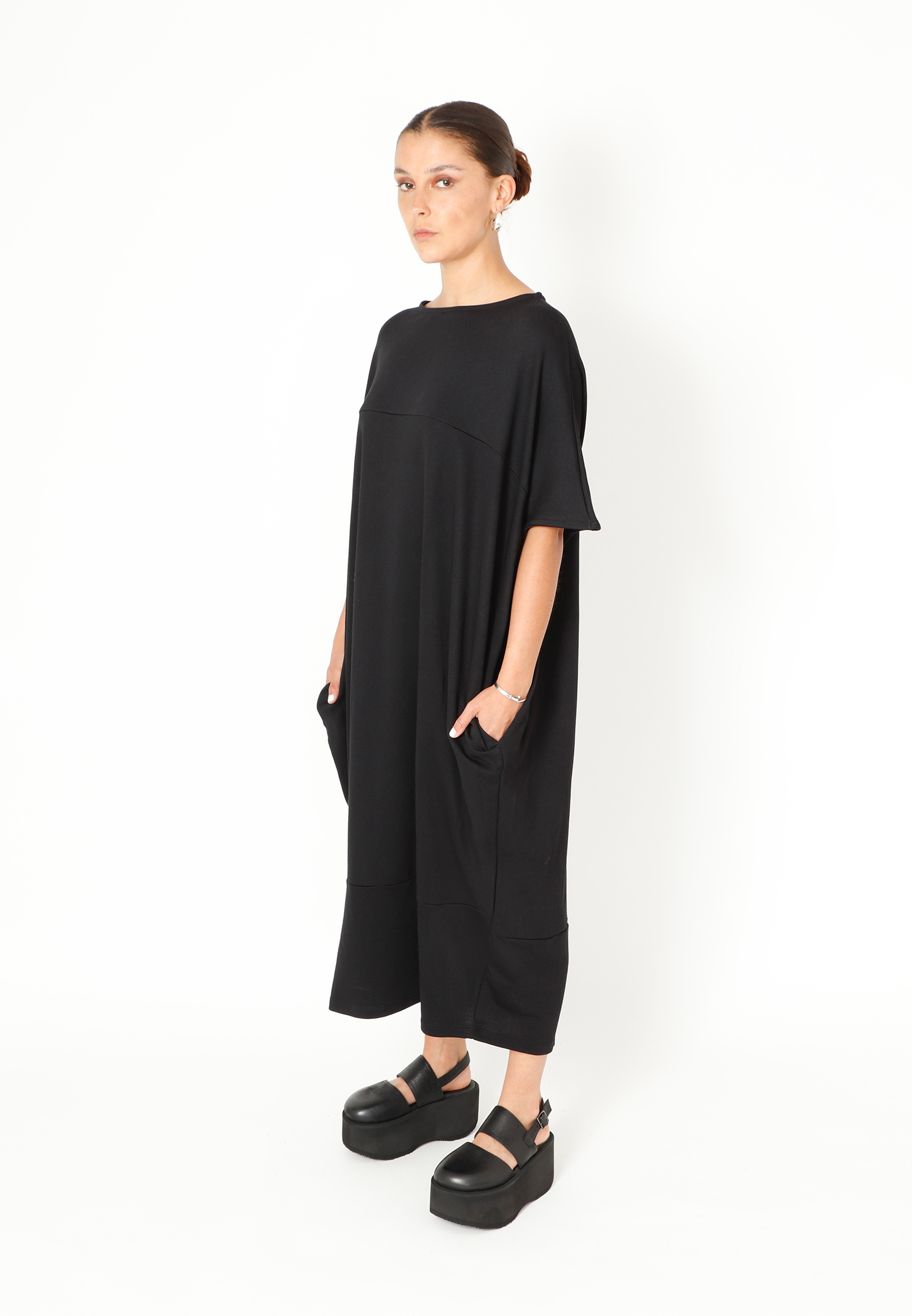 Oversize kjole med lommer. Lavet i en eksklusiv blød sweatkvalitet med et moderne og casual look. Alt Sort Aarhus tøj er produceret i Portugal af nøje udvalgte lokale materialer og kvaliteter med fokus på design og pasform.
