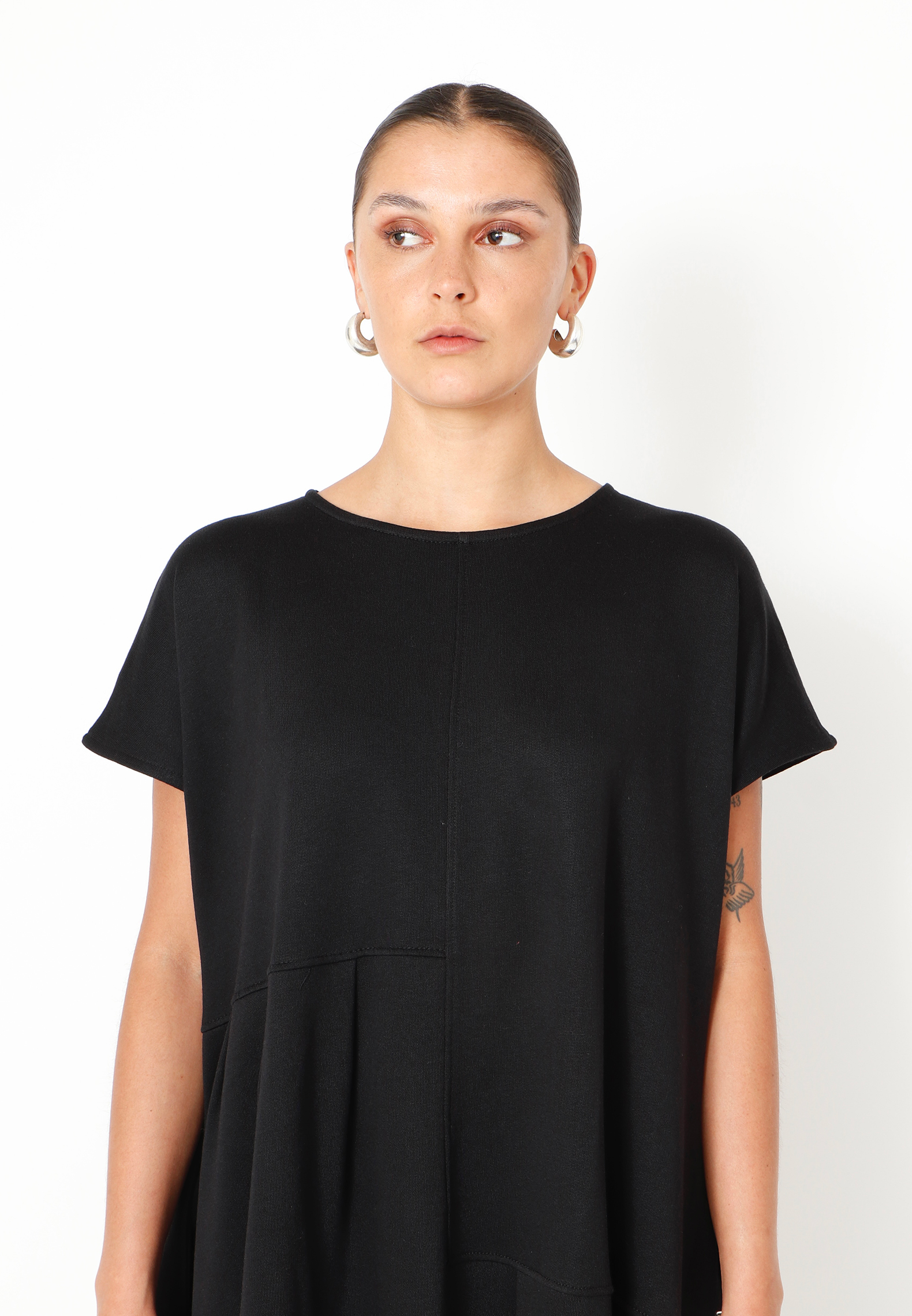 Oversize kjole med asymetiske læg. Lavet i en eksklusiv blød sweatkvalitet med et moderne og casual look. Alt Sort Aarhus tøj er produceret i Portugal af nøje udvalgte lokale materialer og kvaliteter med fokus på design og pasform.