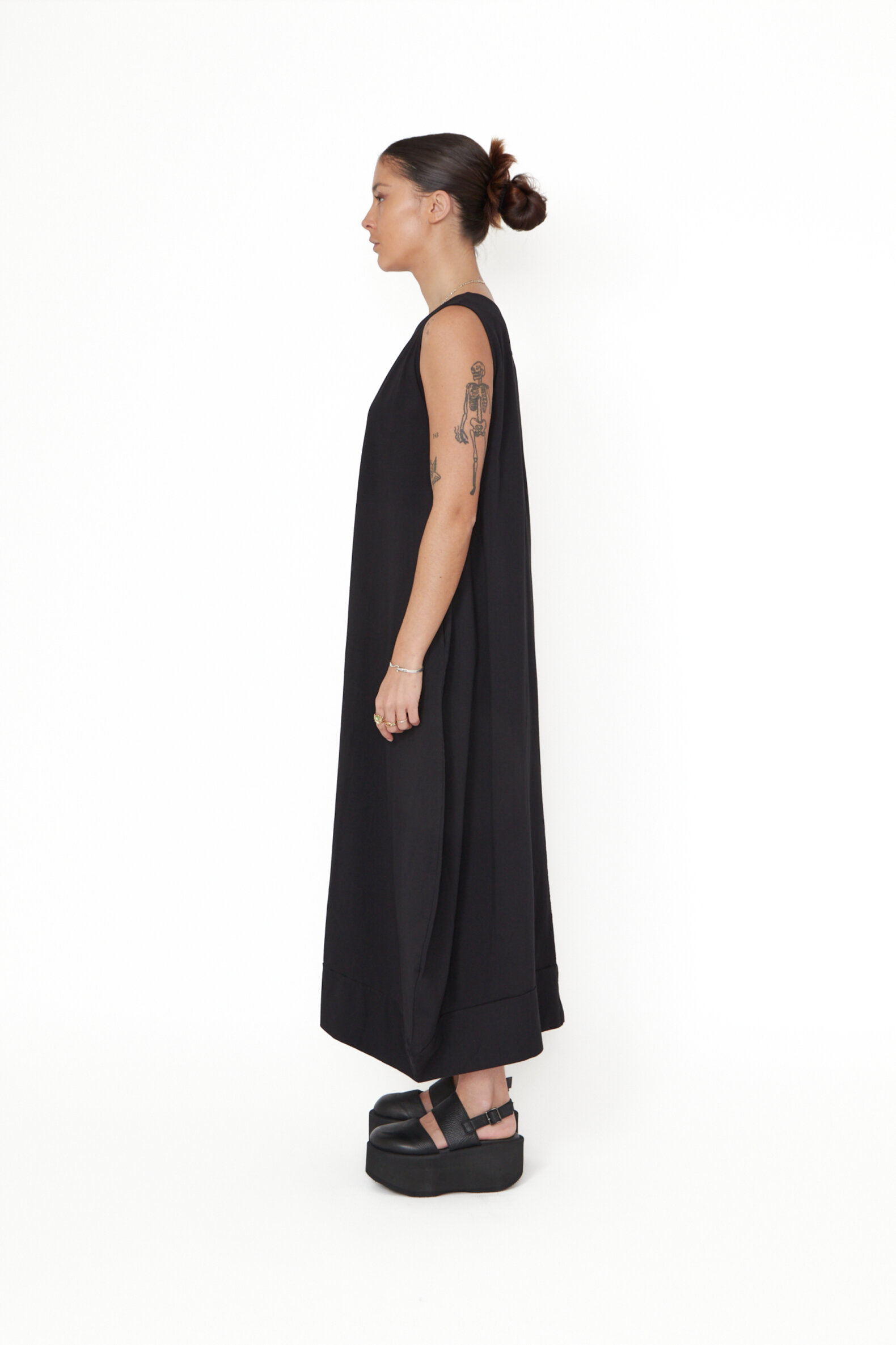 Løstsiddende kjole med lommer i økologisk bomuld. Alt Sort Aarhus tøj er produceret i Portugal af nøje udvalgte lokale materialer og kvaliteter med fokus på design og pasform.