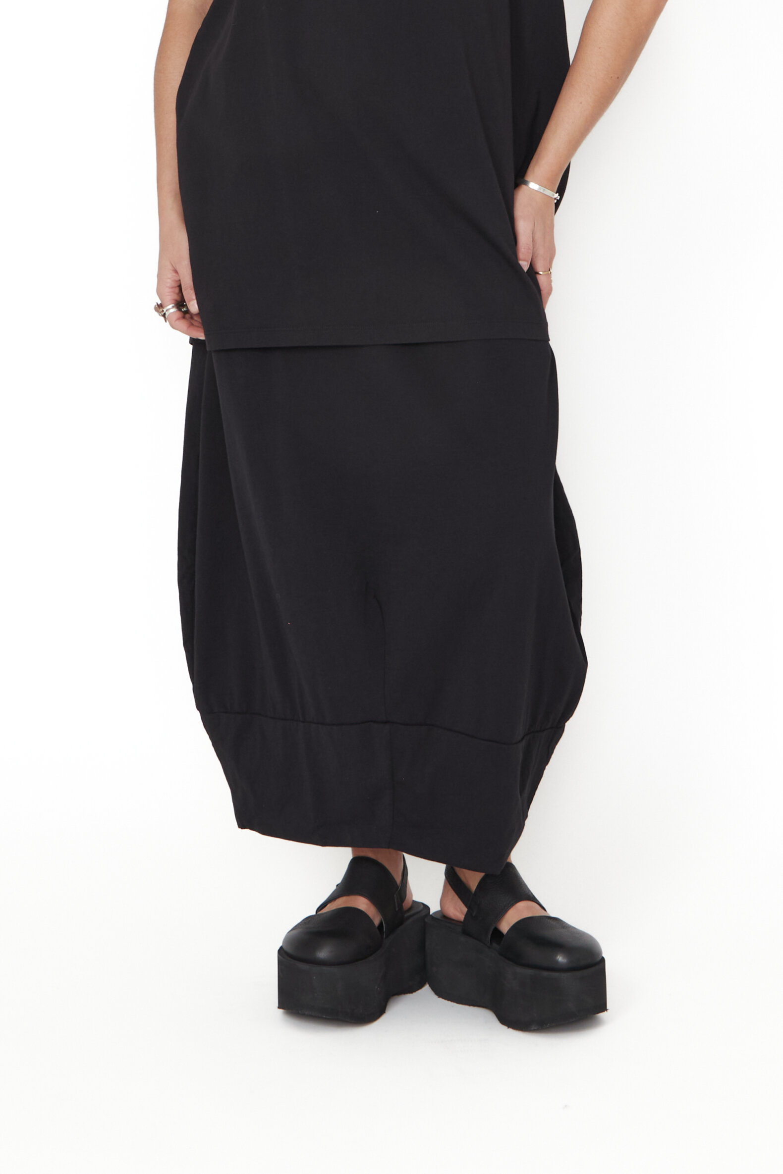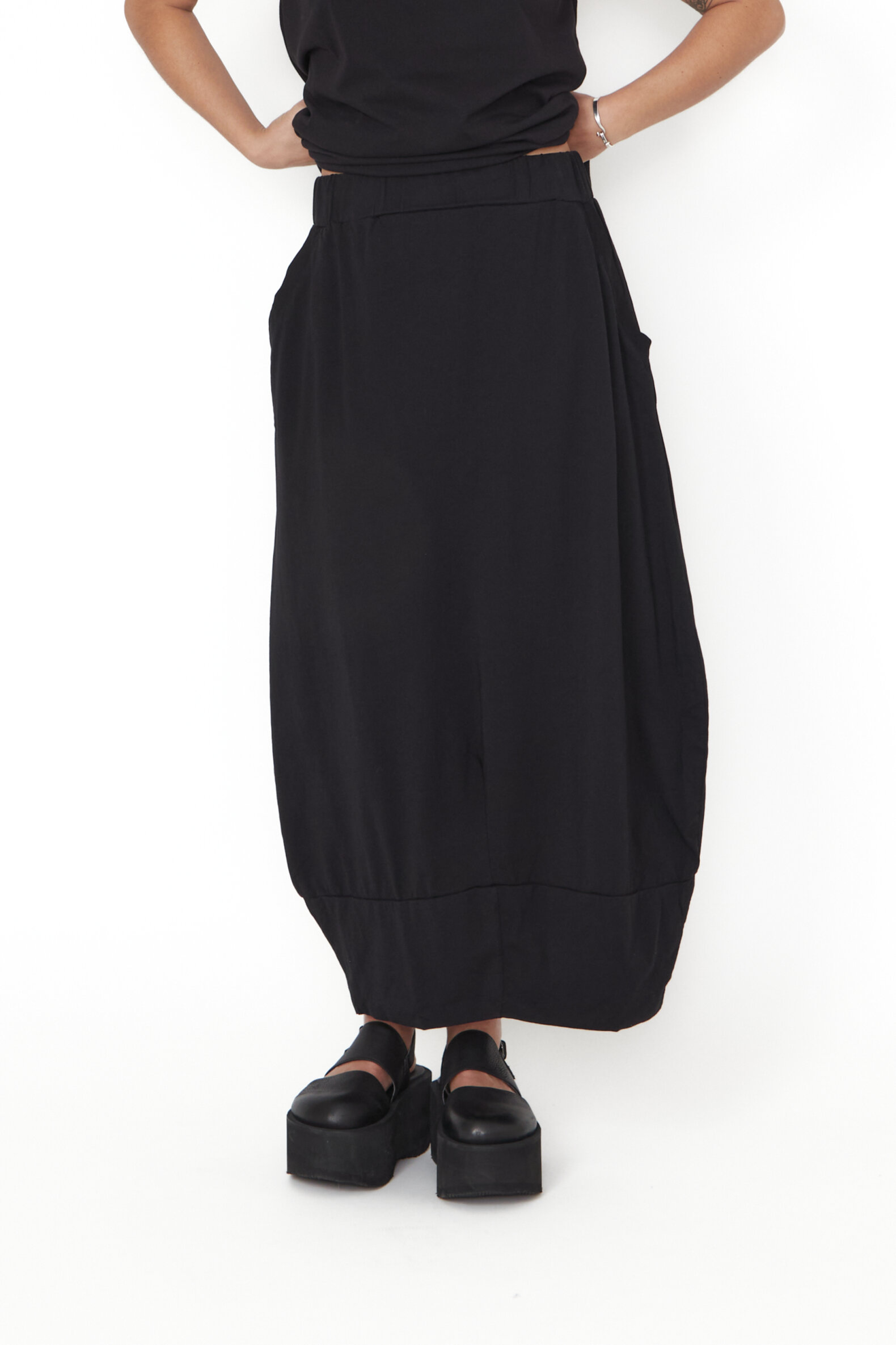 Nederdel i 100% økologisk bomuld. Nederdelen har lommer i siderne, elastikkant i taljen og en bred kant forneden. Nederdelen har ballon-effekt og findes i tre farver.