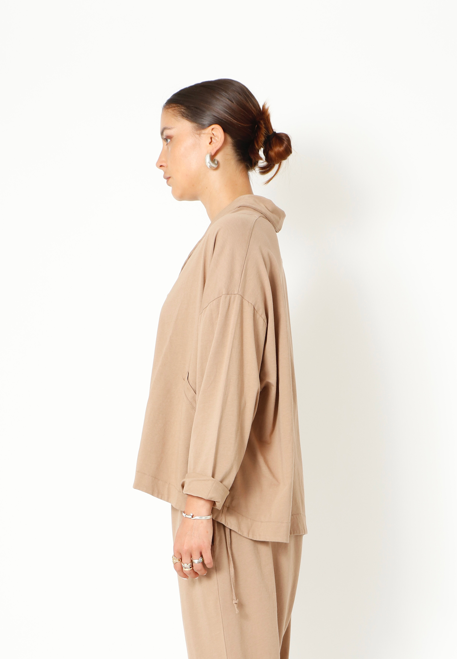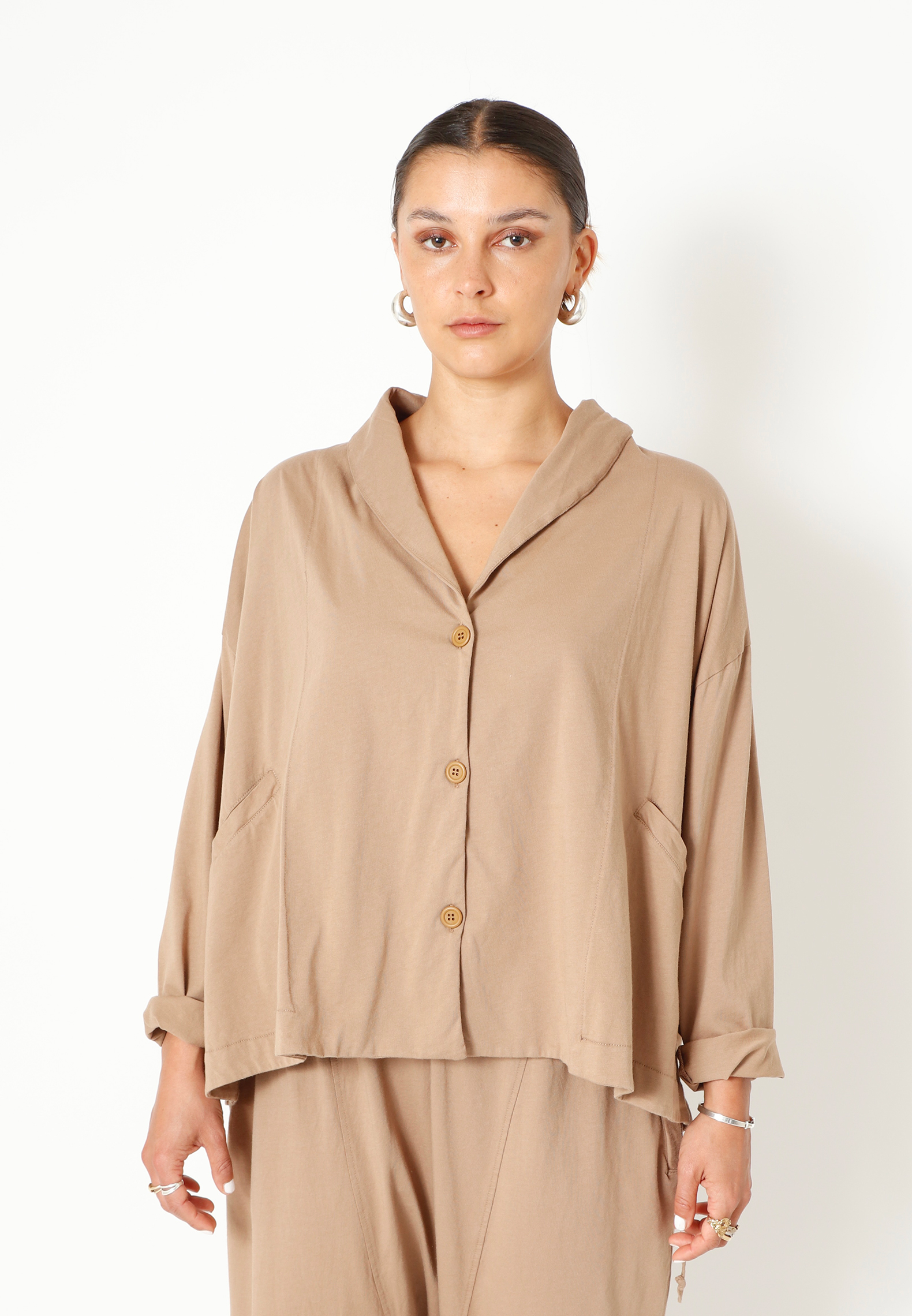Oversize cardigan med et bredt snit, knaplukning og en casual krave. Lavet i blød økologisk bomuld. En cardigan der kombinerer et cool æstetisk udtryk med ultimativ komfort.
