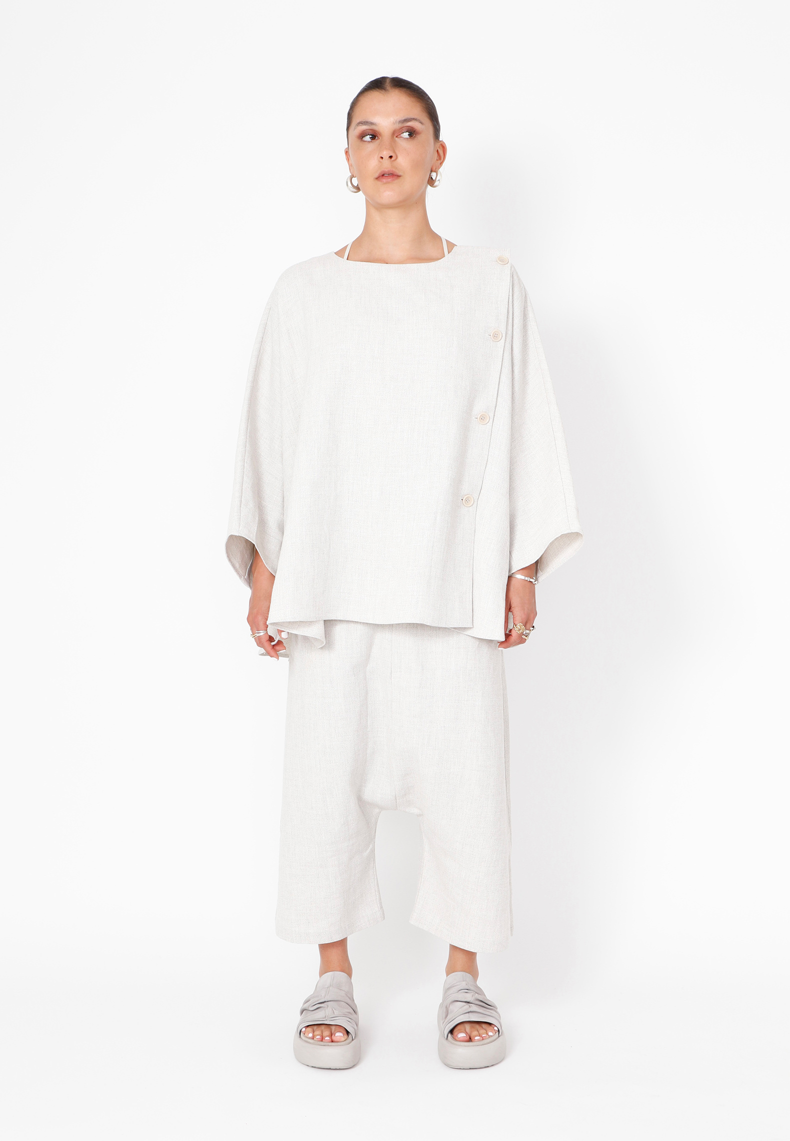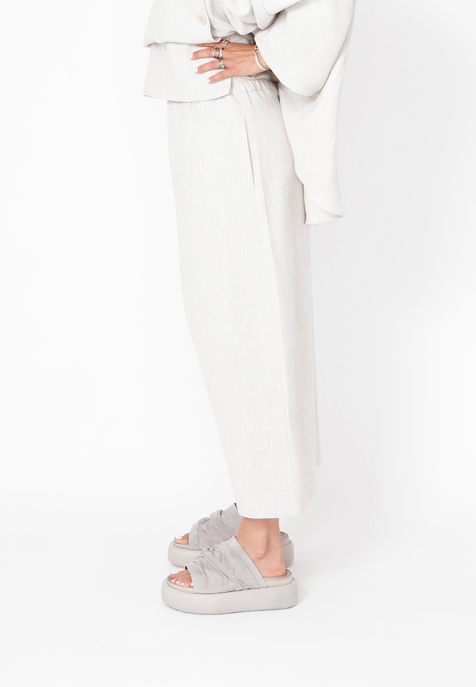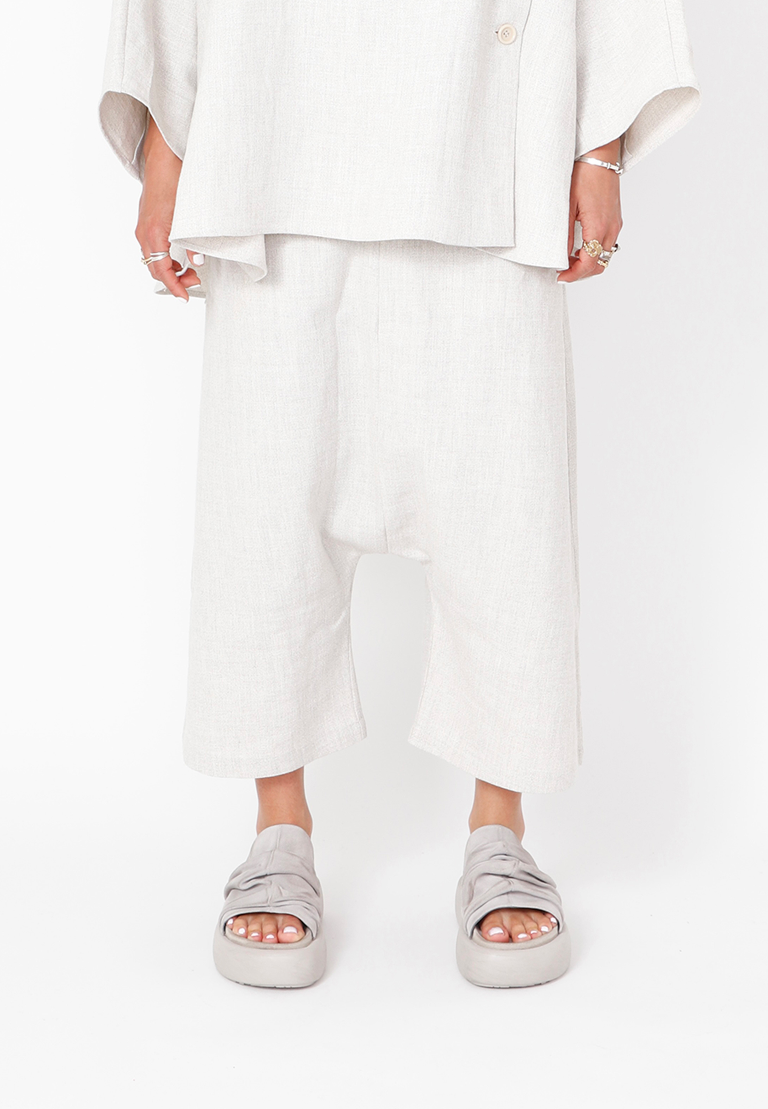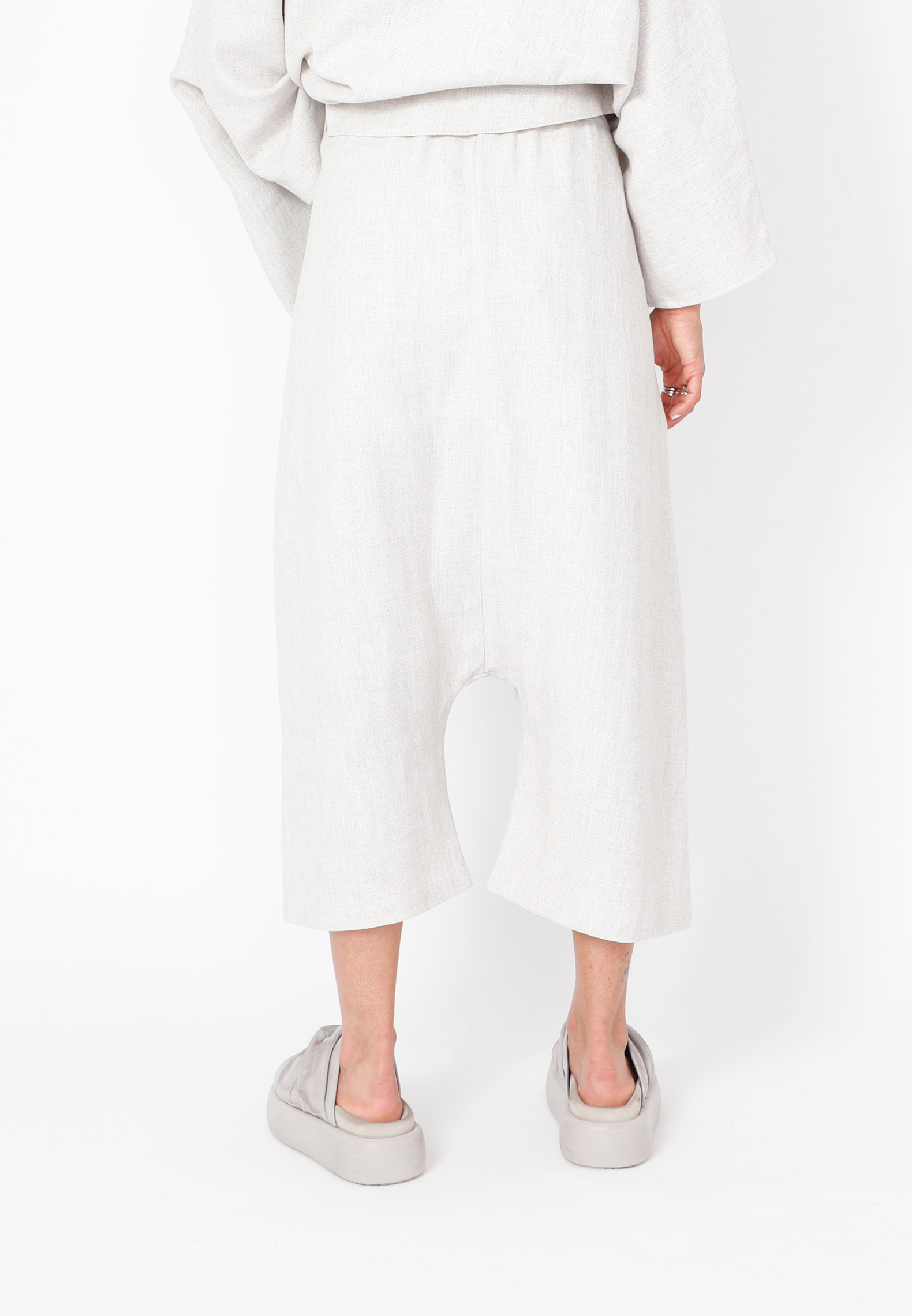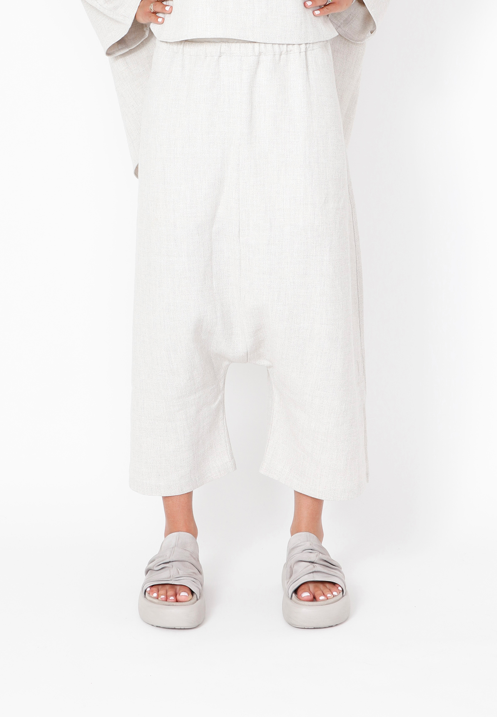 Baggy pants with pockets and elastic waistband. The pants has 3/4 length and is made in a soft light material. Comes in more colors and qualities. All Sort Aarhus clothing is made in Portugal of handpicked local materials and qualities with focus on design and a comfortable fit.