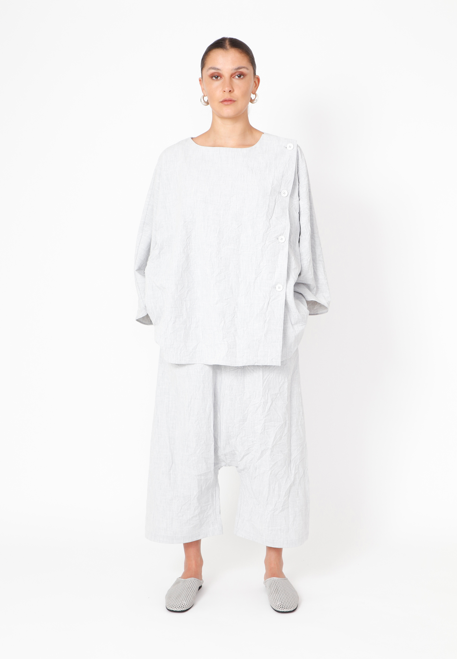 Baggy bukser med lommer og elastik i taljen. Bukserne har 3/4 længde og er lavet i et behageligt let materiale. Findes i flere farver og kvaliteter. Alt Sort Aarhus tøj er produceret i Portugal af nøje udvalgte lokale materialer og kvaliteter med fokus på design og pasform.