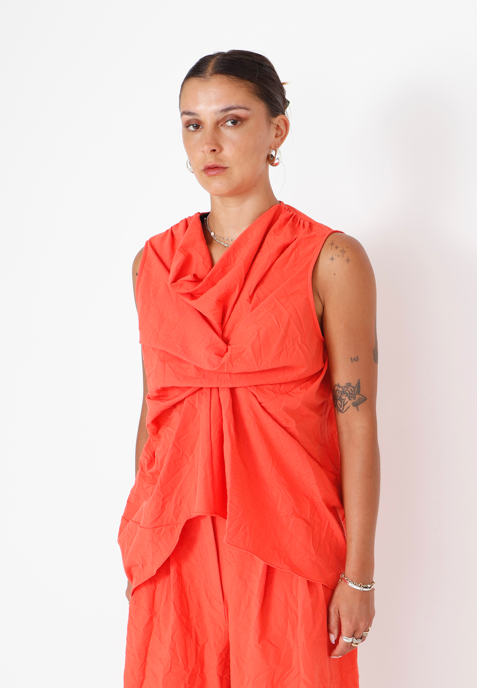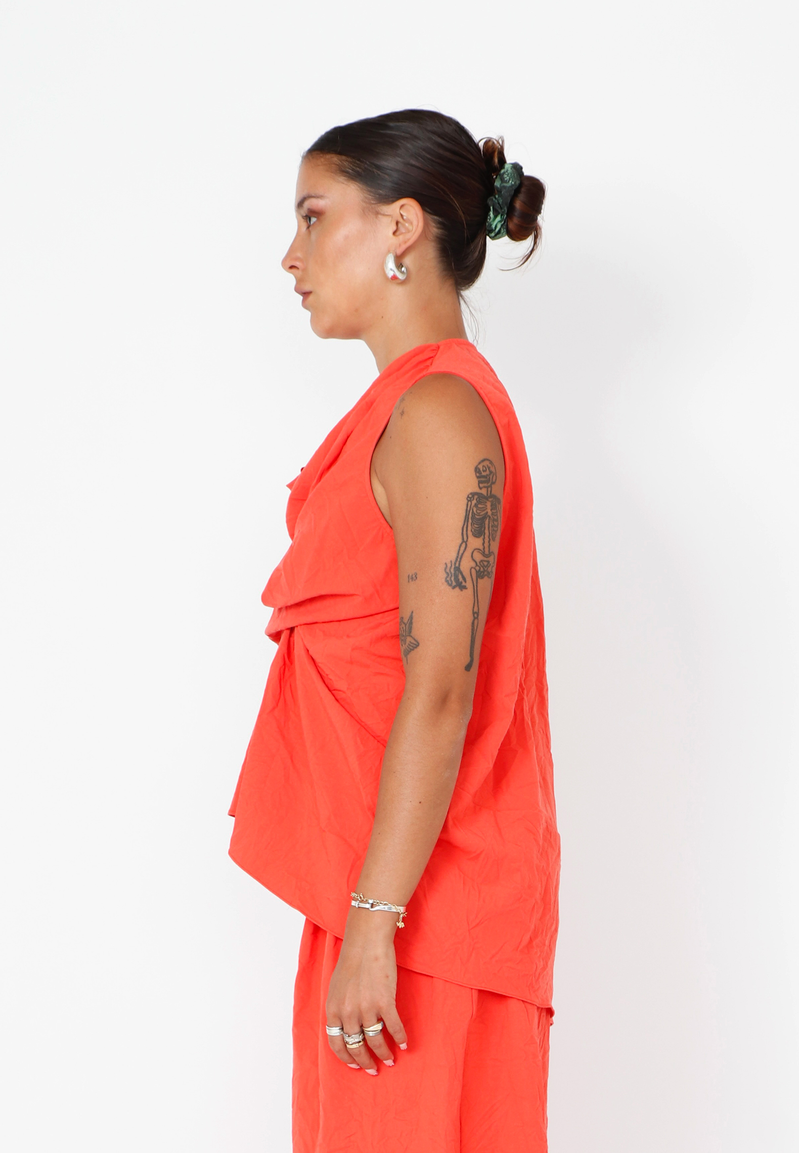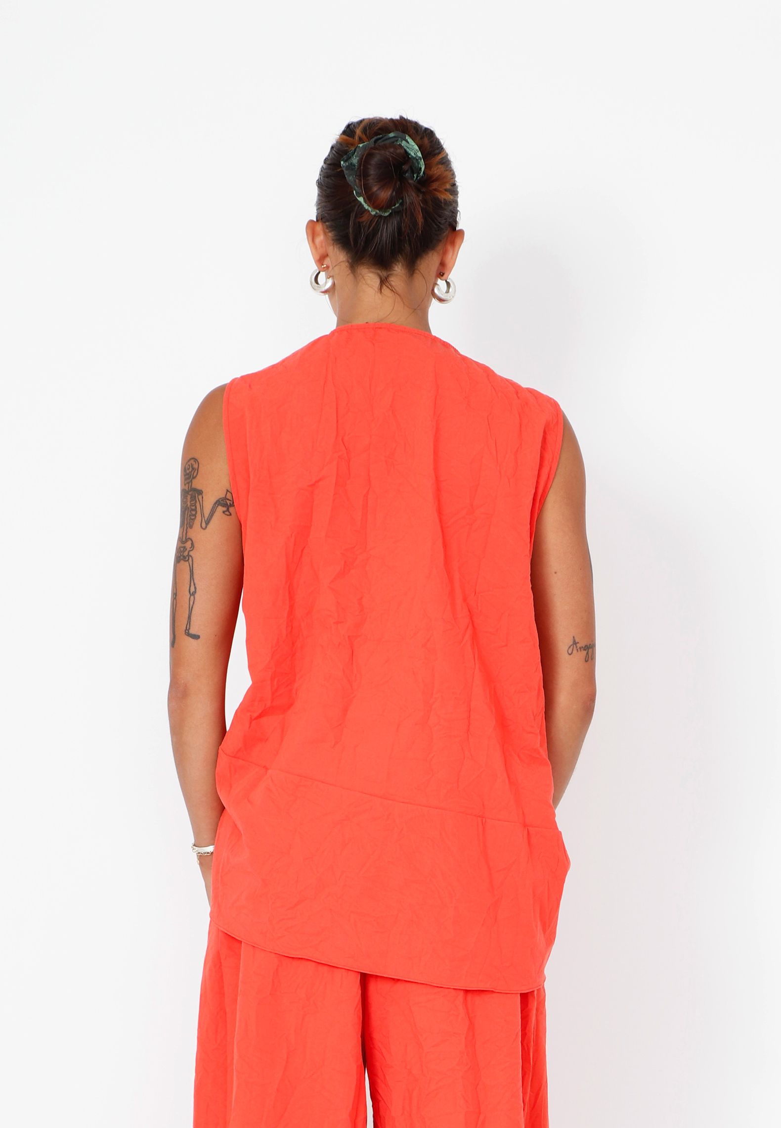 Wrinkled top with more layers by the chest. The top has a short front and a longer back. Comes in more colors and qualities. All Sort Aarhus clothing is made in Portugal of handpicked local materials and qualities with focus on design and a comfortable fit.