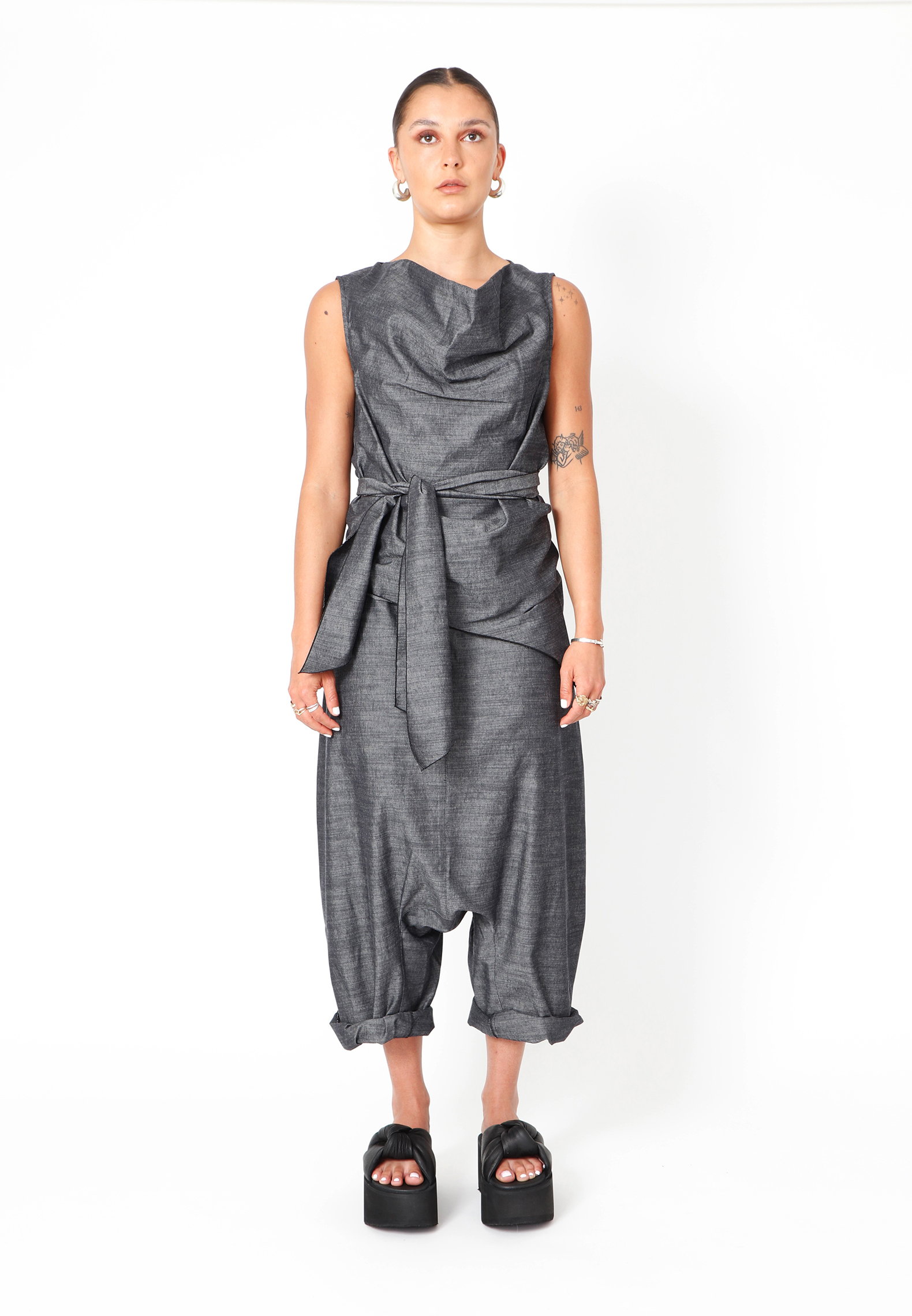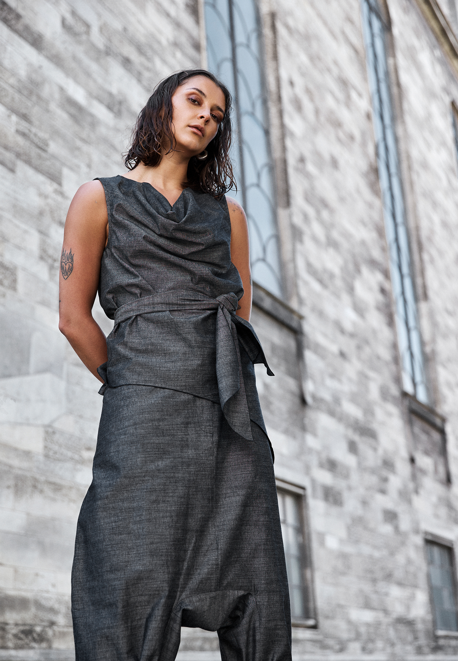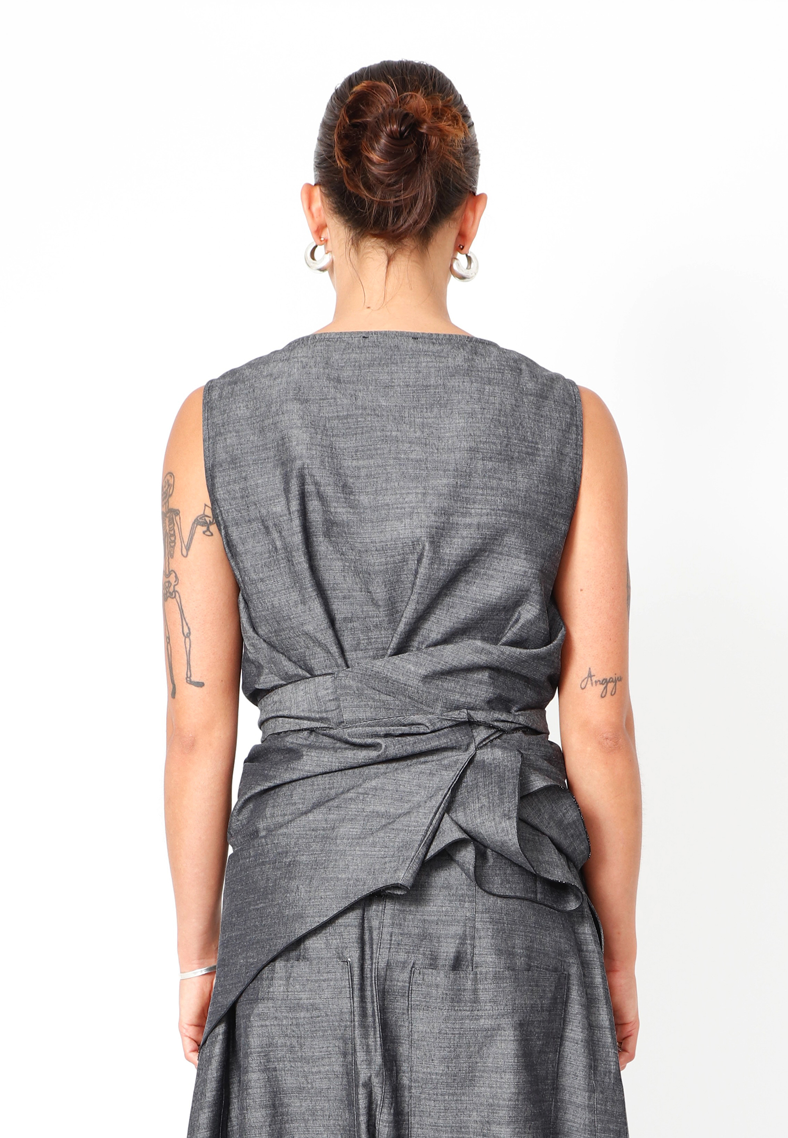 Top with waist tie, made in cotton and viscose. The top has an asymmetrical cut. All Sort Aarhus clothing is made in Portugal of handpicked local materials and qualities with focus on design and a comfortable fit.