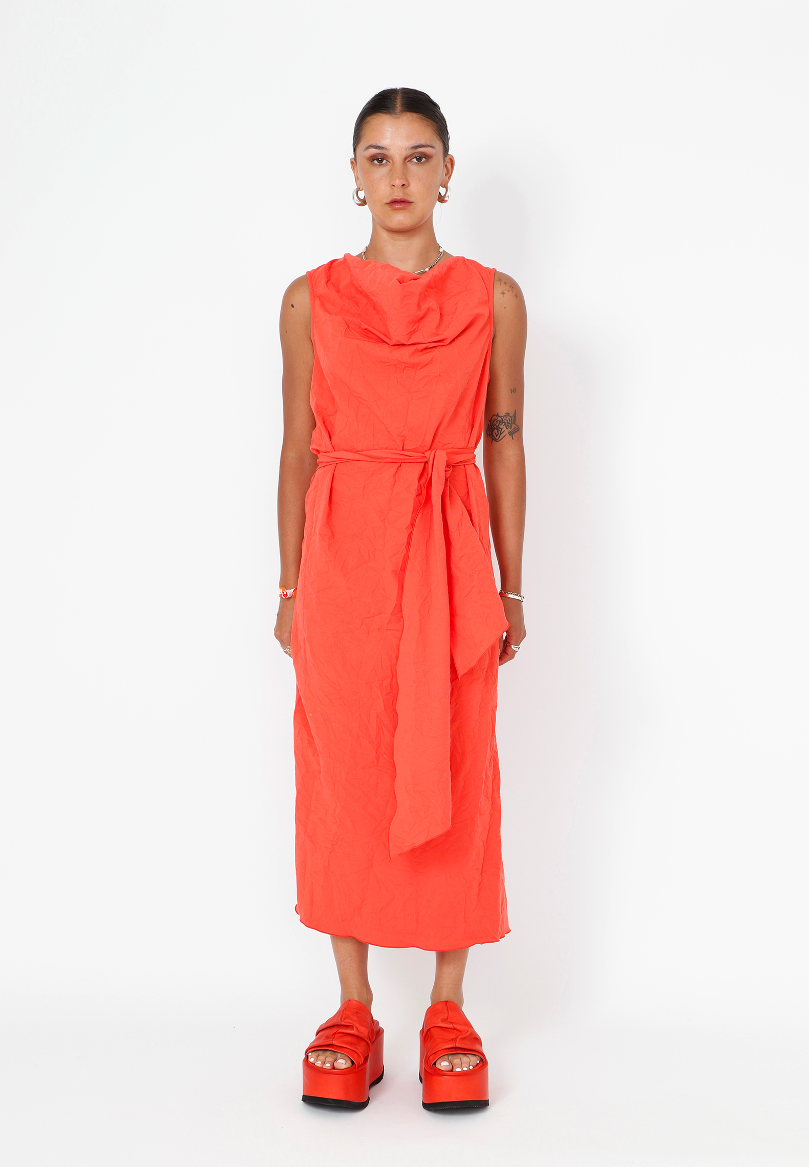 Lang kjole med bindebånd og feminint fald foran ved brystet. Lavet i et behageligt og lækkert mix af polyester og viscose, som sikrer god komfort hele dagen. Brug kjolen til hverdag eller dress den op til særlige begivenheder med et par sko fra Lofina eller Sort Aarhus.